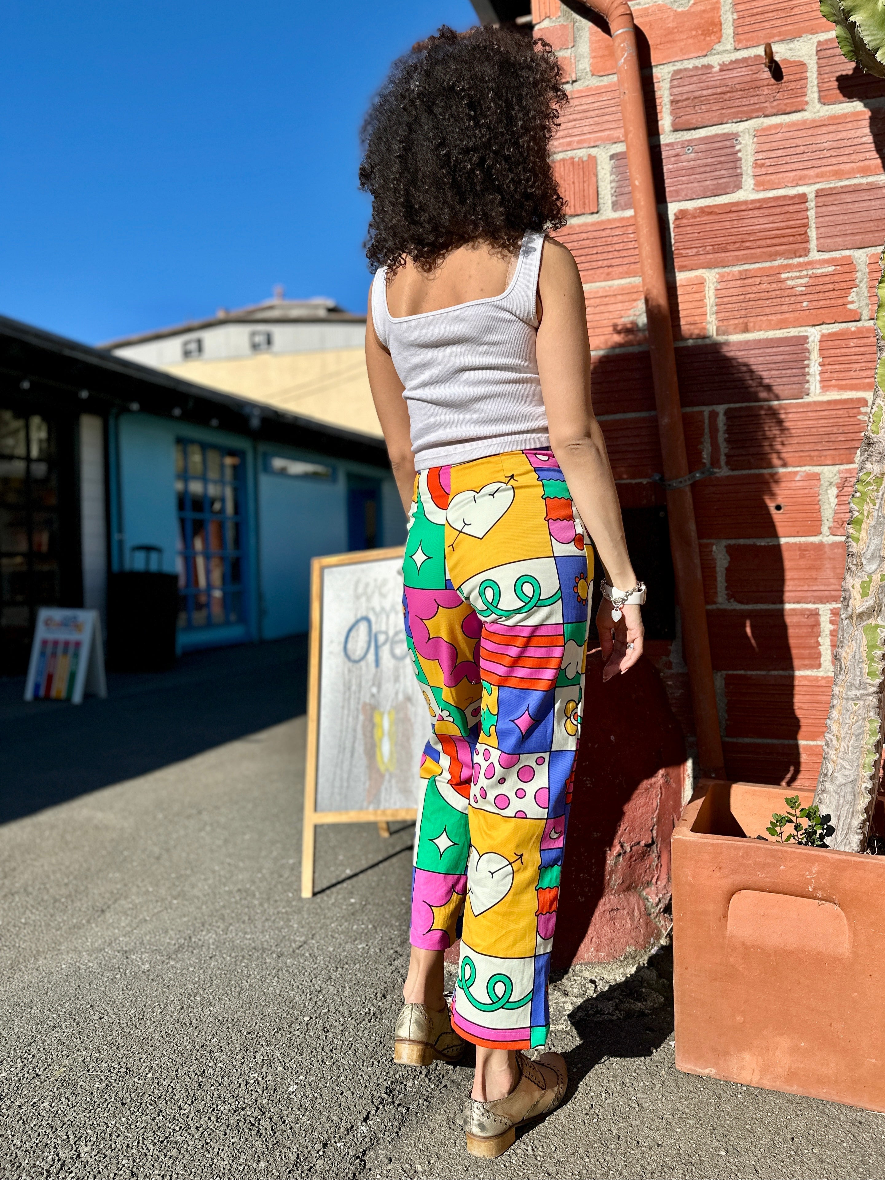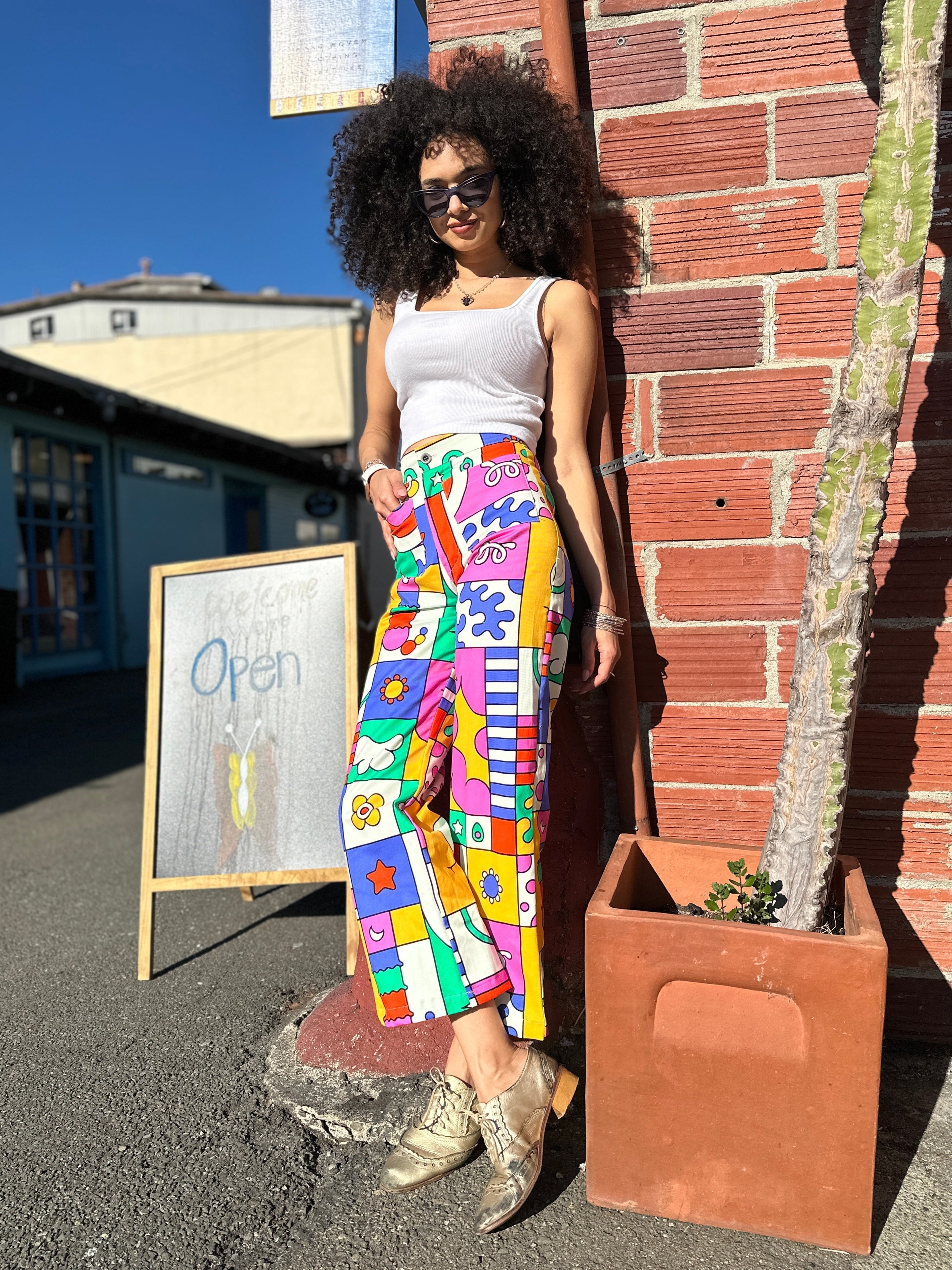 We are a woman owned, women run business. We make limited edition textiles with artists we love in cuts to make you look and feel good. All our garments are produced in California. We try to source all our materials in the USA and work with incredibly nice people.