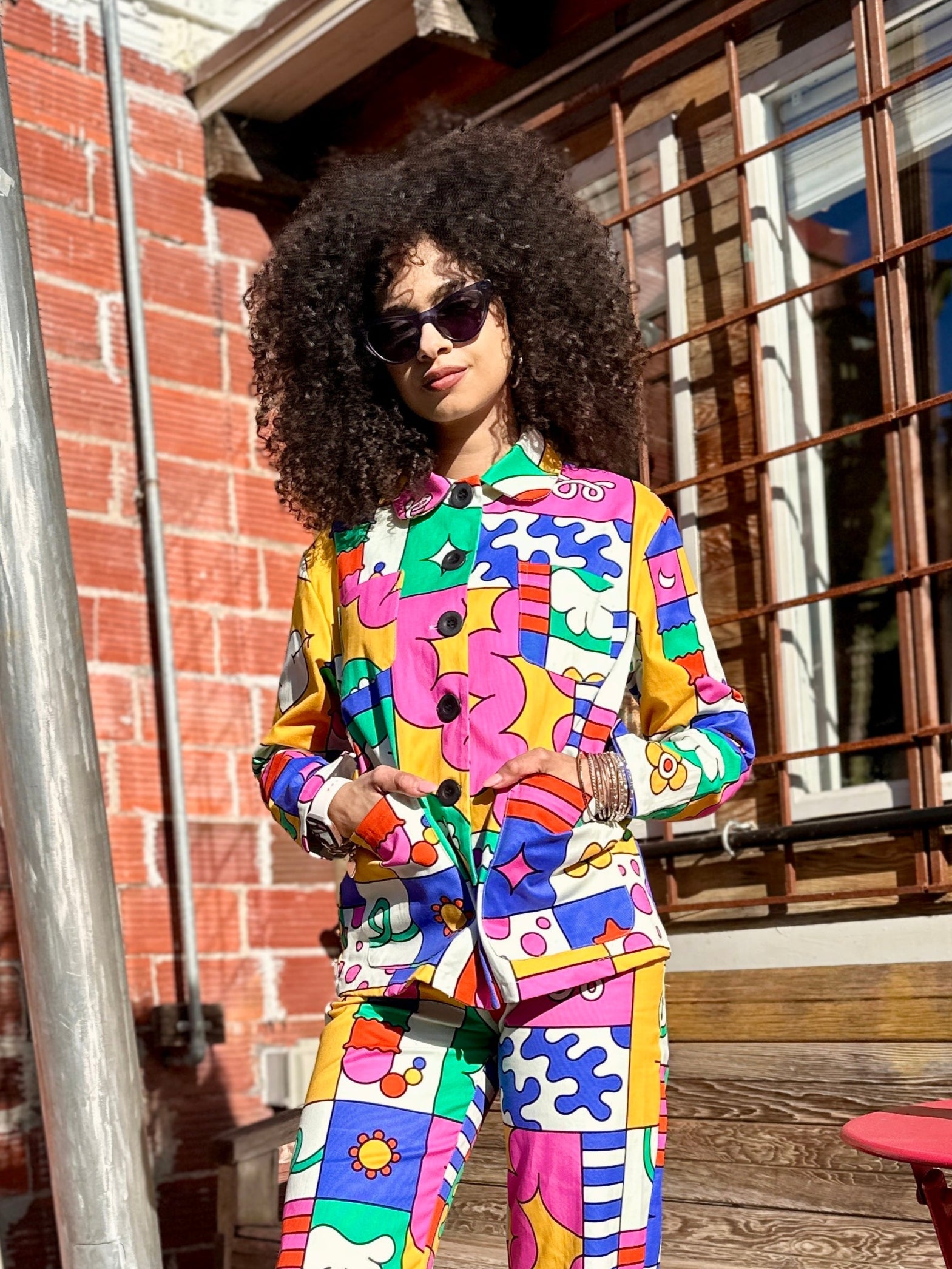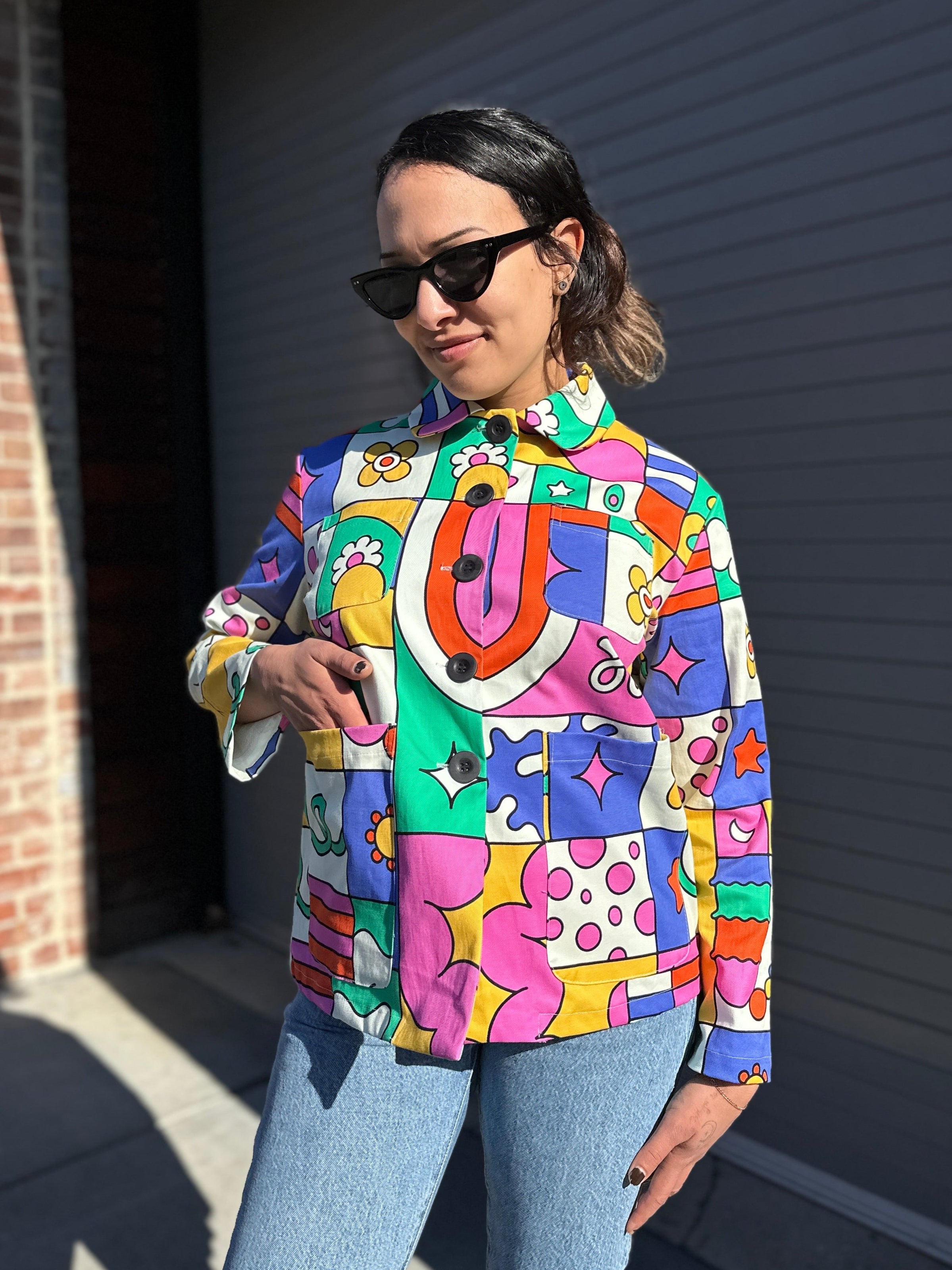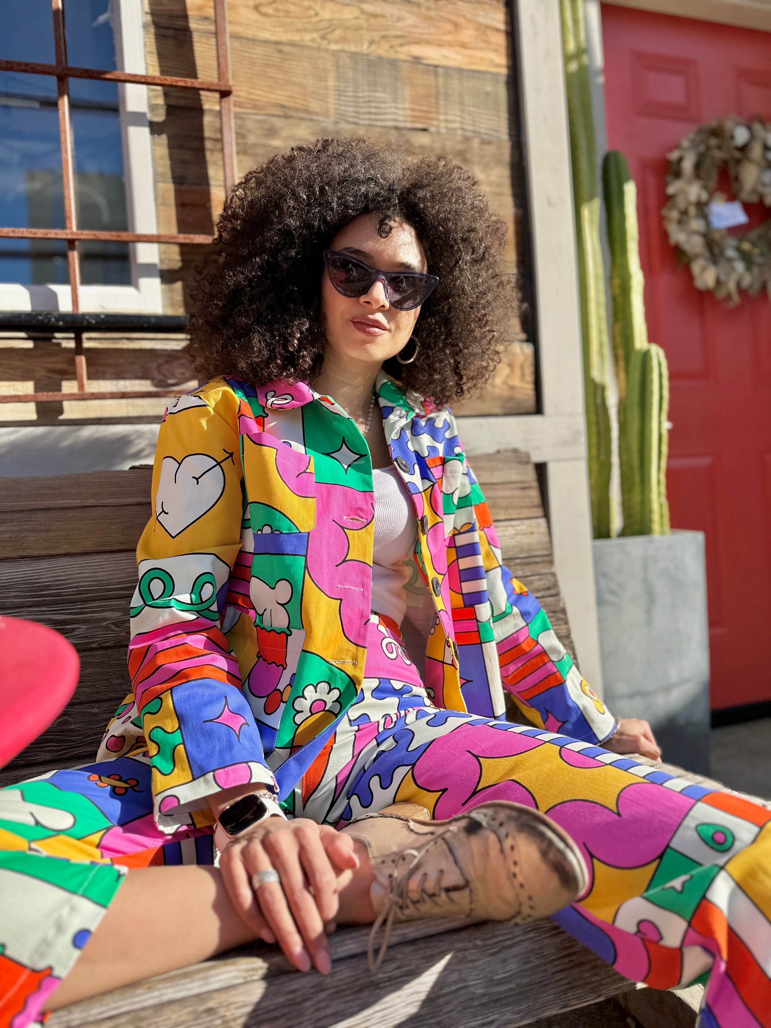 We are a woman owned, women run business. We make limited edition textiles with artists we love in cuts to make you look and feel good. All our garments are produced in California. We try to source all our materials in the USA and work with incredibly nice people.
