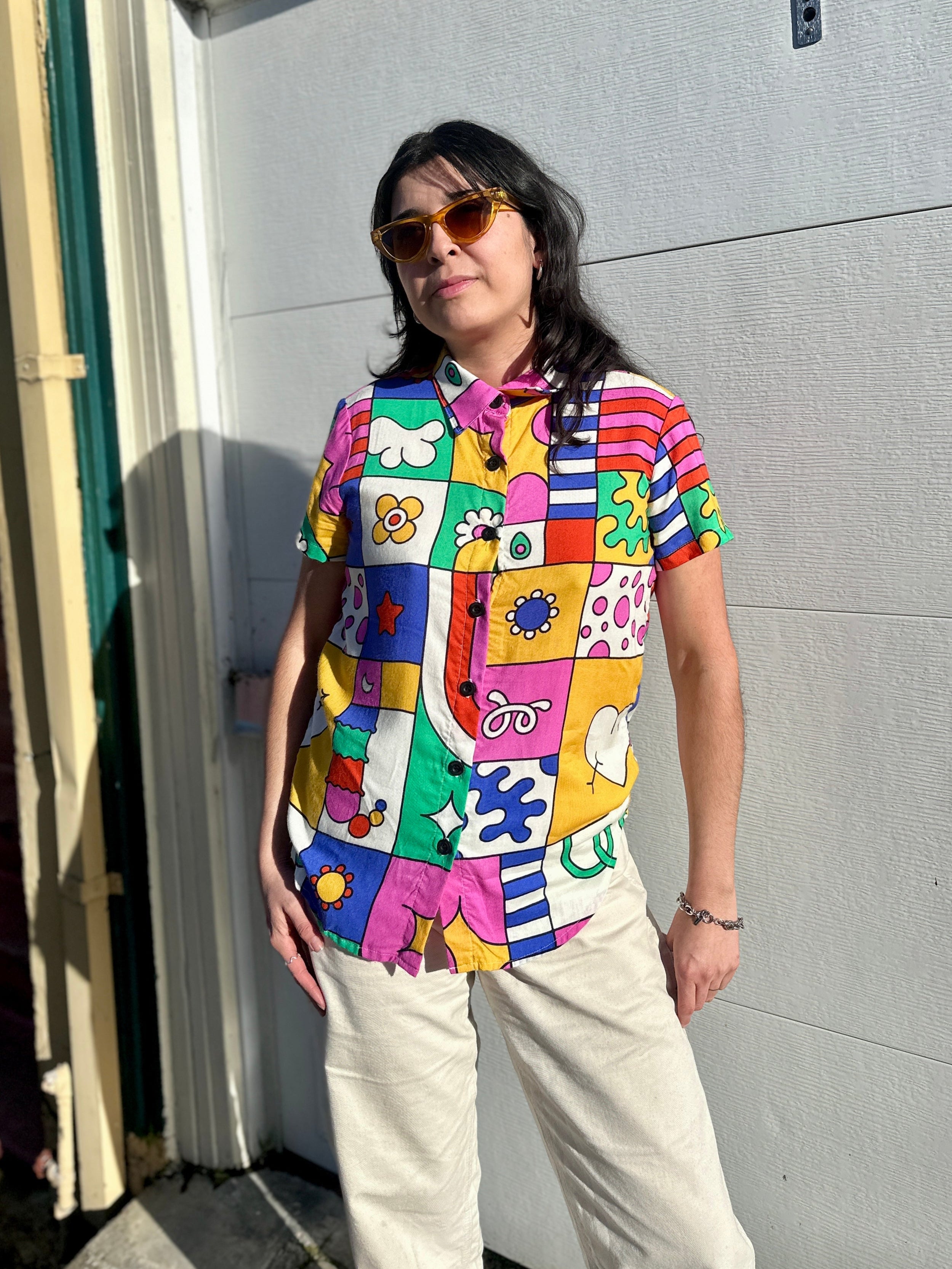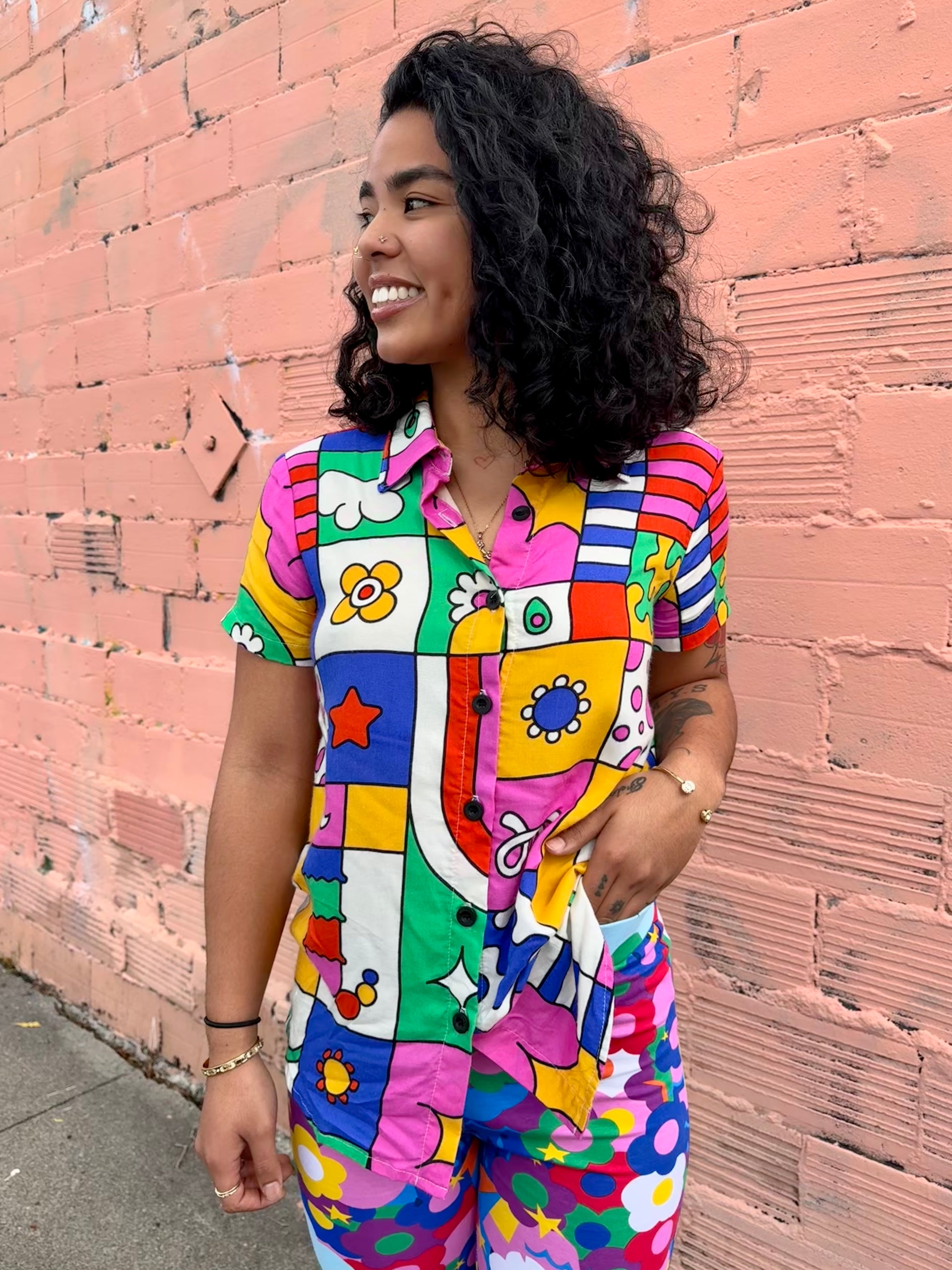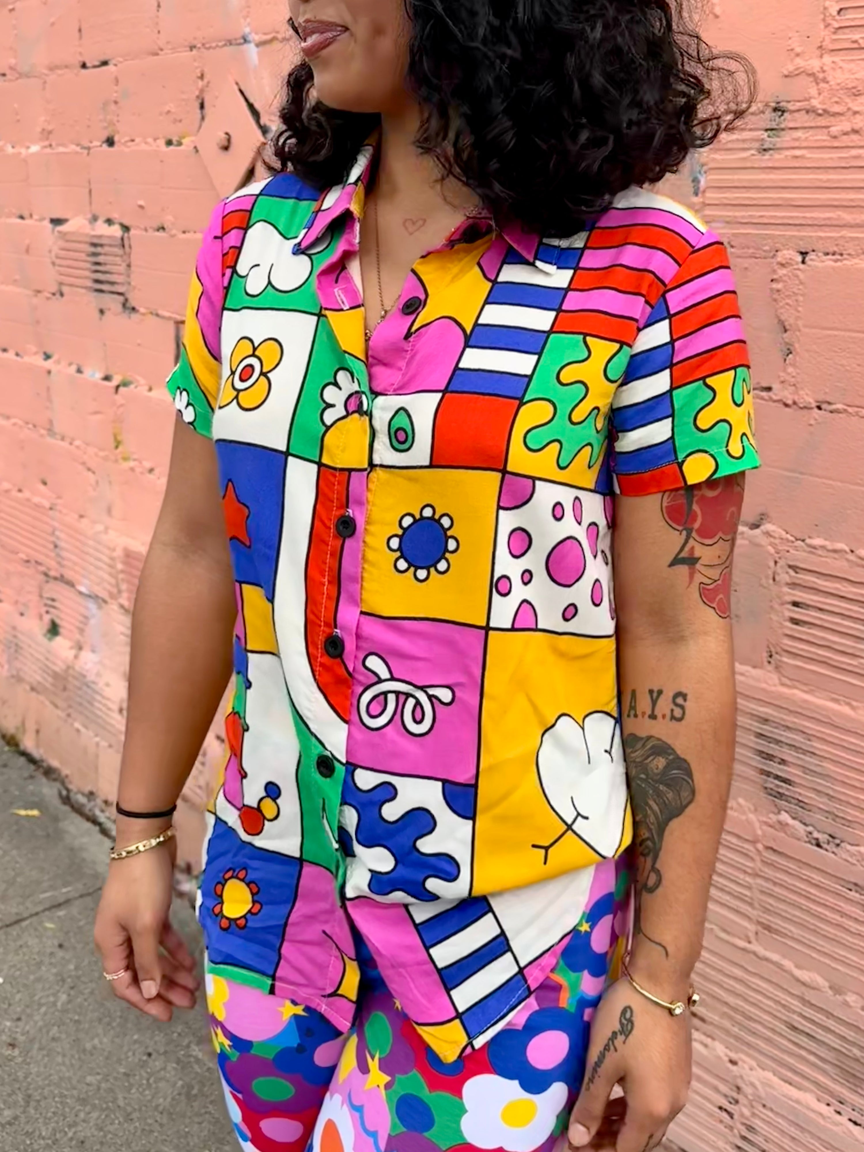 We put the joy in Joyce! This button down shirt will be your go-to closet staple whether you're headed to work or a weekend brunch....