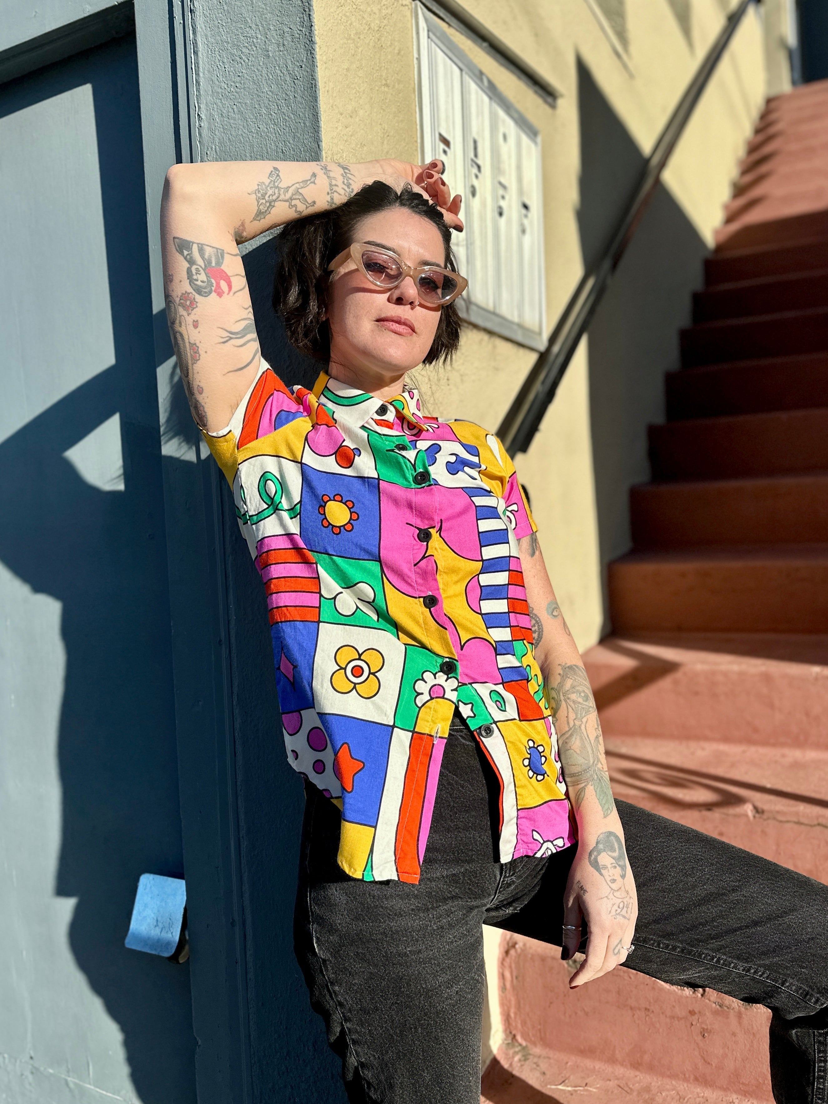 We are a woman owned, women run business. We make limited edition textiles with artists we love in cuts to make you look and feel good. All our garments are produced in California. We try to source all our materials in the USA and work with incredibly nice people.
