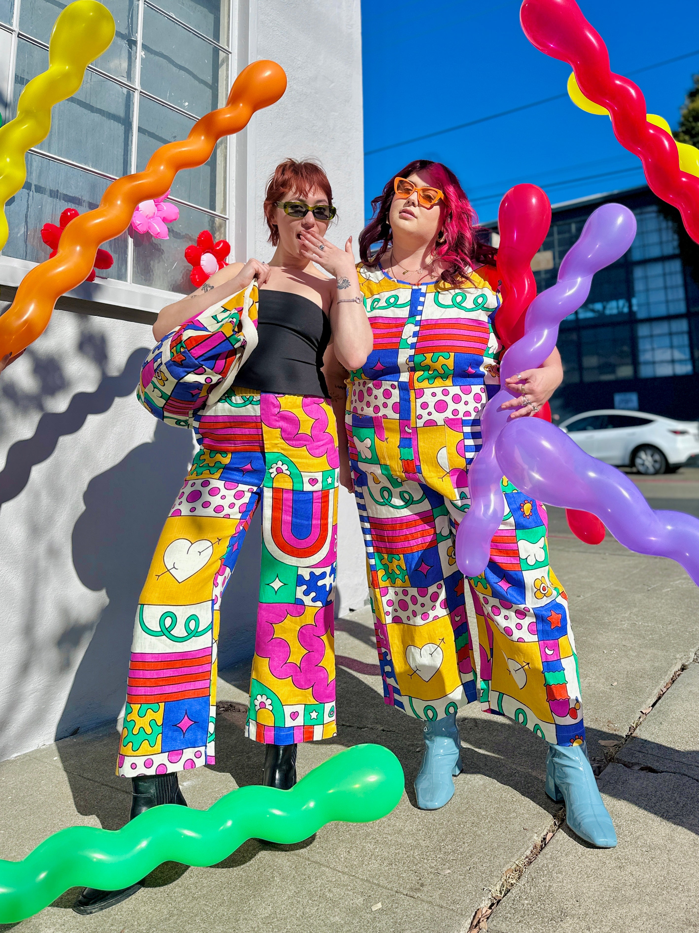 We are a woman owned, women run business. We make limited edition textiles with artists we love in cuts to make you look and feel good. All our garments are produced in California. We try to source all our materials in the USA and work with incredibly nice people.