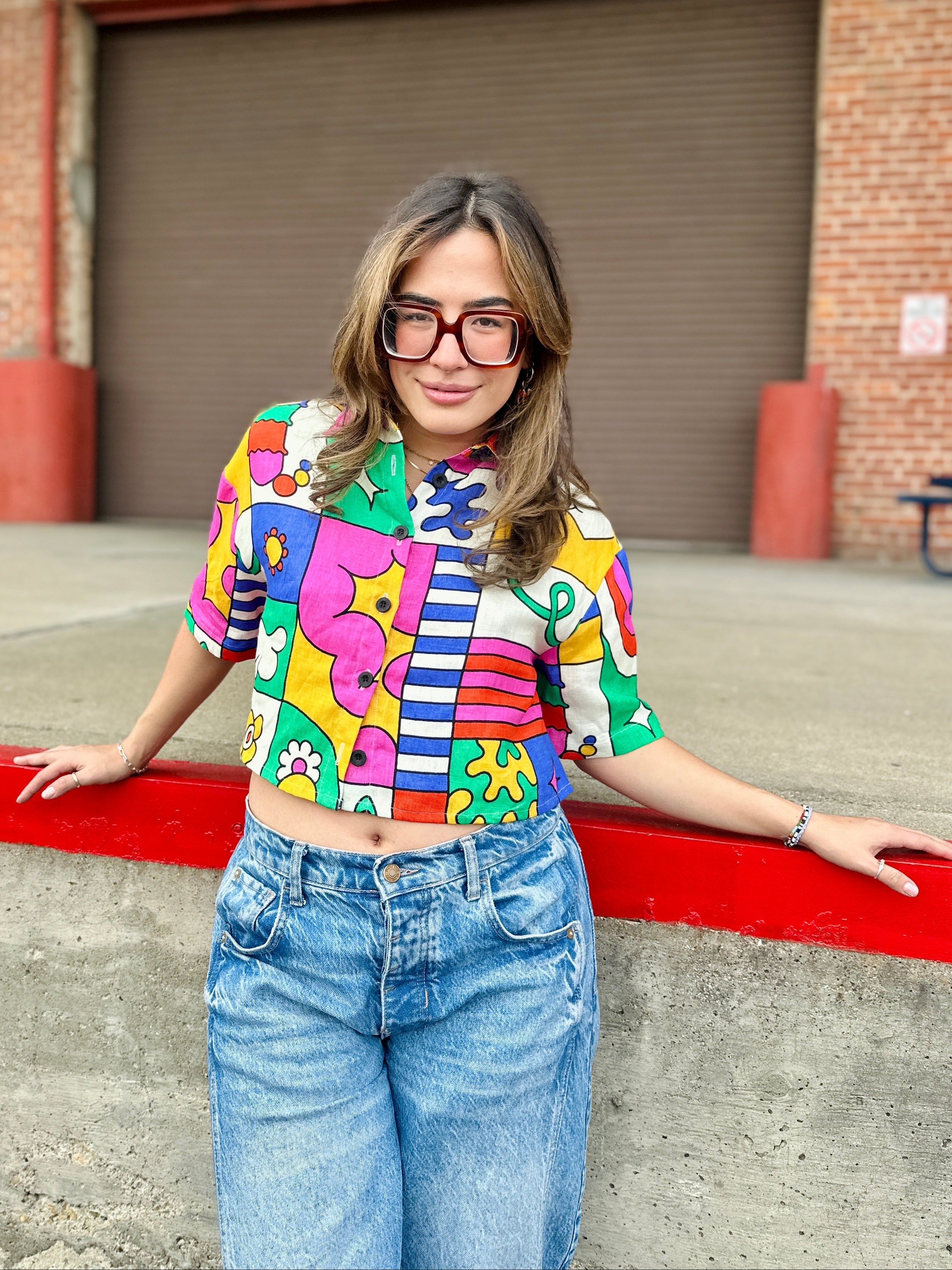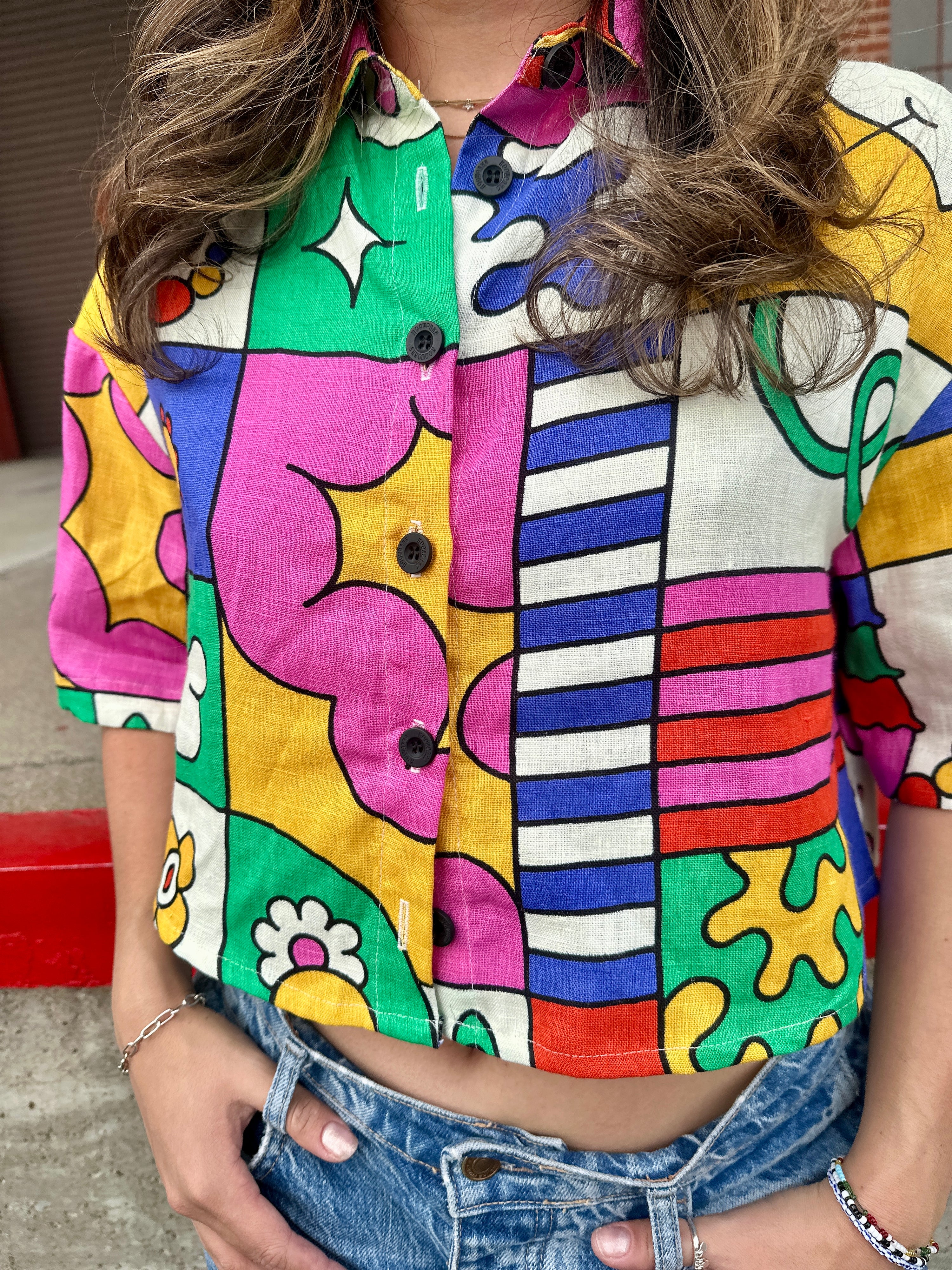 The Linen Olivia top is easy breezy! It has a boxy and oversized silhouette, cropped length, and dropped shoulder seams. It has a nice flat...