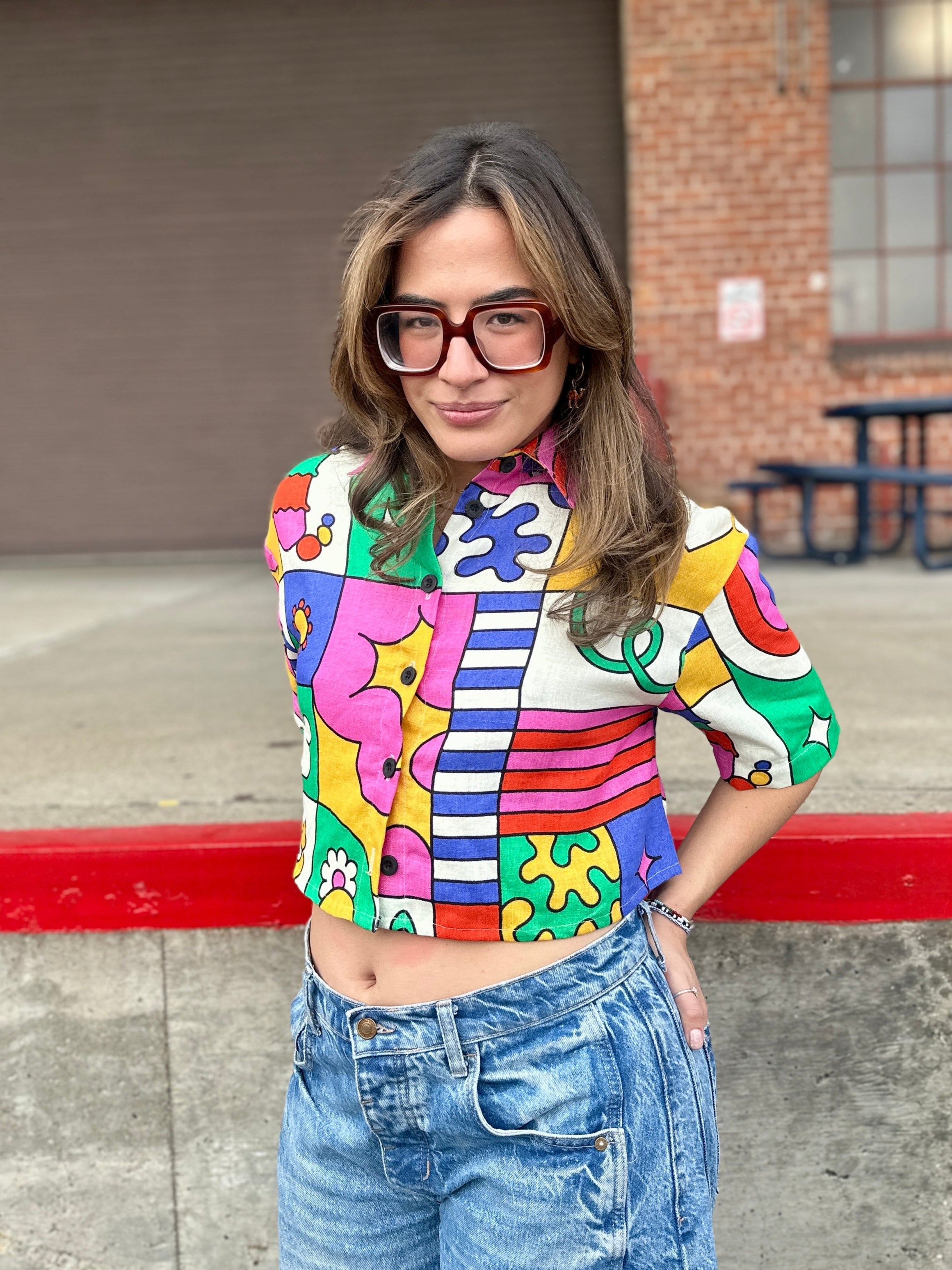 We are a woman owned, women run business. We make limited edition textiles with artists we love in cuts to make you look and feel good. All our garments are produced in California. We try to source all our materials in the USA and work with incredibly nice people.