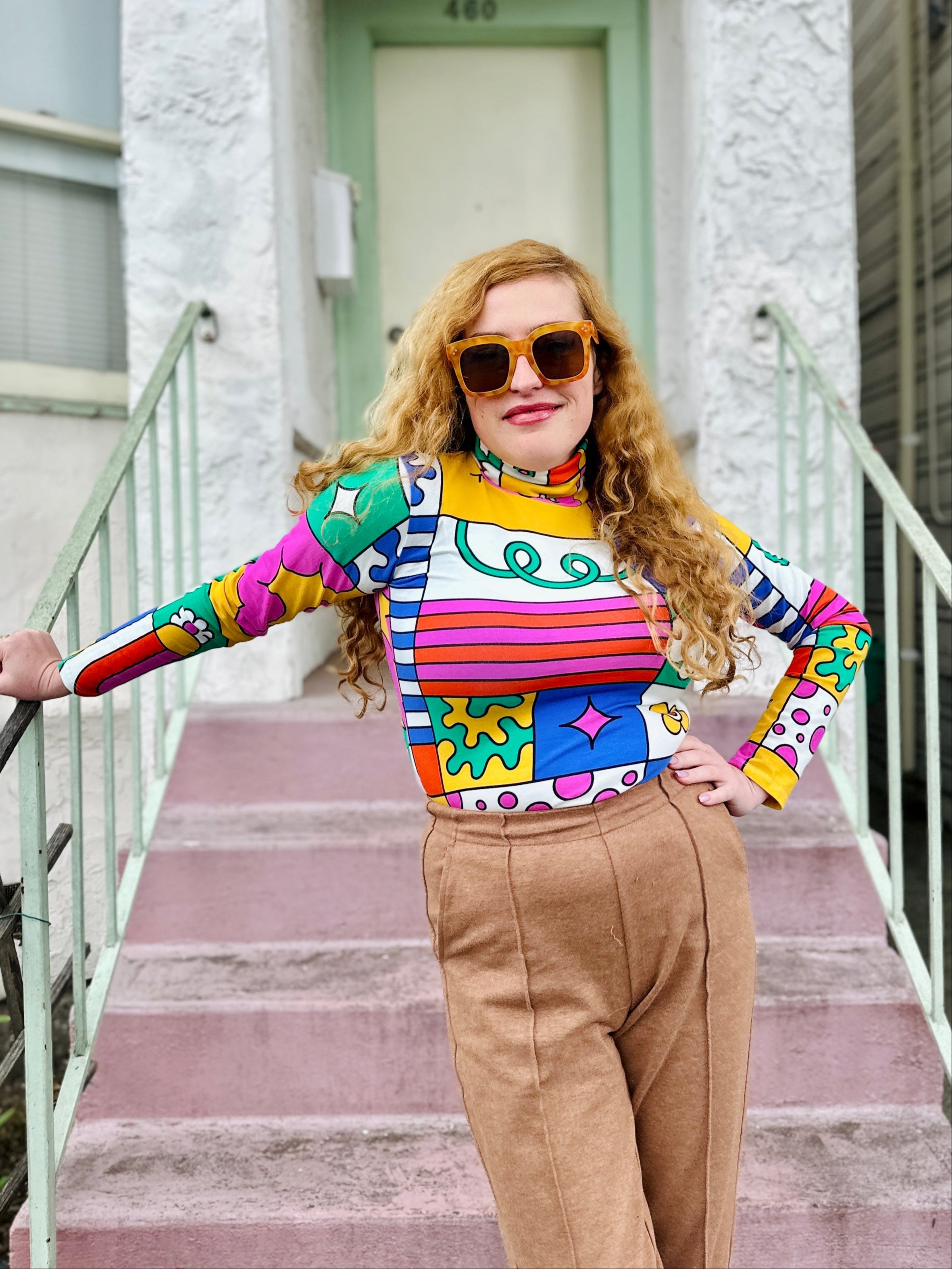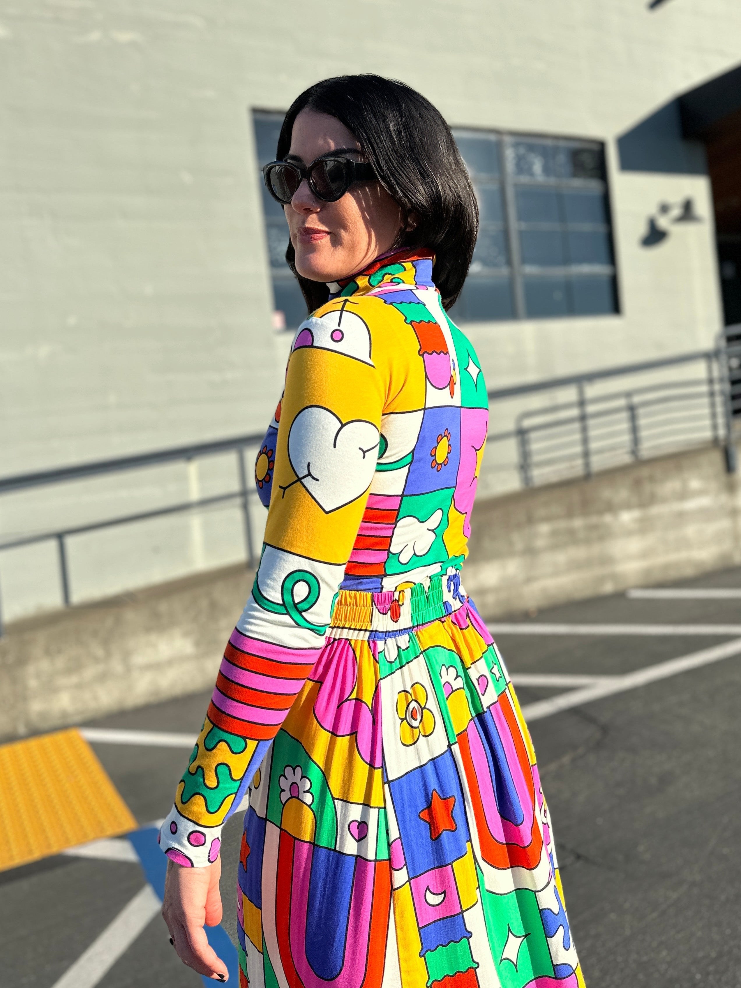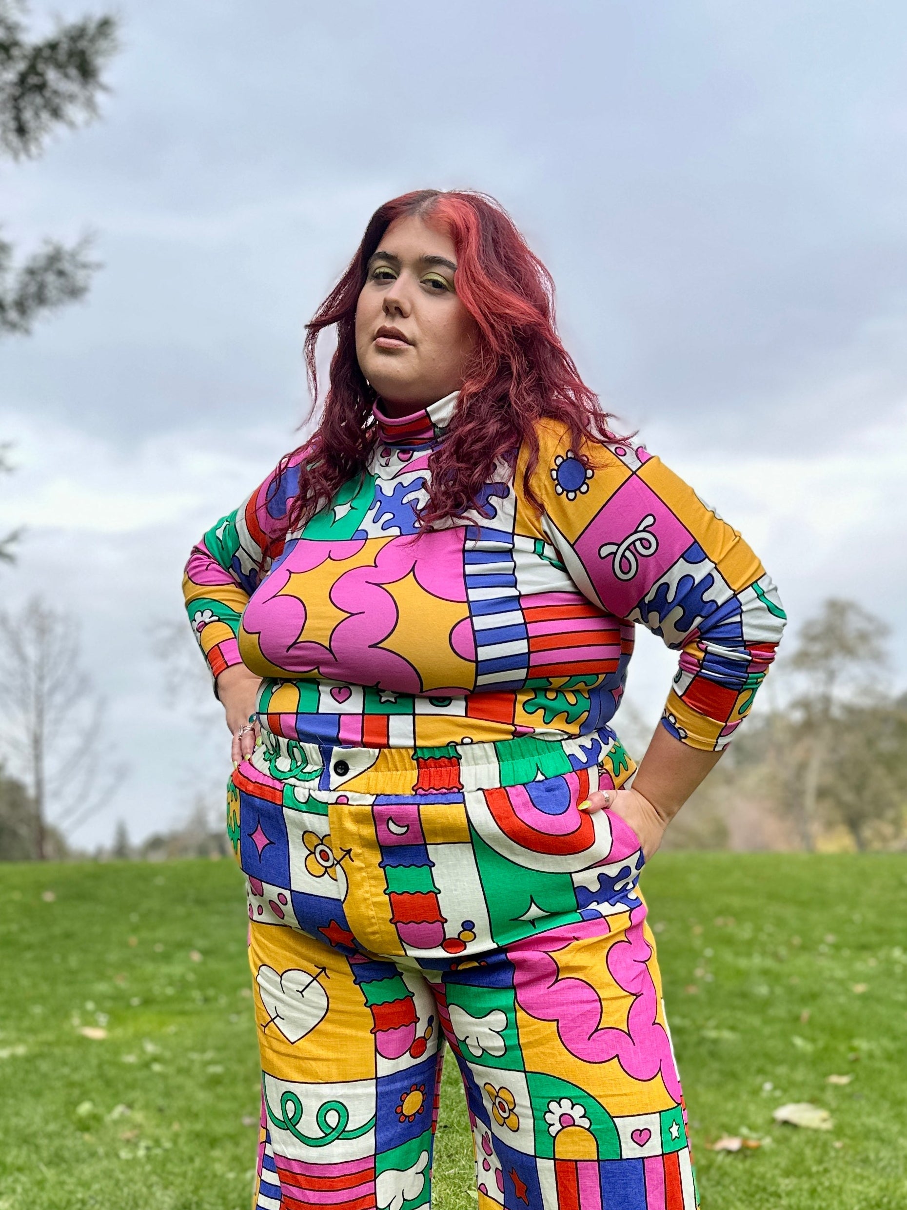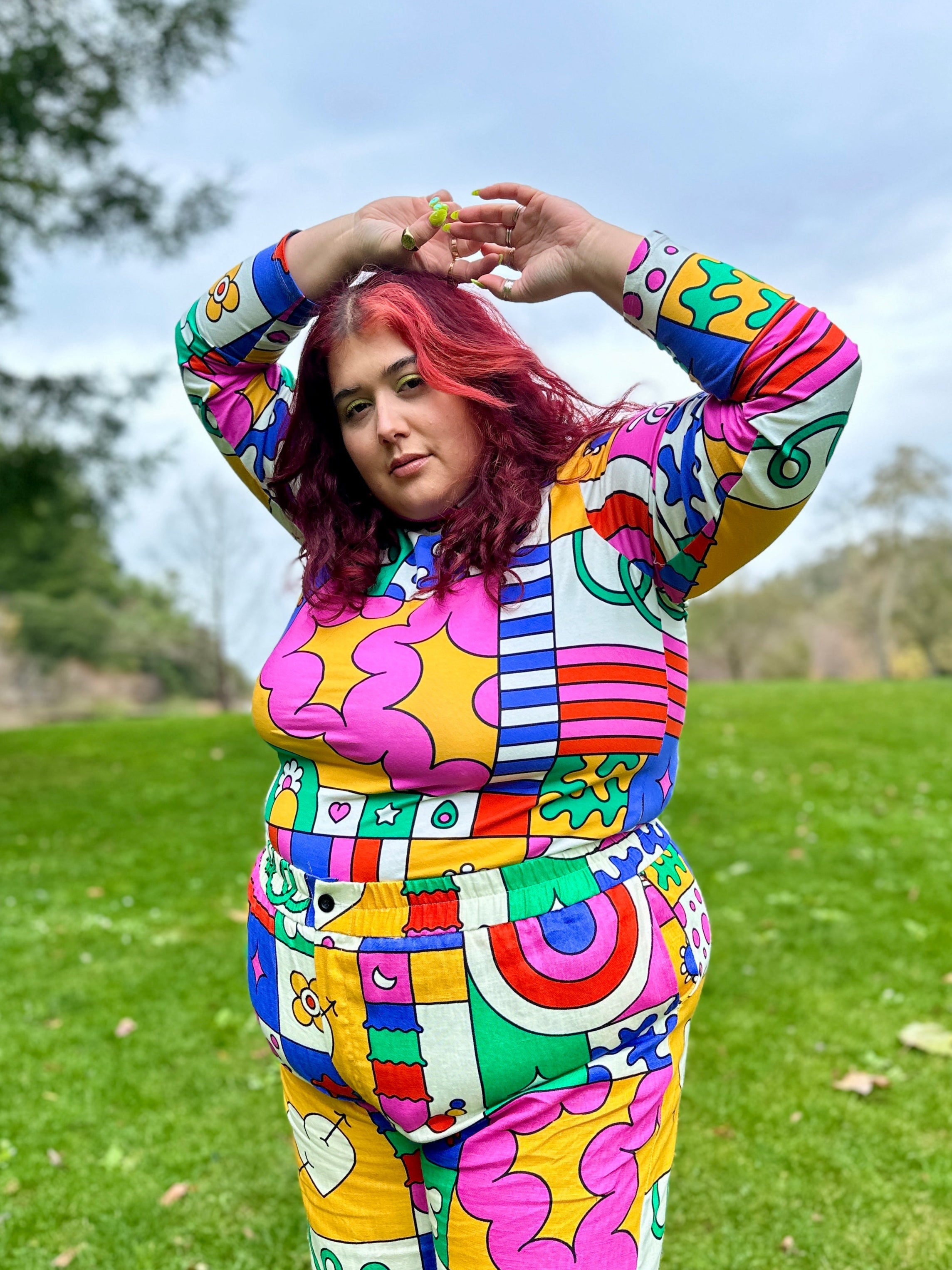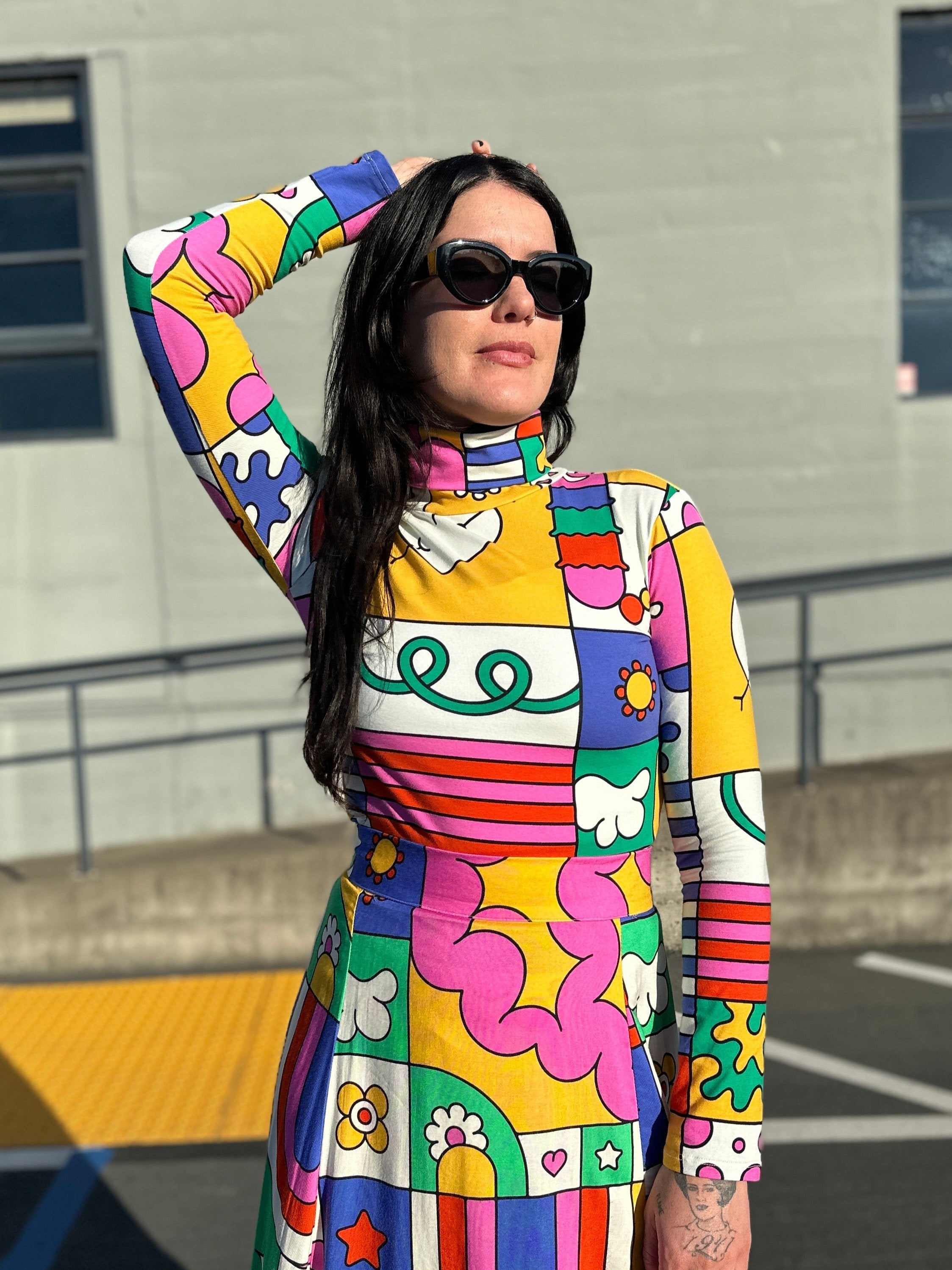 We are a woman owned, women run business. We make limited edition textiles with artists we love in cuts to make you look and feel good. All our garments are produced in California. We try to source all our materials in the USA and work with incredibly nice people.