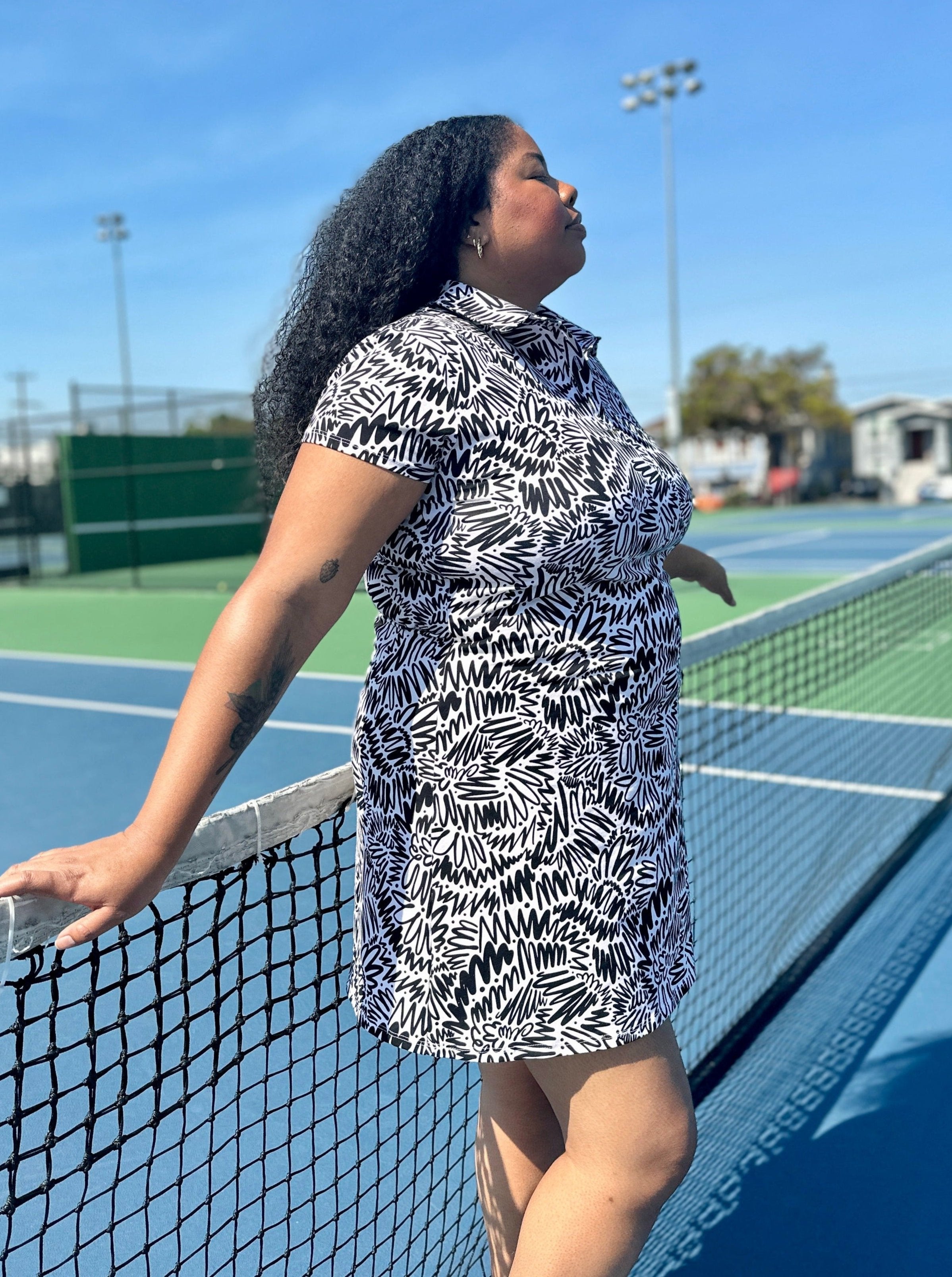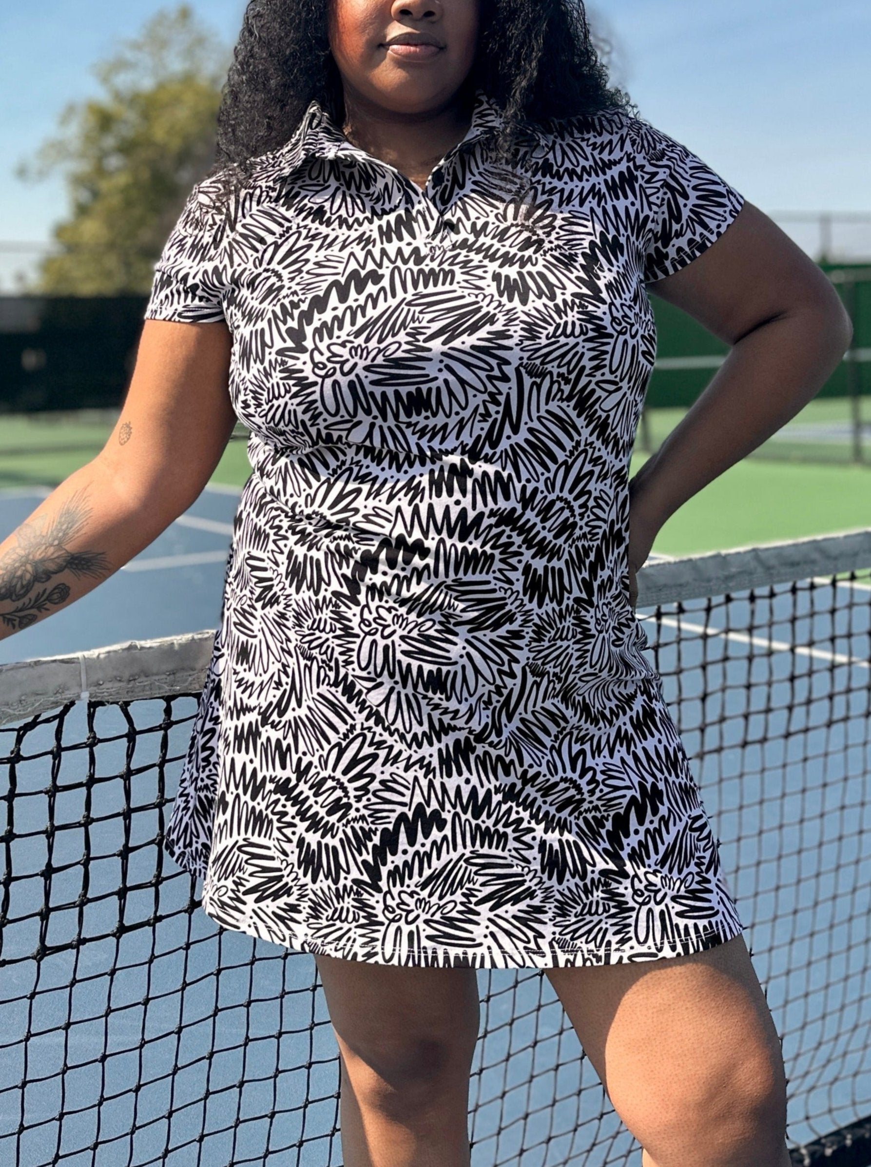Get your rackets out! 🎾 This short length collared stretch jersey dress features three buttons at the collar, short sleeves, and a fit-and-flare silhouette.+ Featuring...