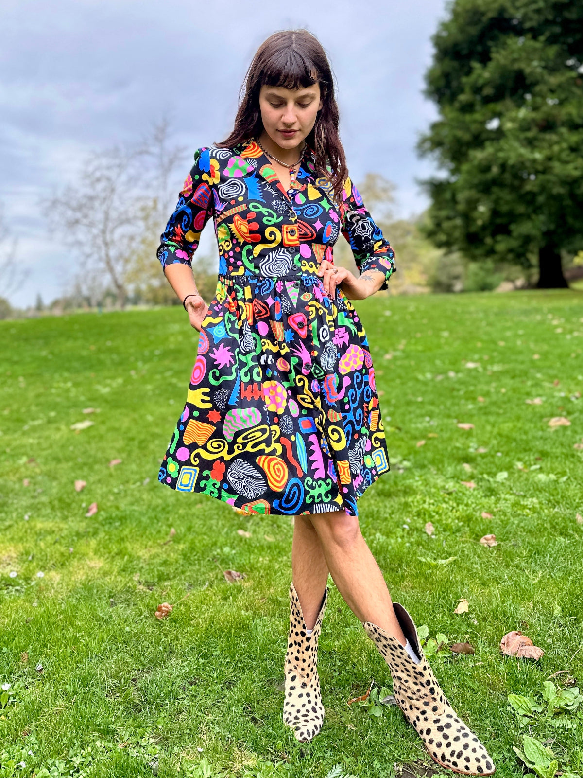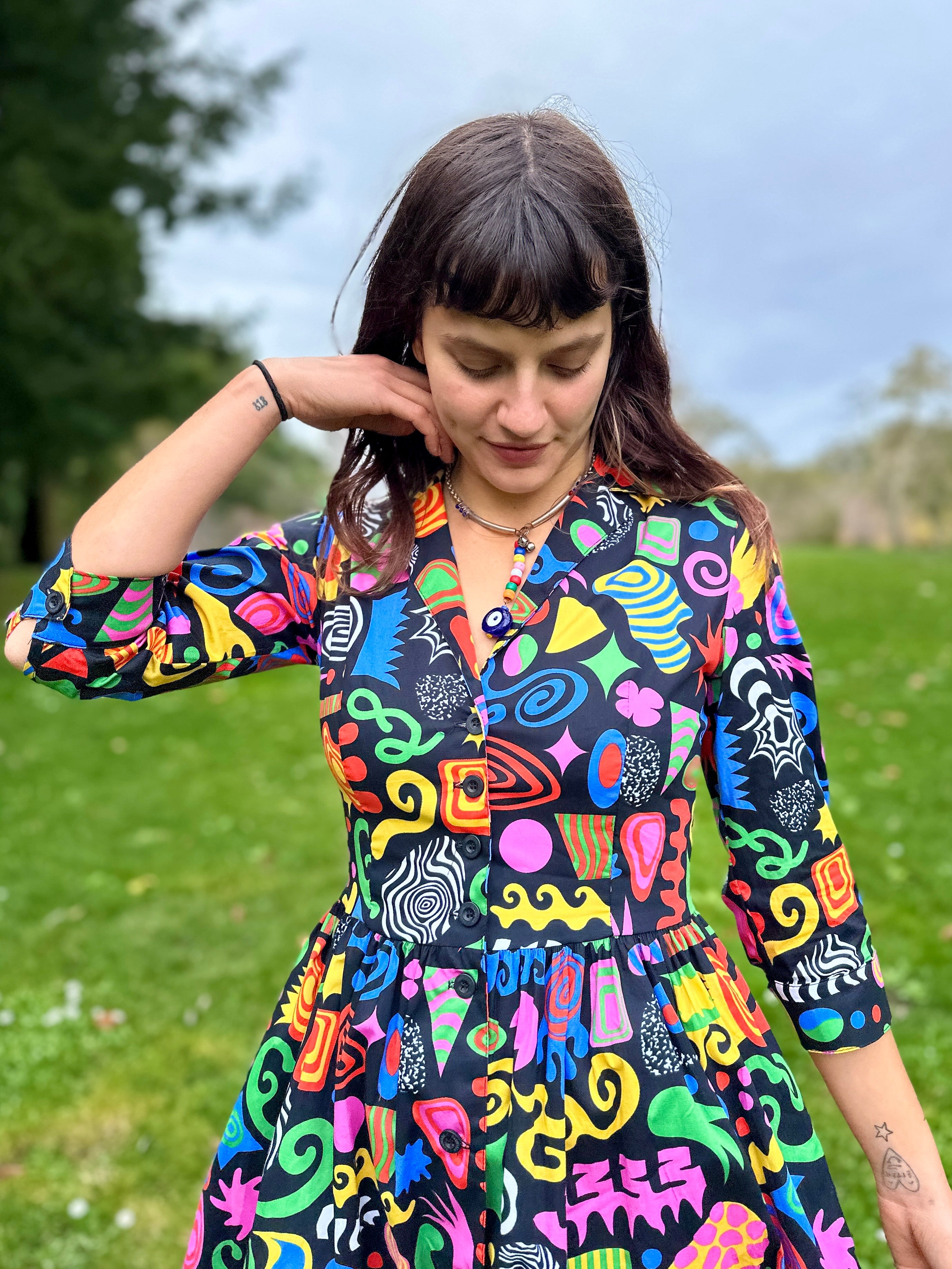 We are a woman owned, women run business. We make limited edition textiles with artists we love in cuts to make you look and feel good. All our garments are produced in California. We try to source all our materials in the USA and work with incredibly nice people.