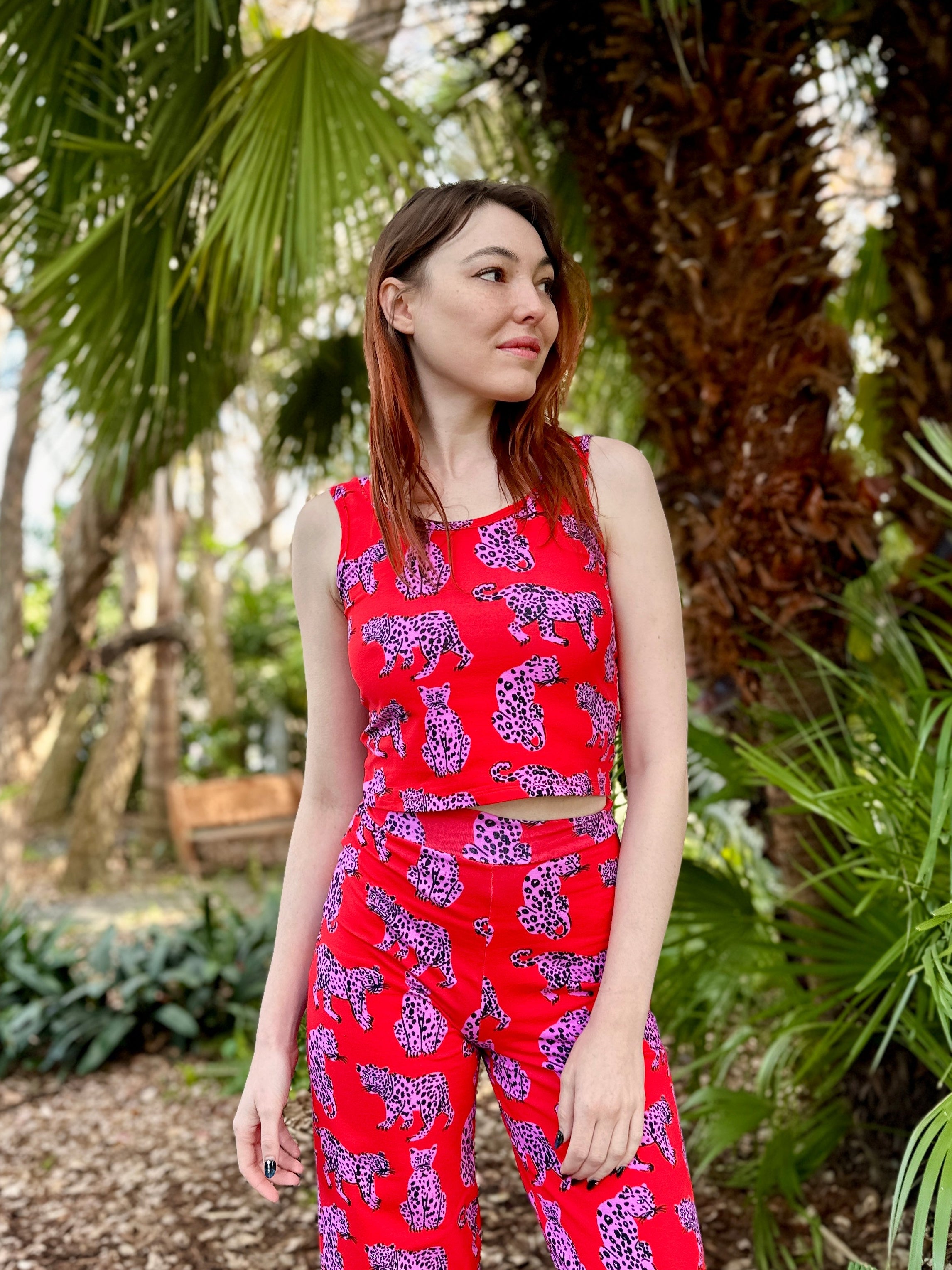 We are a woman owned, women run business. We make limited edition textiles with artists we love in cuts to make you look and feel good. All our garments are produced in California. We try to source all our materials in the USA and work with incredibly nice people.