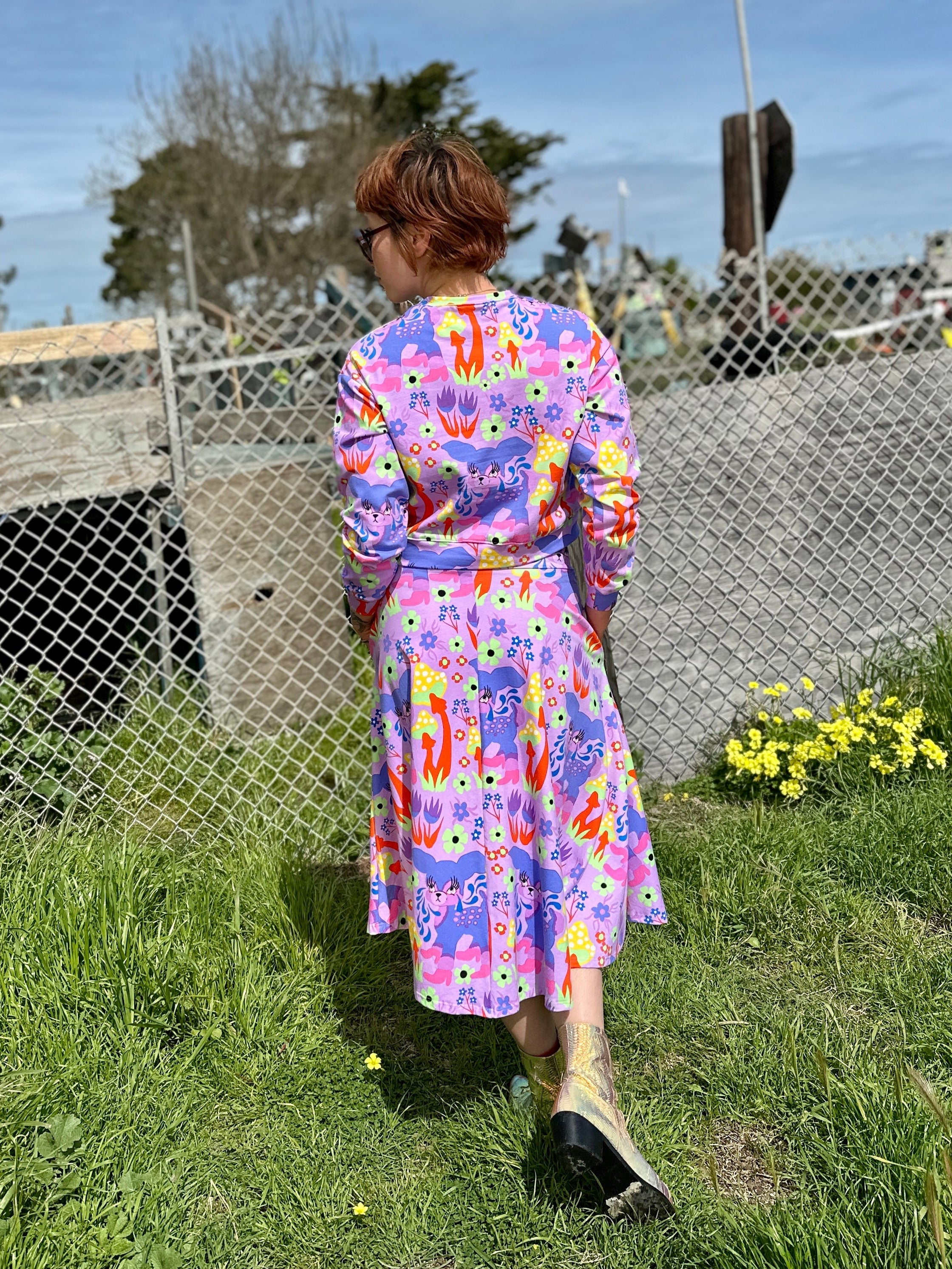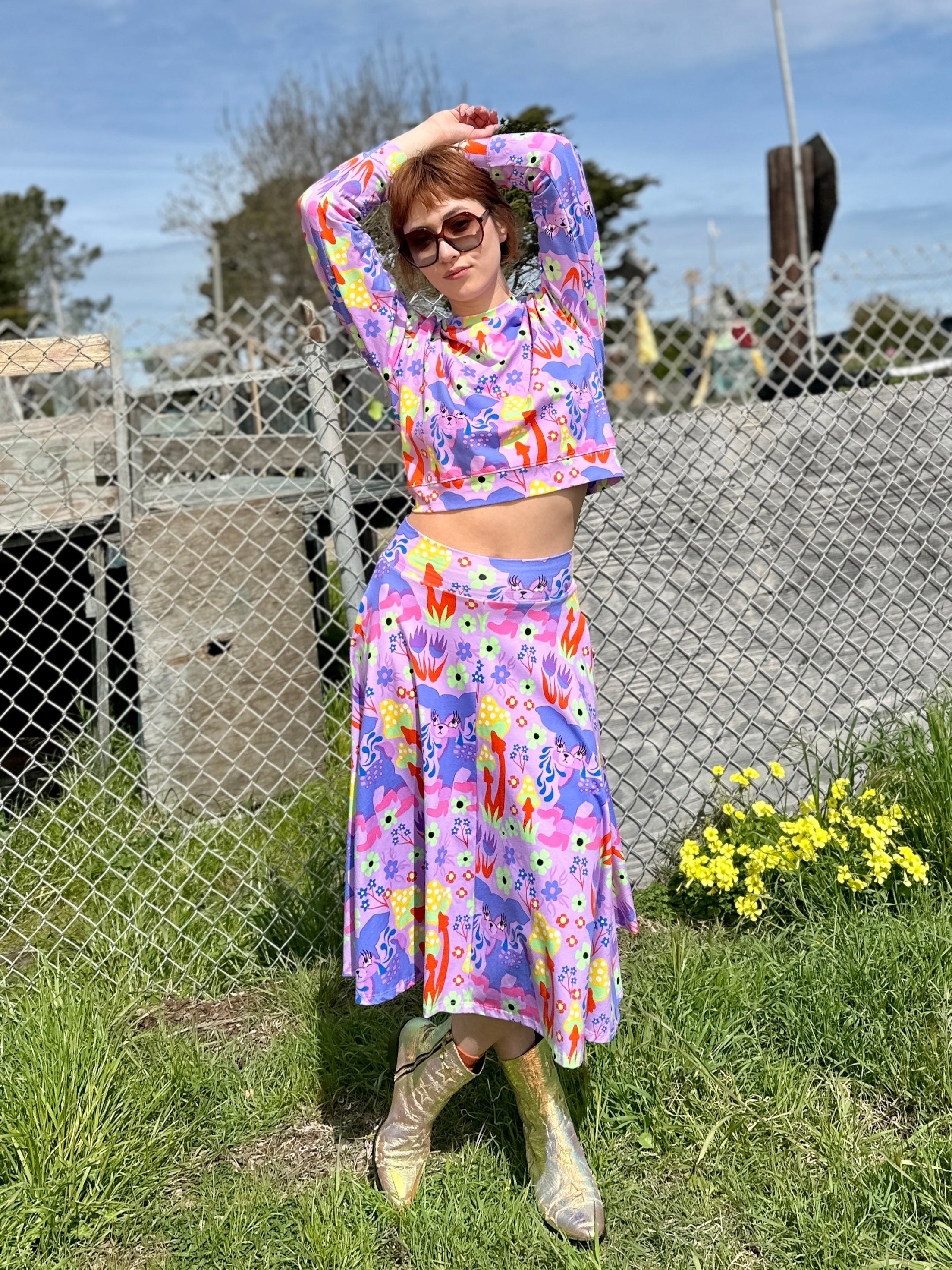 We are a woman owned, women run business. We make limited edition textiles with artists we love in cuts to make you look and feel good. All our garments are produced in California. We try to source all our materials in the USA and work with incredibly nice people.