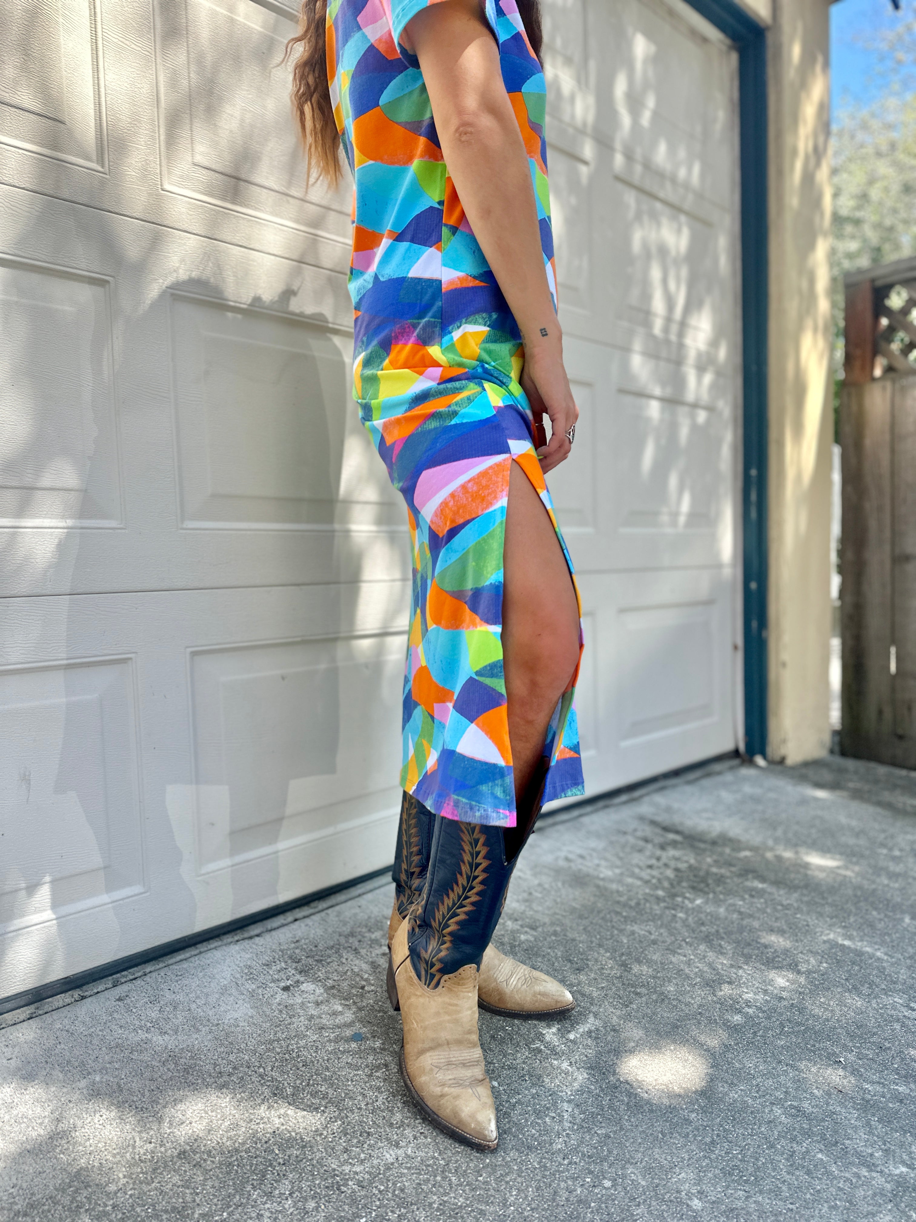 We are a woman owned, women run business. We make limited edition textiles with artists we love in cuts to make you look and feel good. All our garments are produced in California. We try to source all our materials in the USA and work with incredibly nice people.