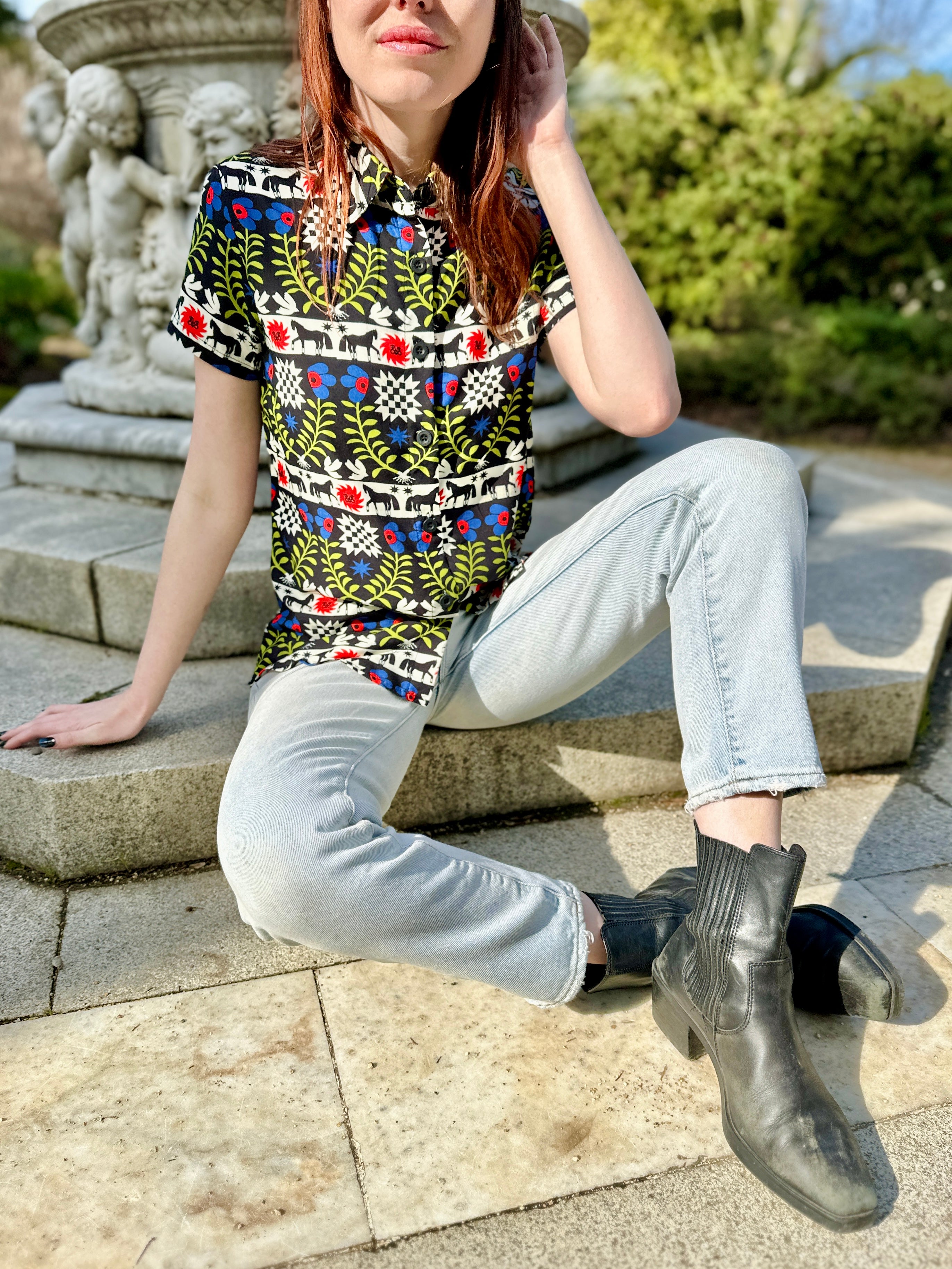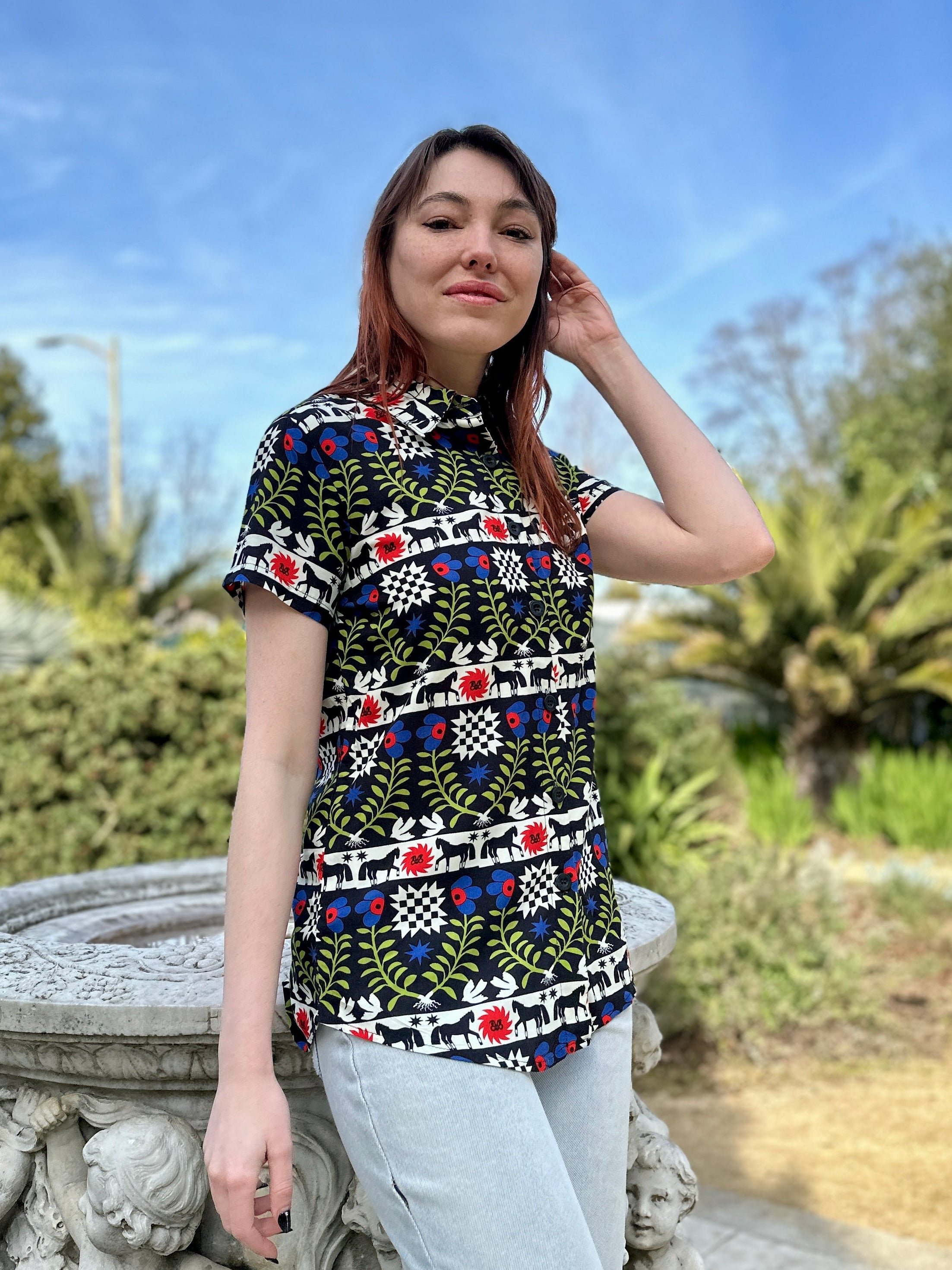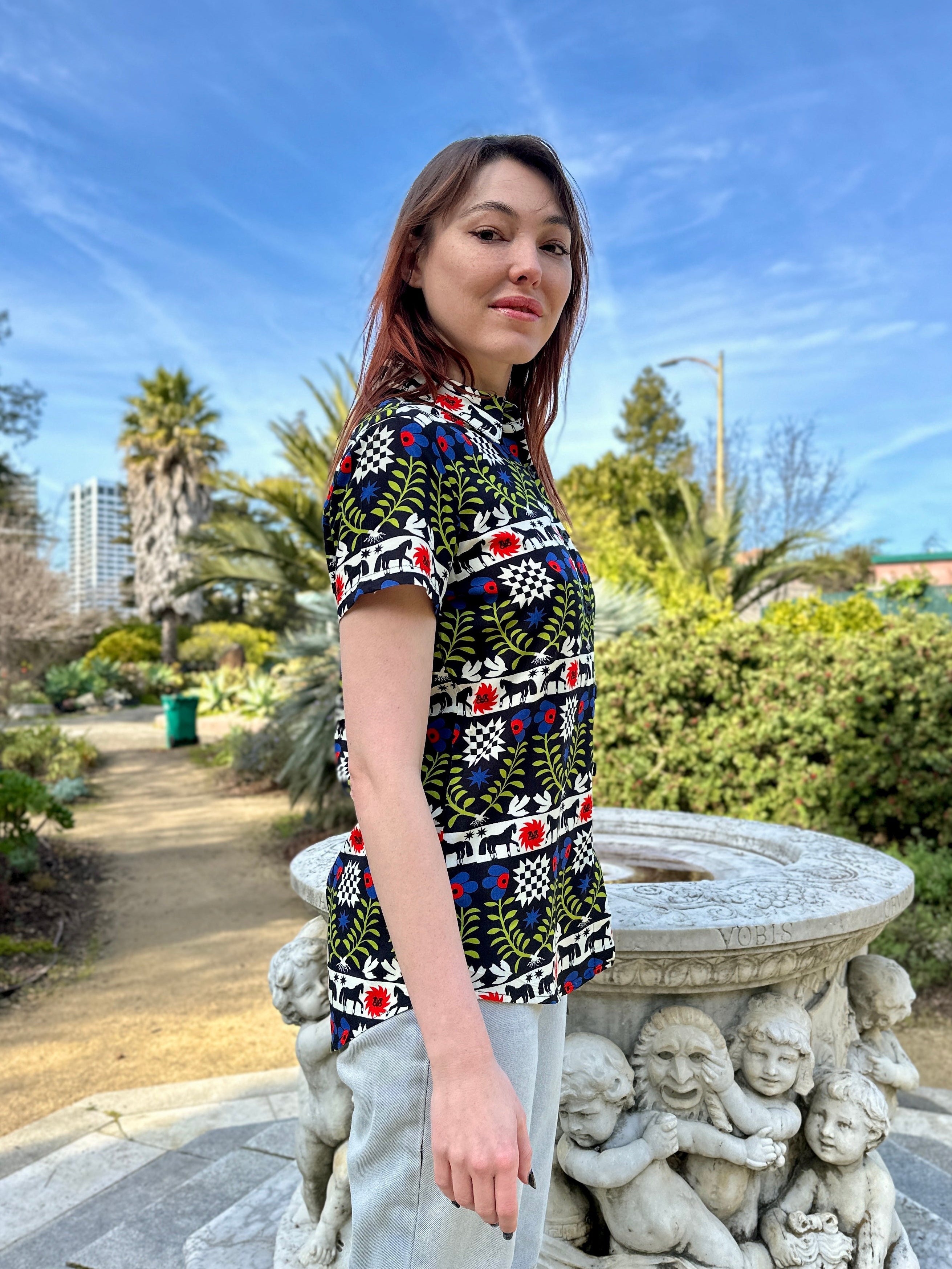 We are a woman owned, women run business. We make limited edition textiles with artists we love in cuts to make you look and feel good. All our garments are produced in California. We try to source all our materials in the USA and work with incredibly nice people.