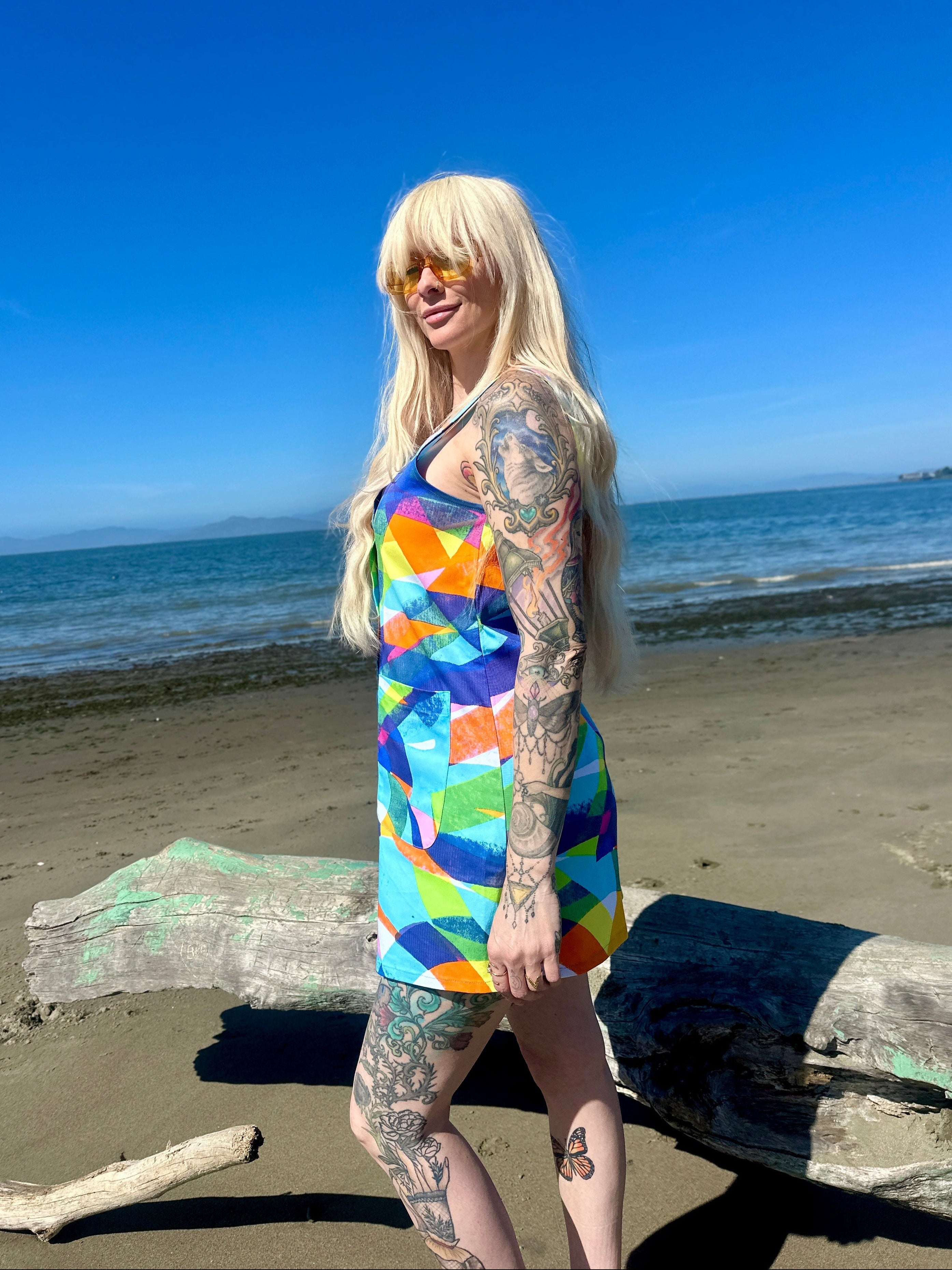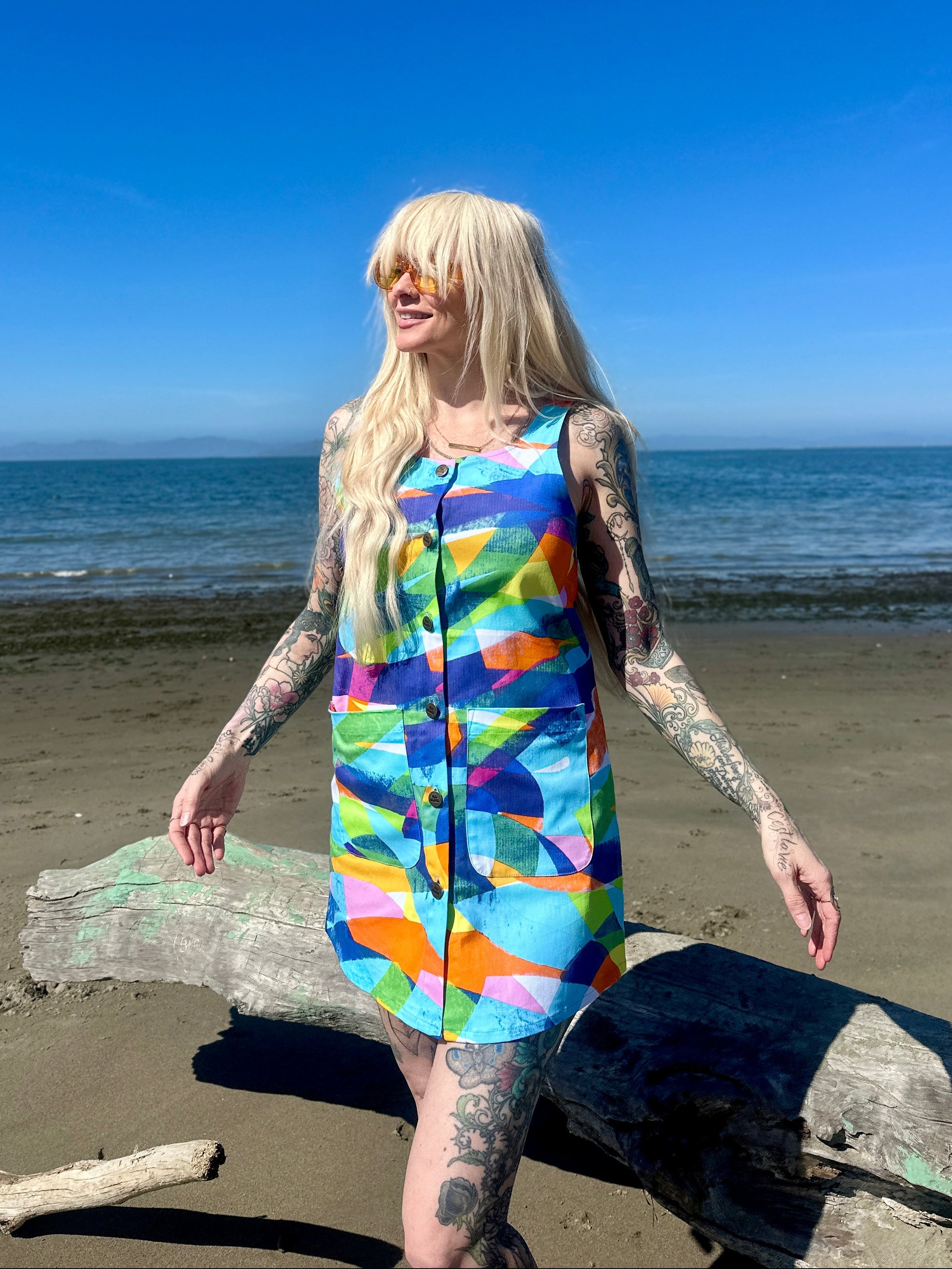 We are a woman owned, women run business. We make limited edition textiles with artists we love in cuts to make you look and feel good. All our garments are produced in California. We try to source all our materials in the USA and work with incredibly nice people.