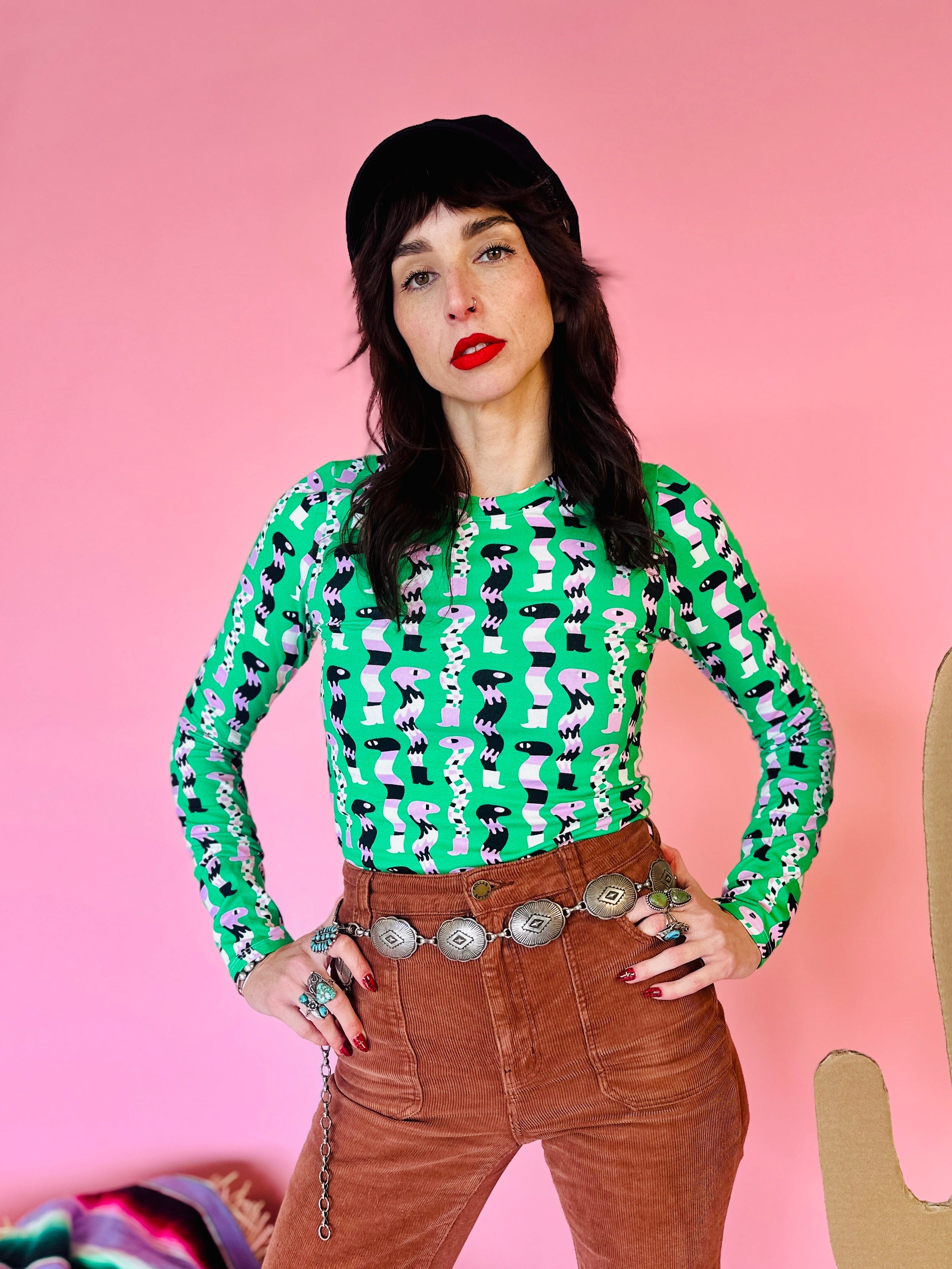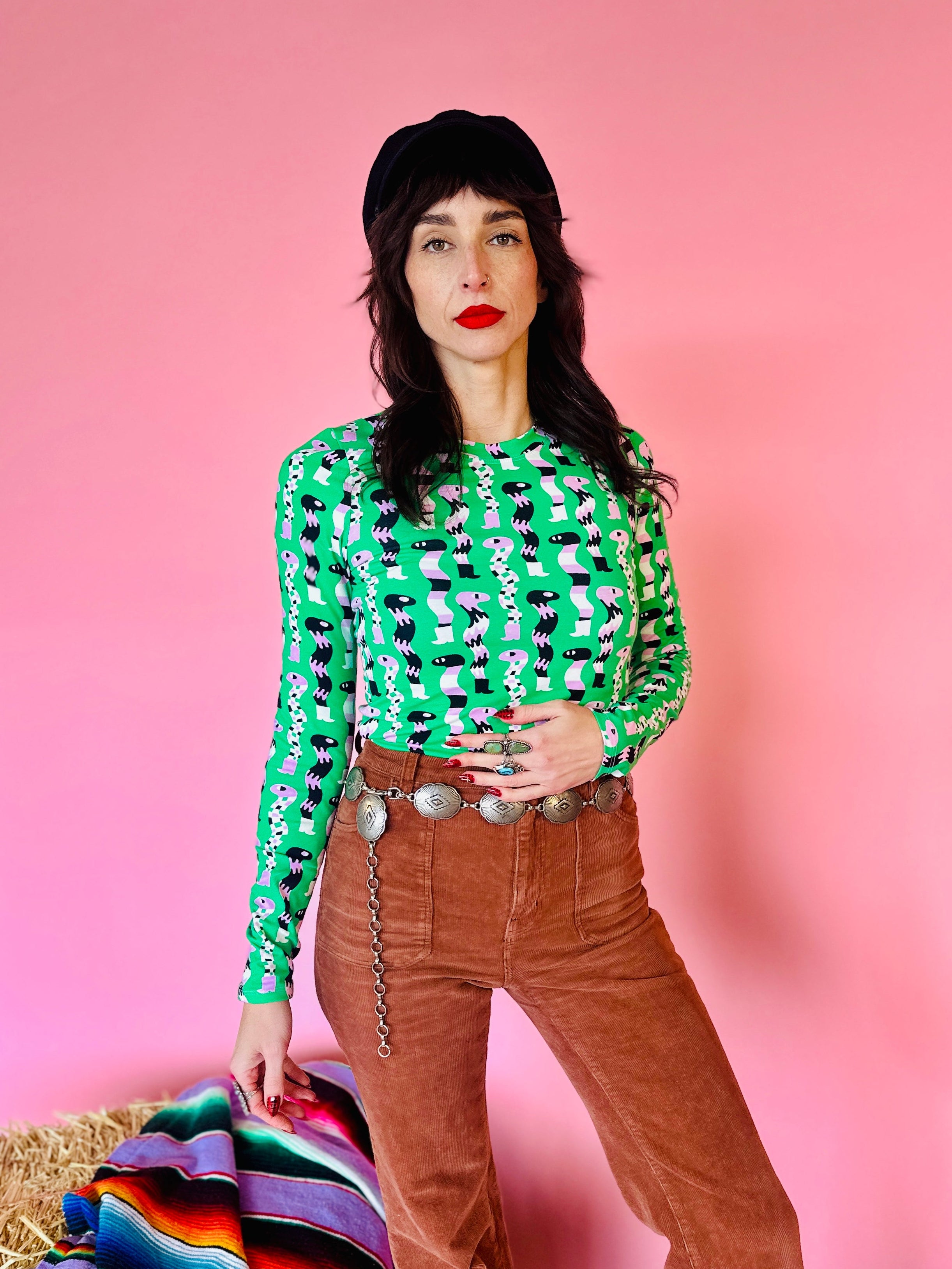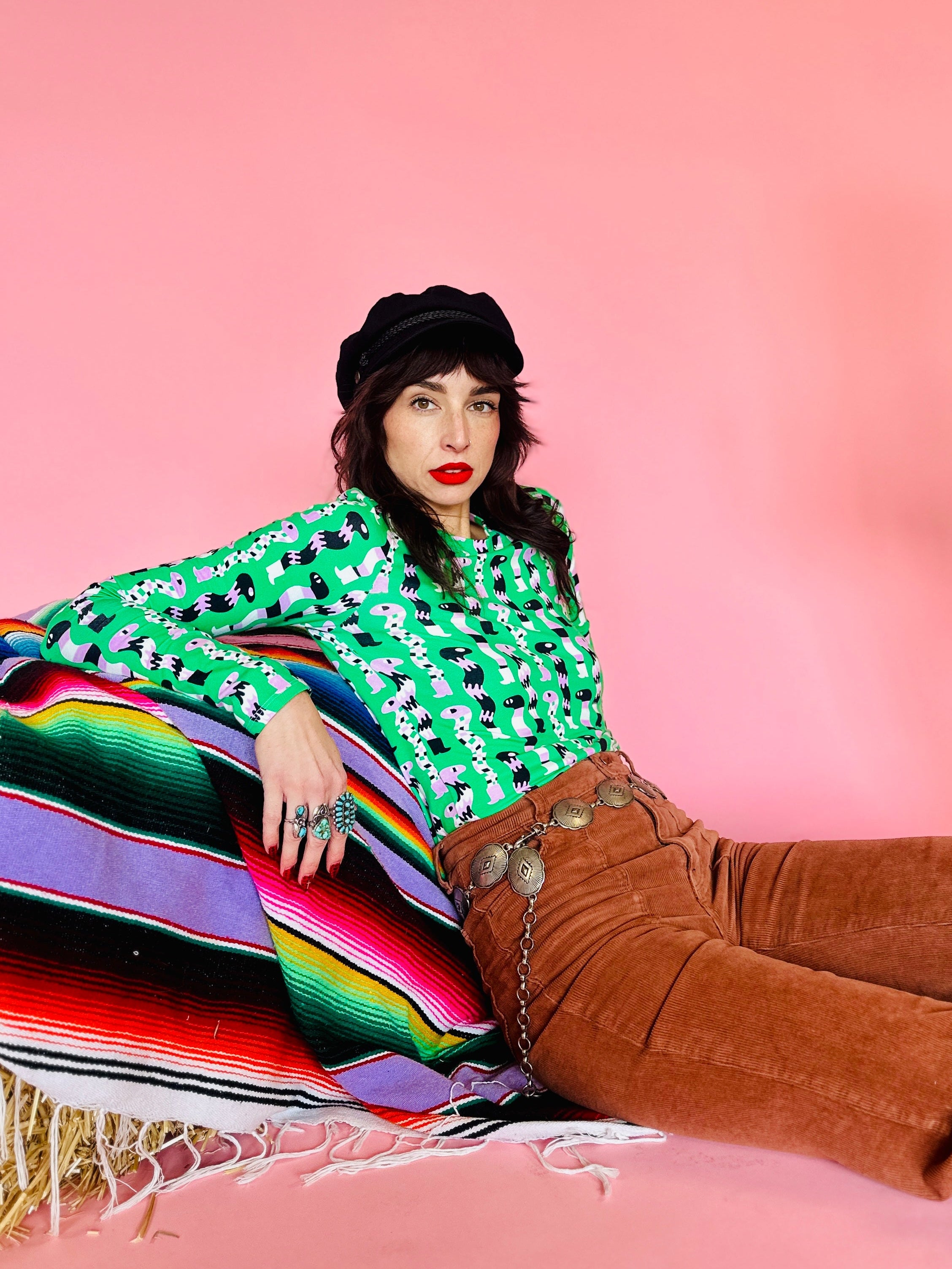 We are a woman owned, women run business. We make limited edition textiles with artists we love in cuts to make you look and feel good. All our garments are produced in California. We try to source all our materials in the USA and work with incredibly nice people.
