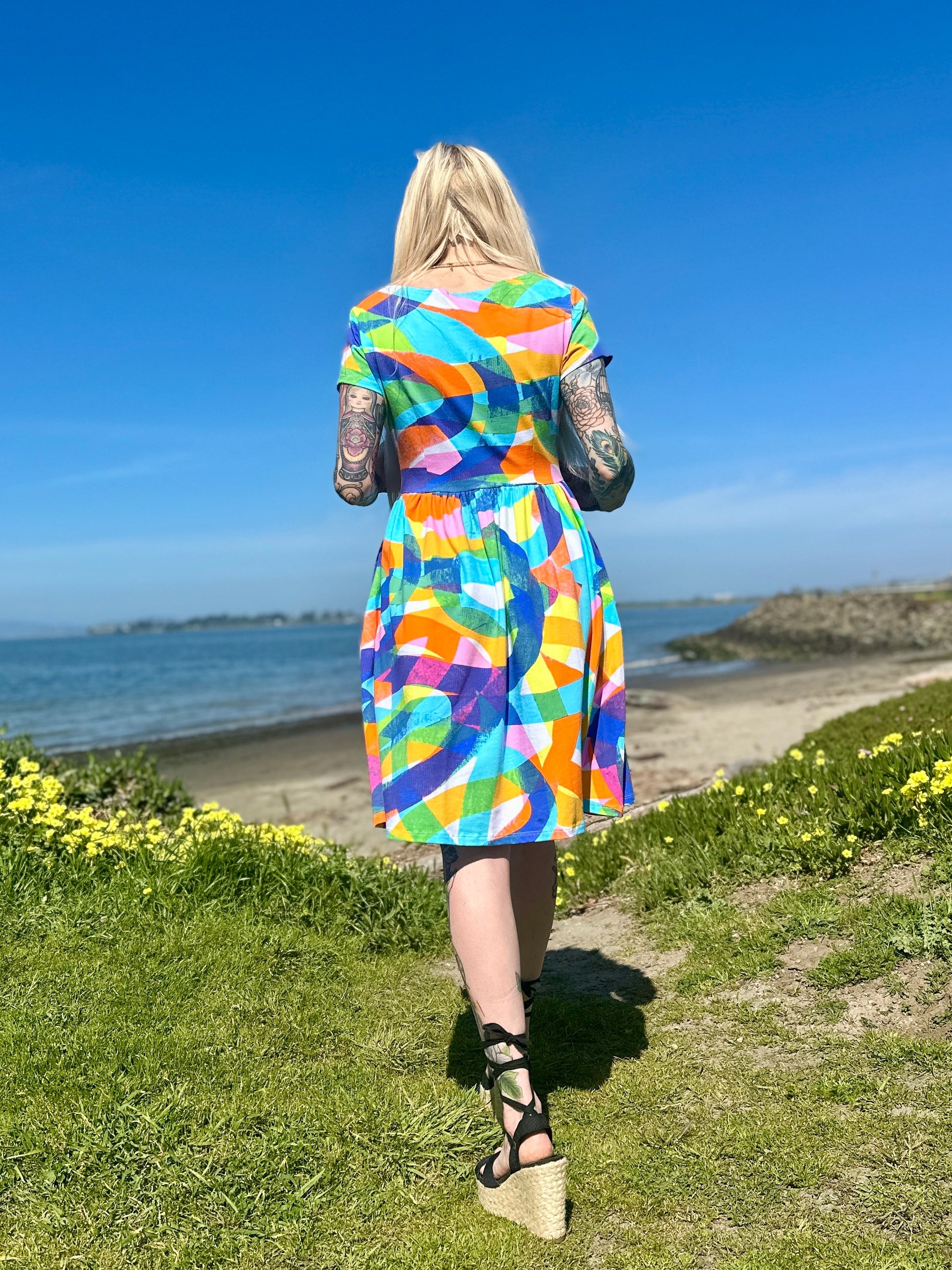 We are a woman owned, women run business. We make limited edition textiles with artists we love in cuts to make you look and feel good. All our garments are produced in California. We try to source all our materials in the USA and work with incredibly nice people.