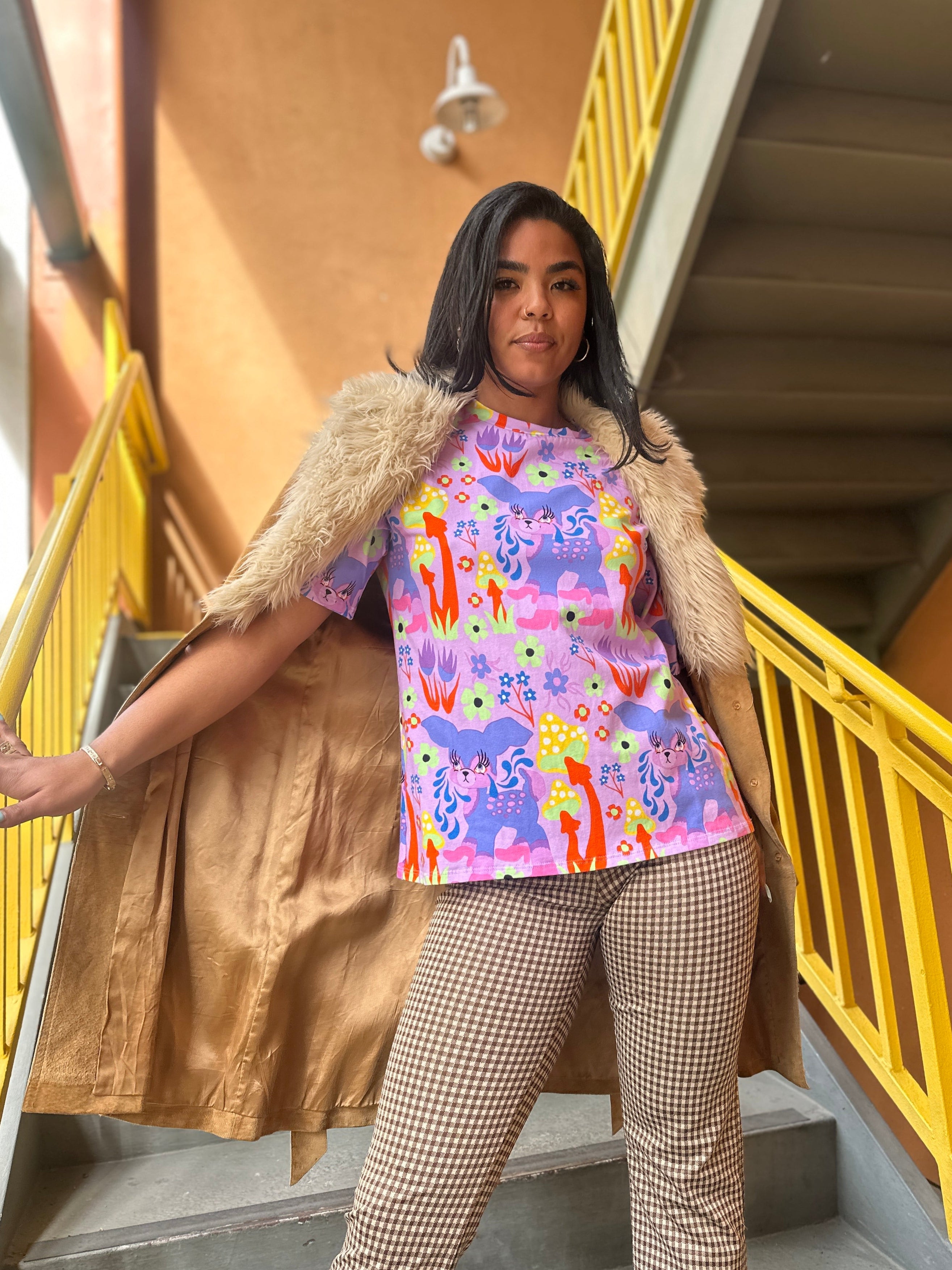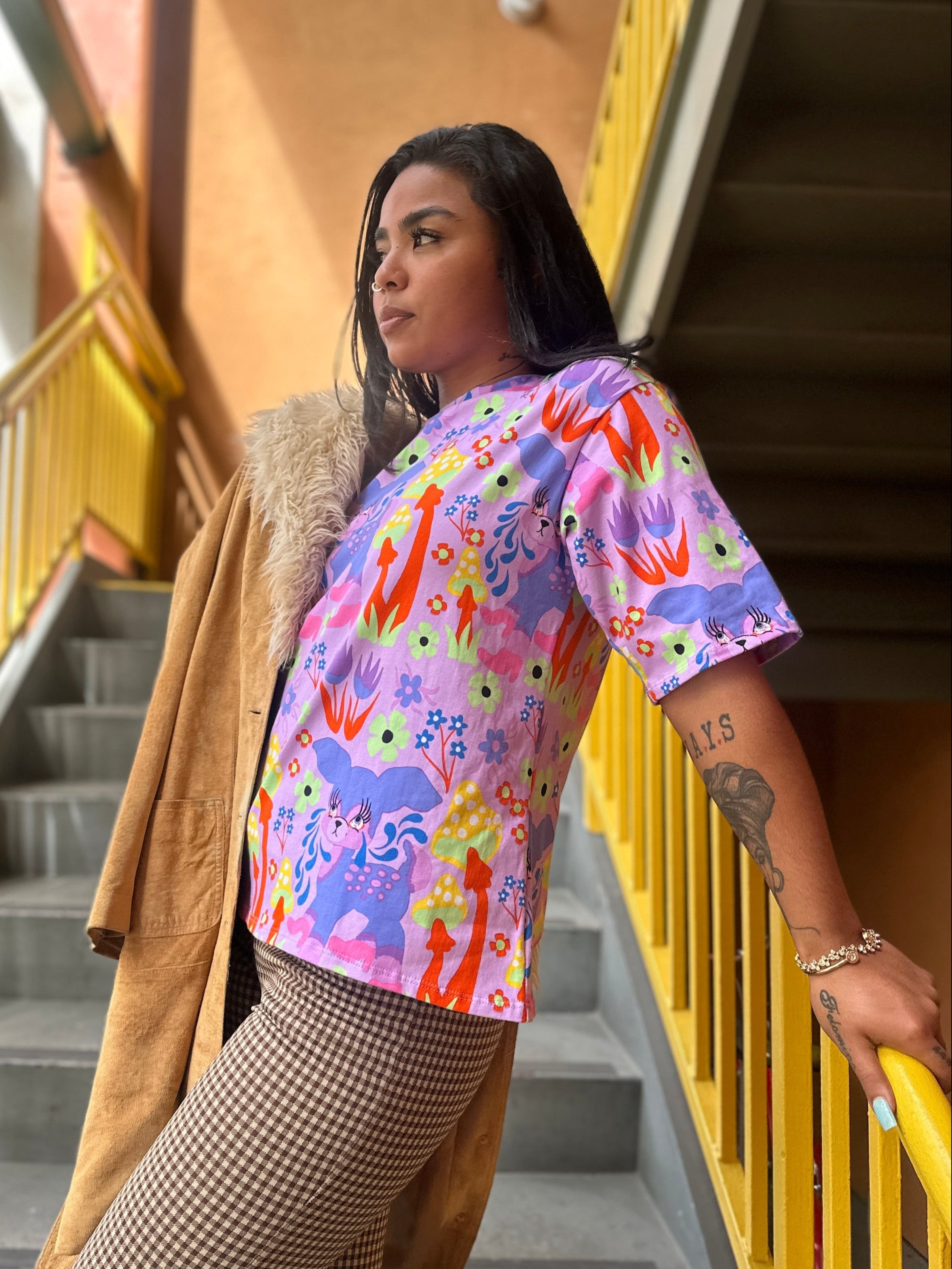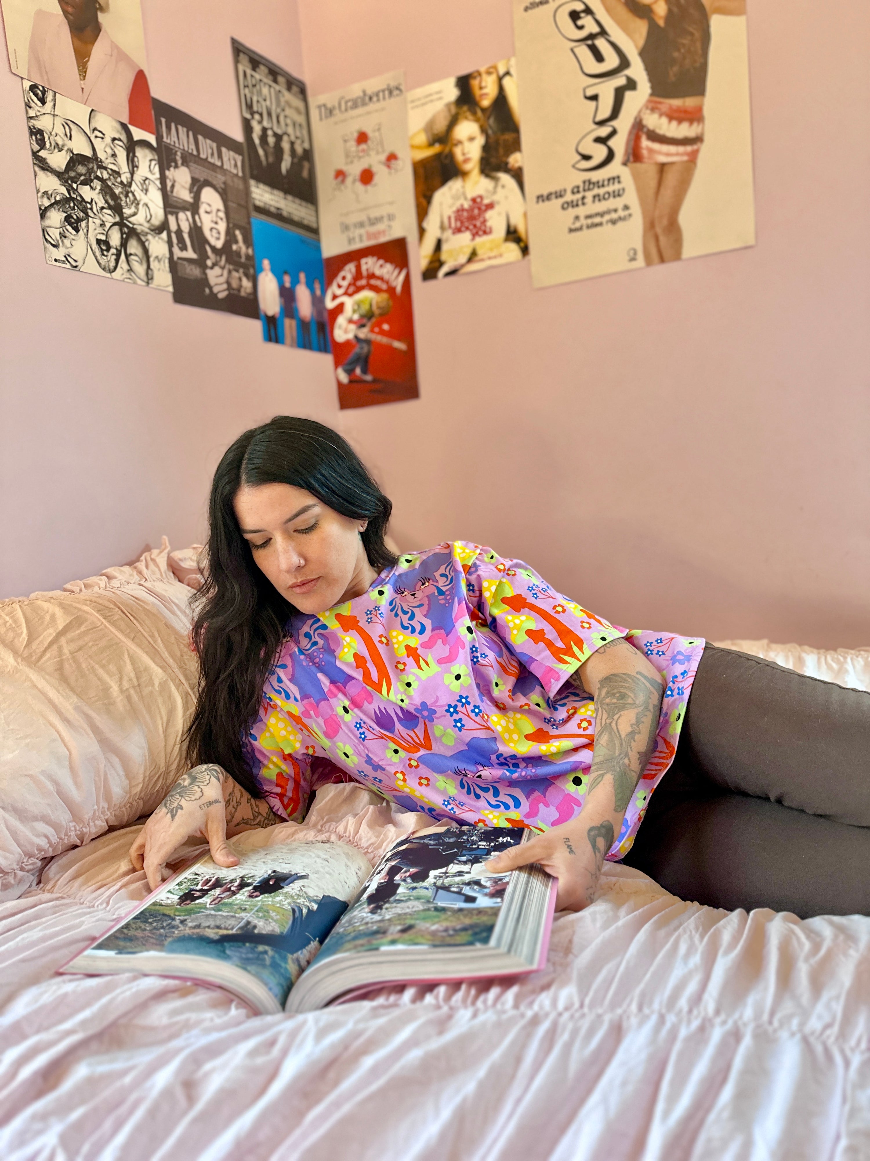 We are a woman owned, women run business. We make limited edition textiles with artists we love in cuts to make you look and feel good. All our garments are produced in California. We try to source all our materials in the USA and work with incredibly nice people.