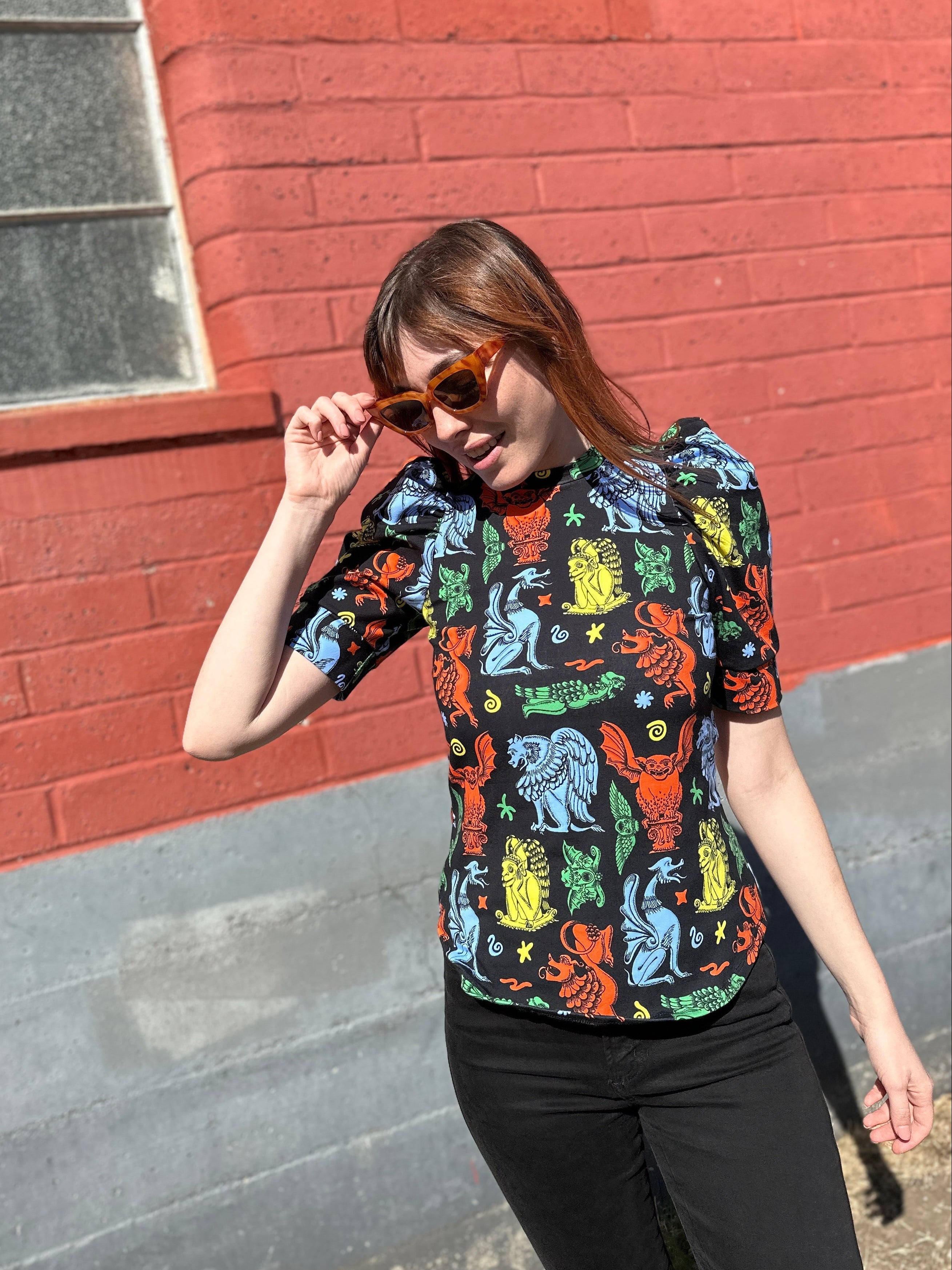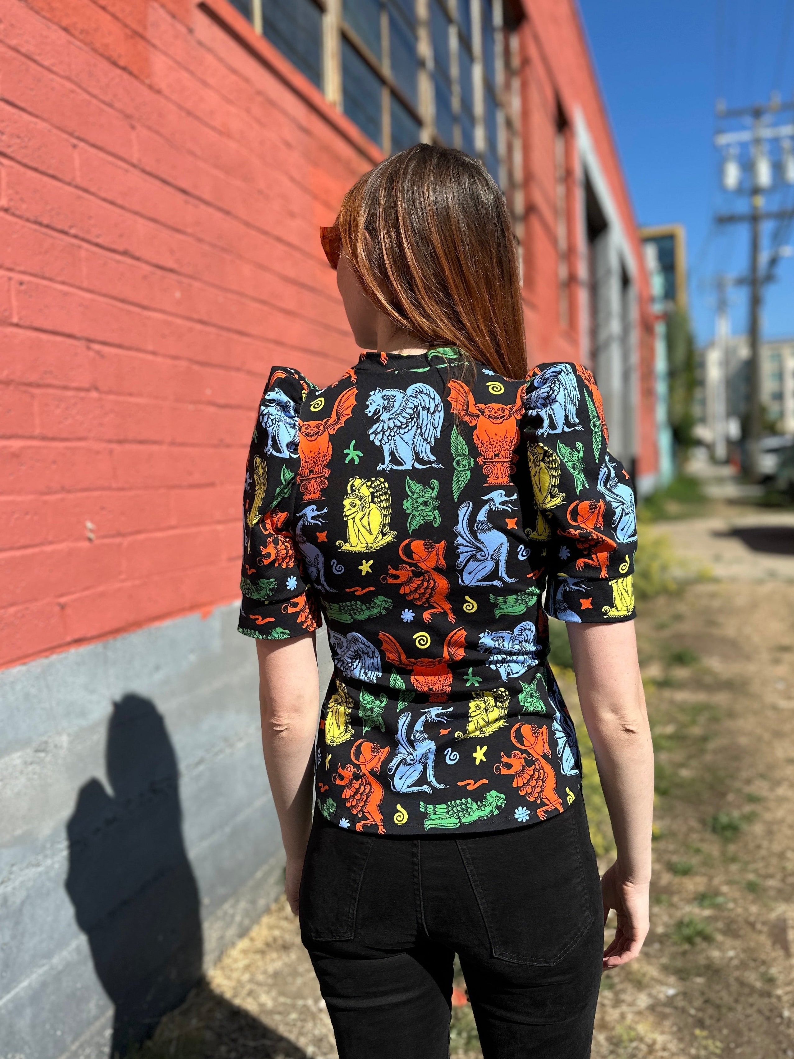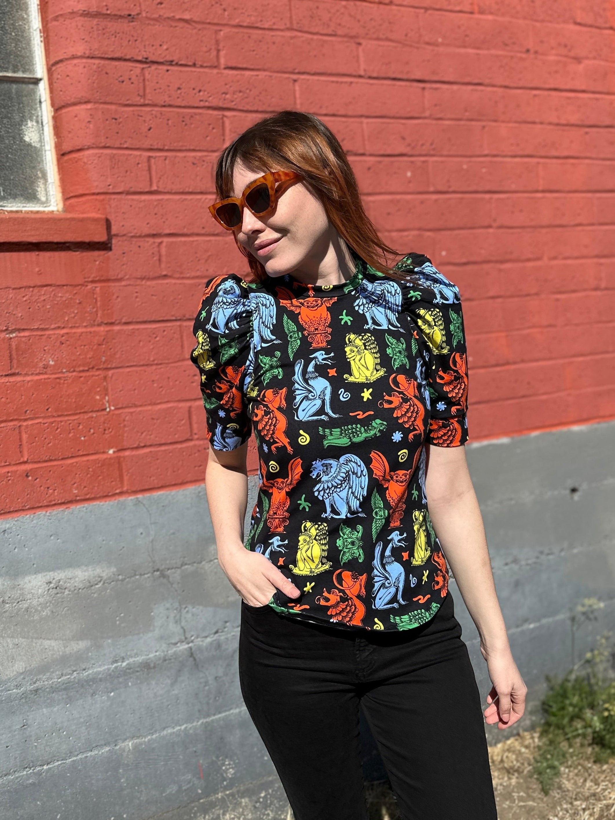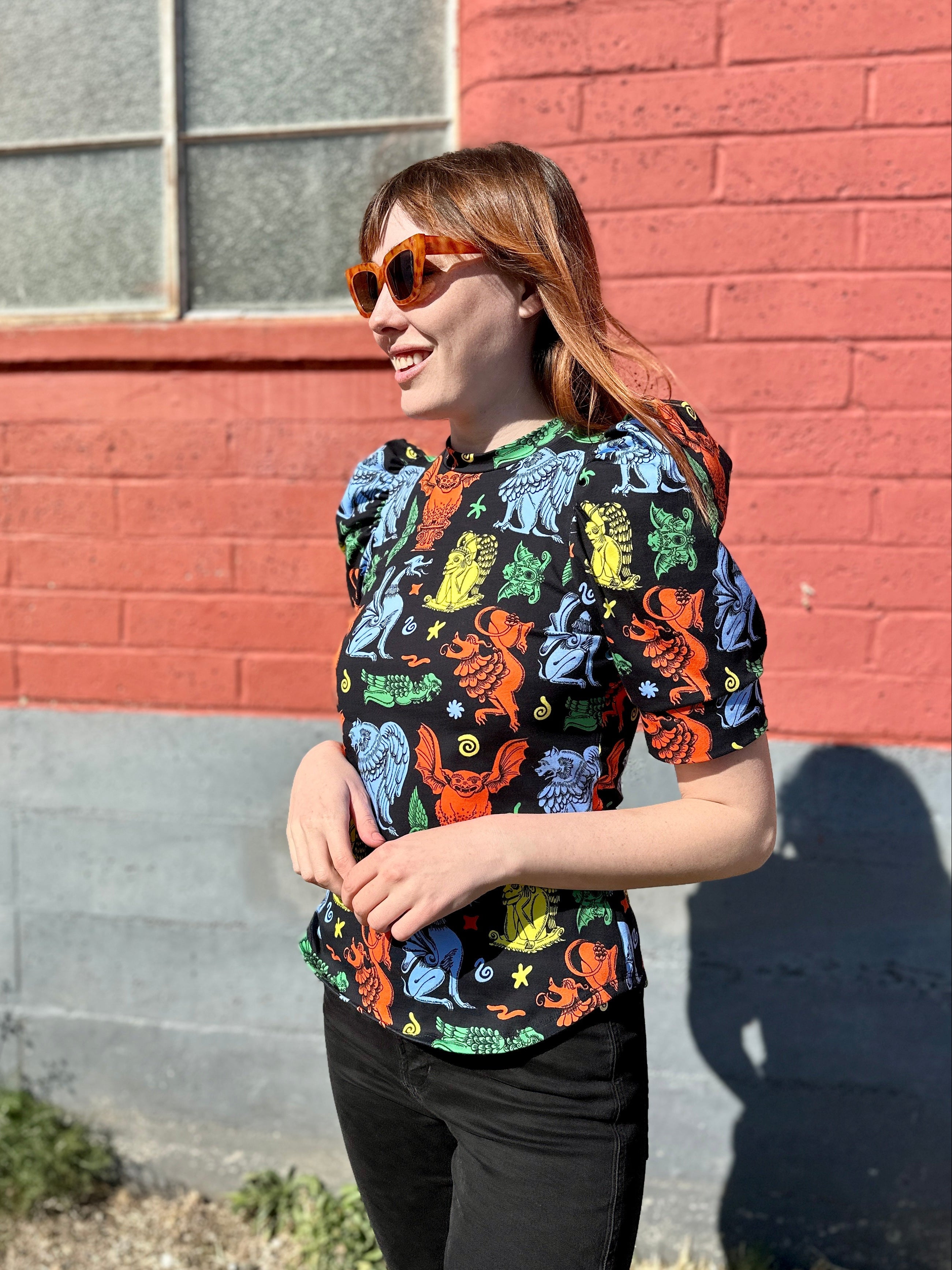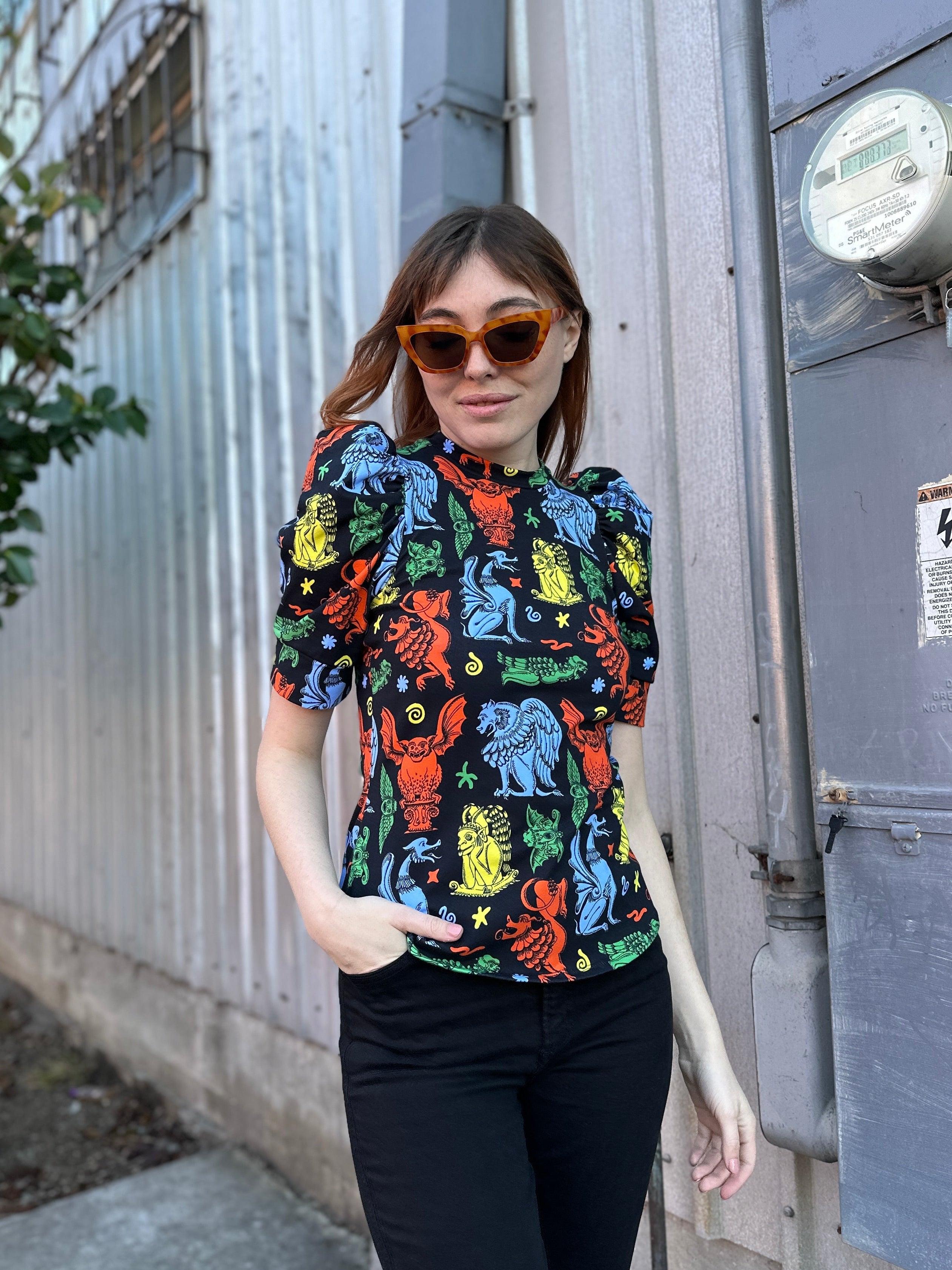 + Care Instructions: To help preserve the print and fit of your garment, only wash when it truly needs it. Then, turn it inside out and hand wash with cold water and a gentle detergent. Line dry.