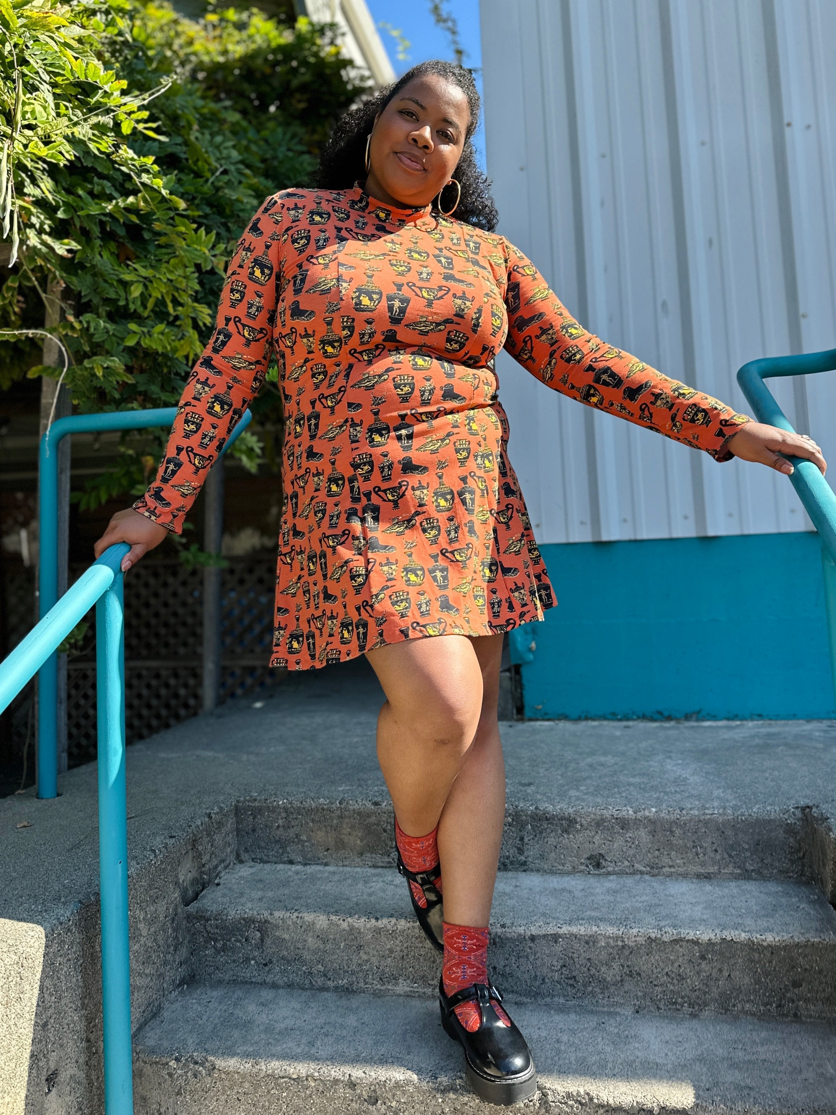 The Tonya is a classic skater-style dress made from our stretchy cotton jersey. It features full bodice seams, a pullover mock neck and long sleeves....