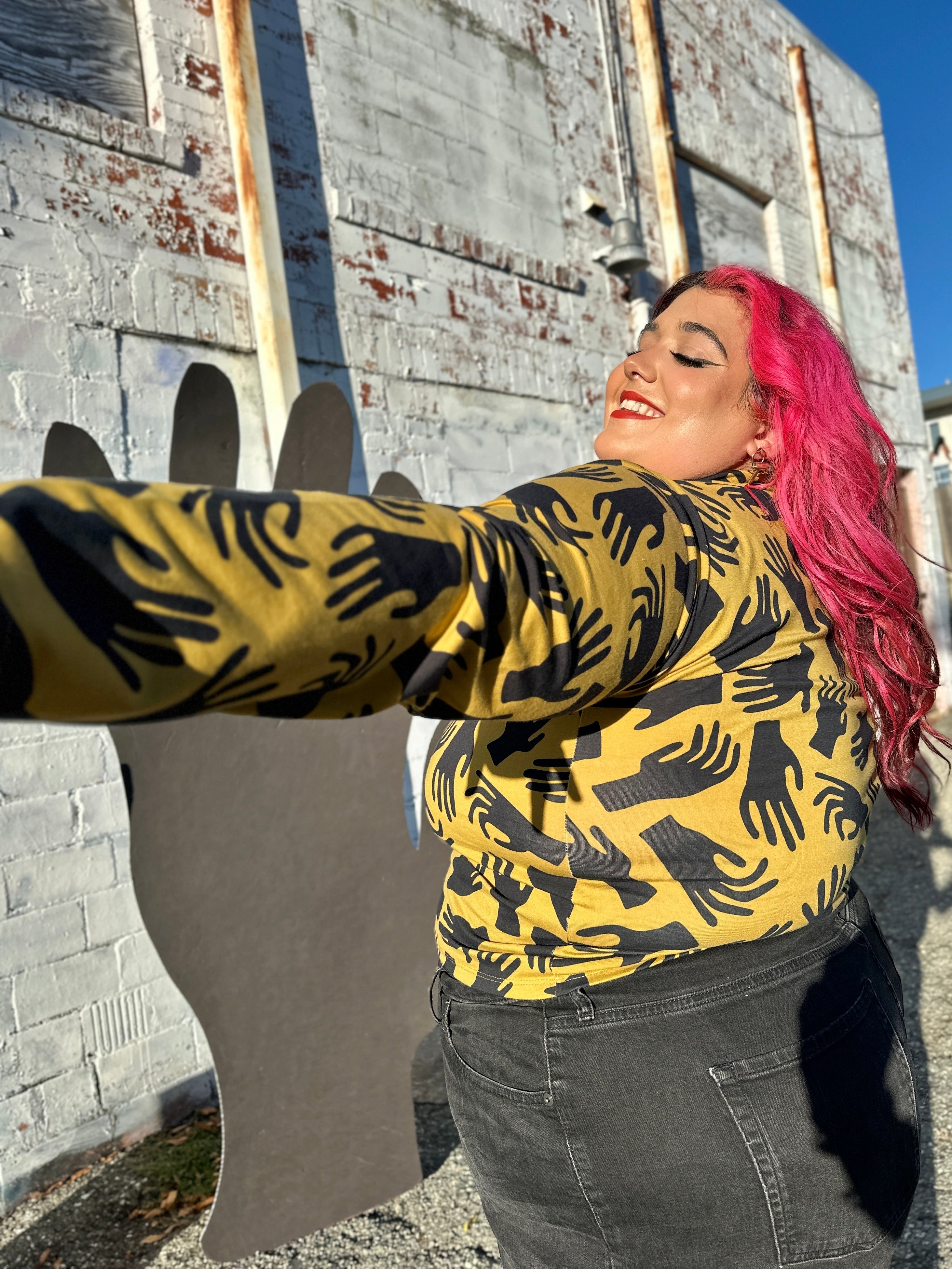 We are a woman owned, women run business. We make limited edition textiles with artists we love in cuts to make you look and feel good. All our garments are produced in California. We try to source all our materials in the USA and work with incredibly nice people.