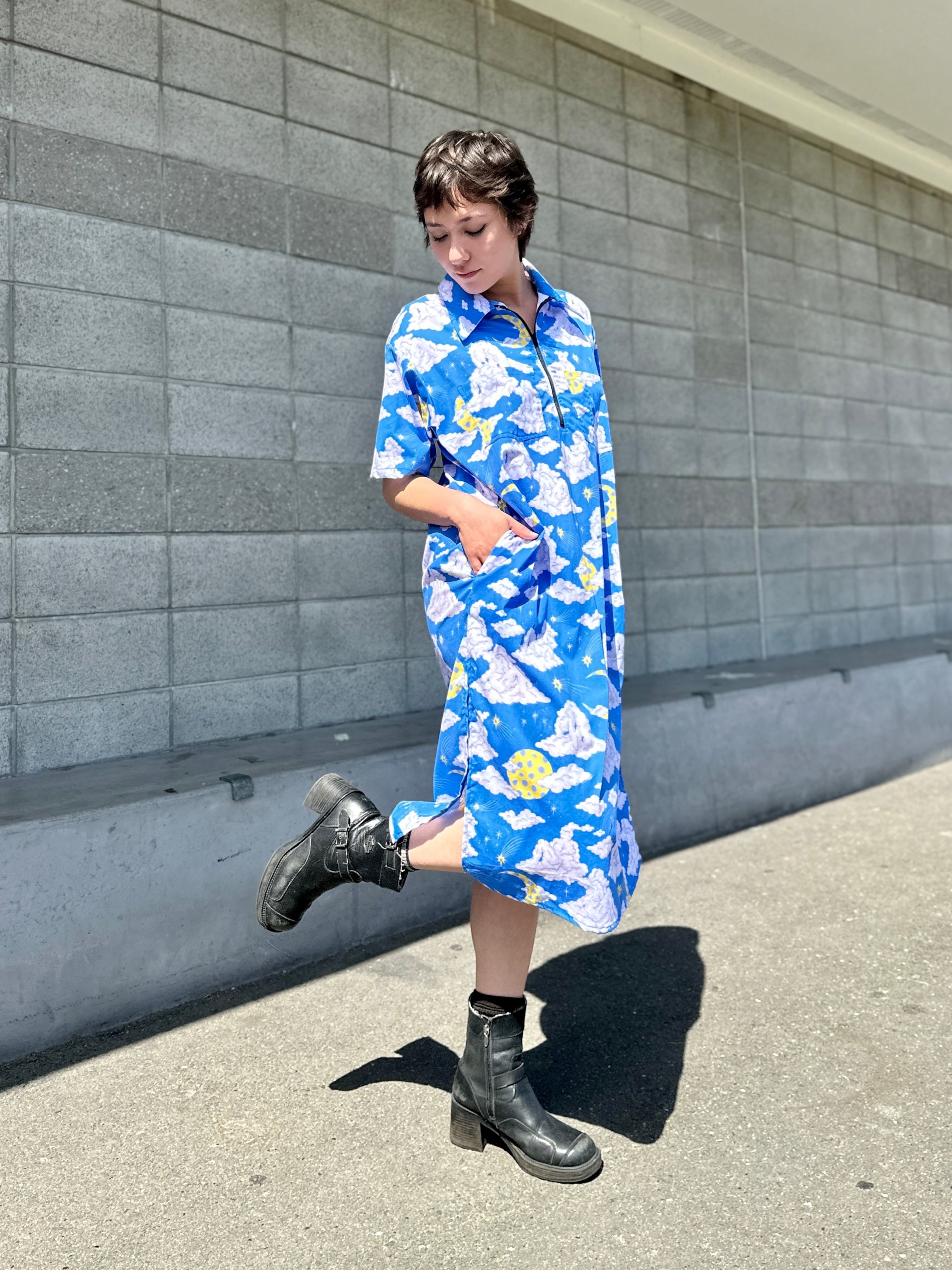 We are a woman owned, women run business. We make limited edition textiles with artists we love in cuts to make you look and feel good. All our garments are produced in California. We try to source all our materials in the USA and work with incredibly nice people.