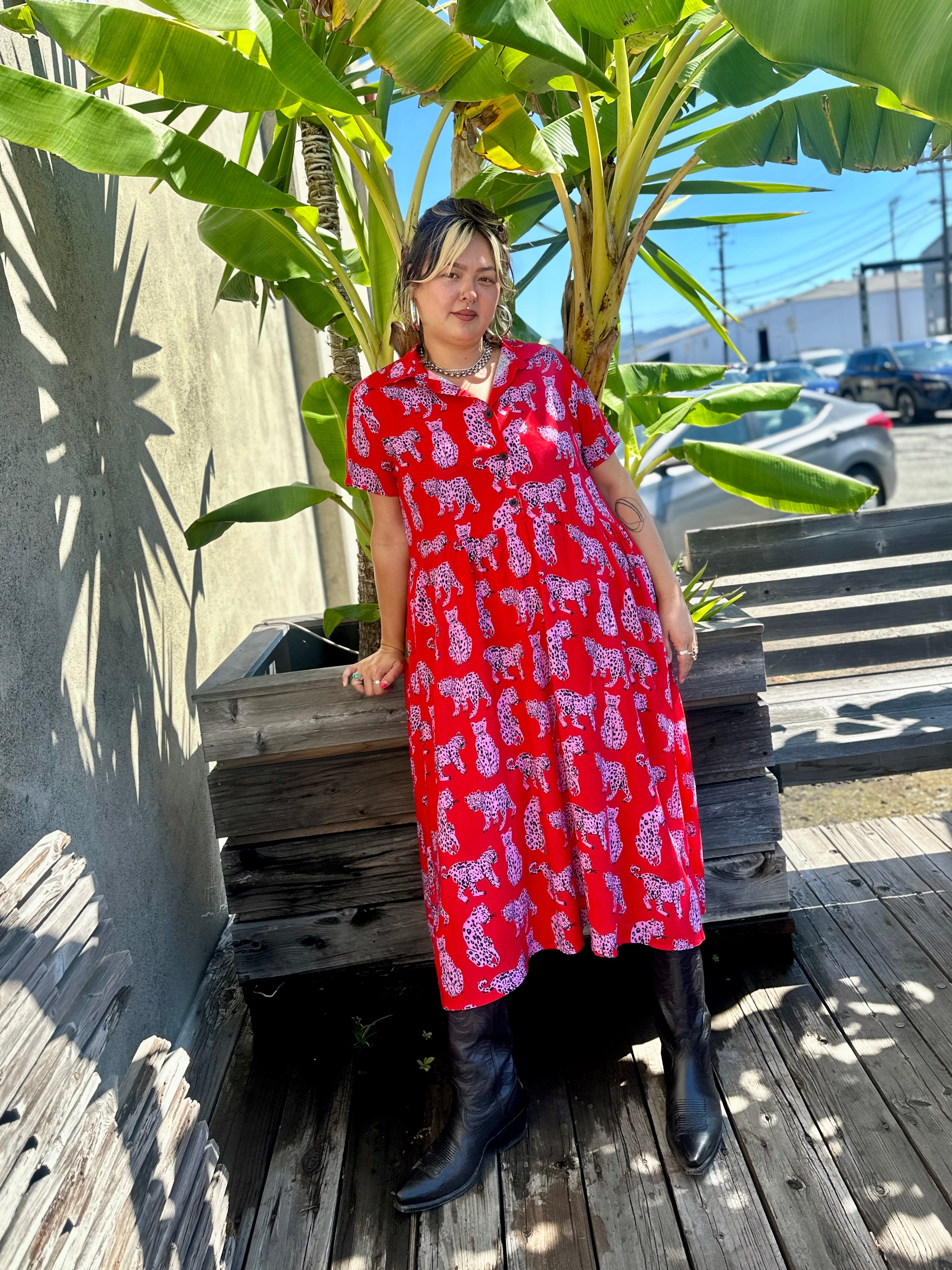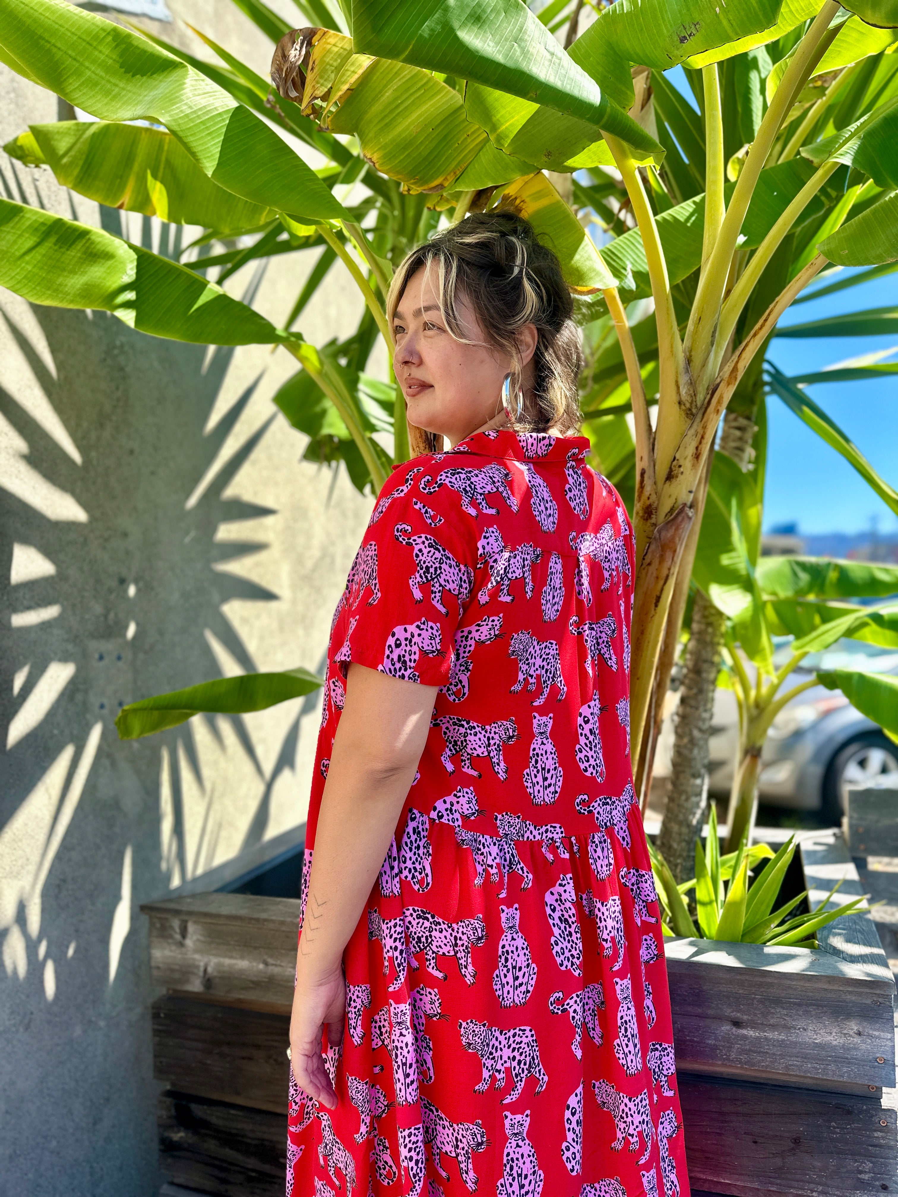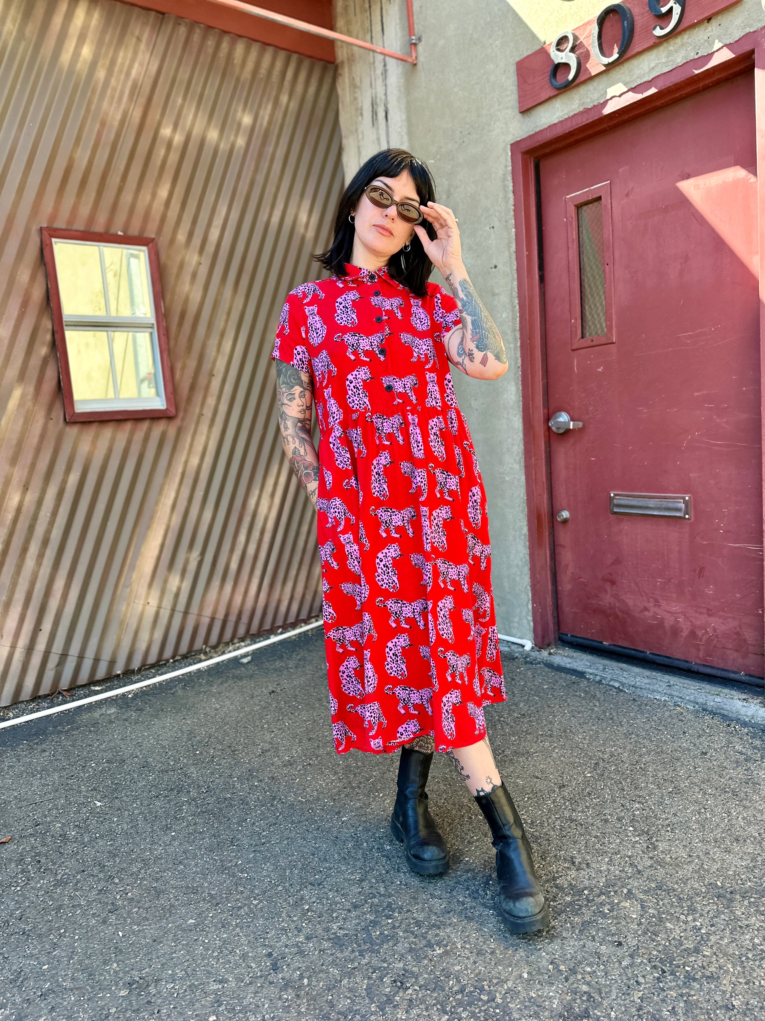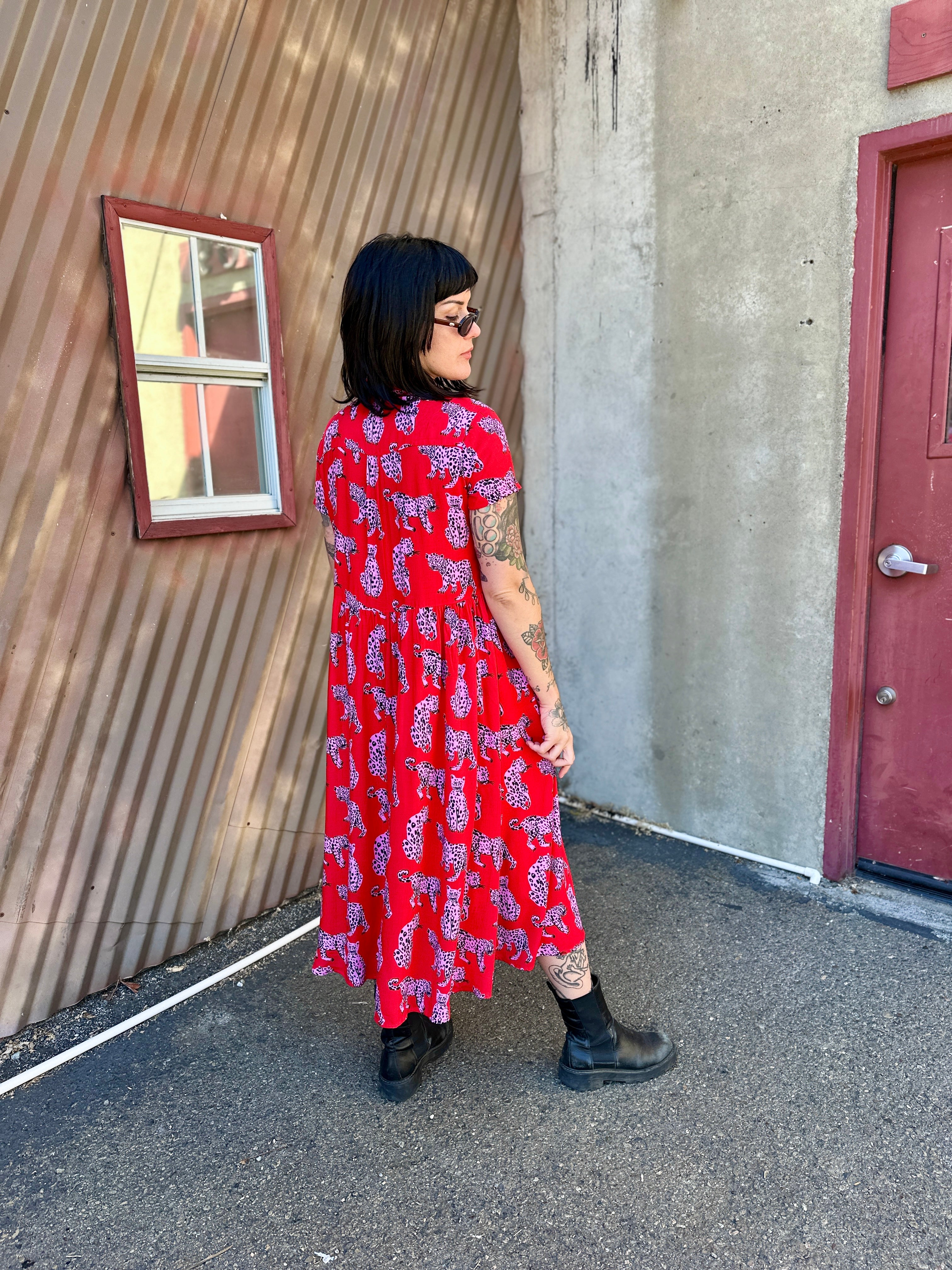 Woah baby! Your new favorite dress is here, it combines two Nooworks staples; the Naomi dress and Joyce top. This midi-length dress is cut from our super soft rayon and features a classic pointed collar and short-sleeves, buttons up the top half of the dress, and a loose and flowy drop-waist skirt. Wear it out to the farmers market for an easy breezy moment or layer it under a track top with popped collar for a seasonal change.