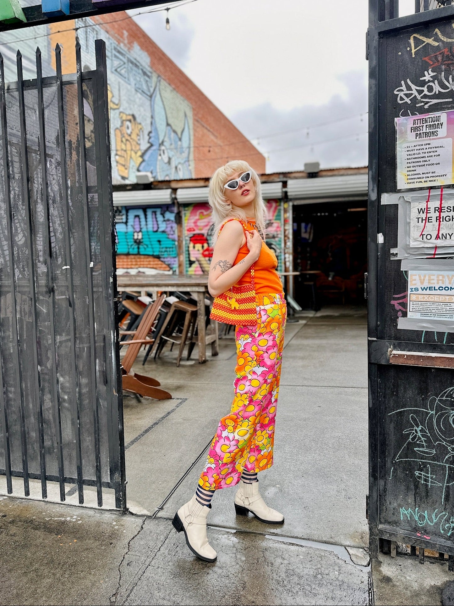 We are a woman owned, women run business. We make limited edition textiles with artists we love in cuts to make you look and feel good. All our garments are produced in California. We try to source all our materials in the USA and work with incredibly nice people.