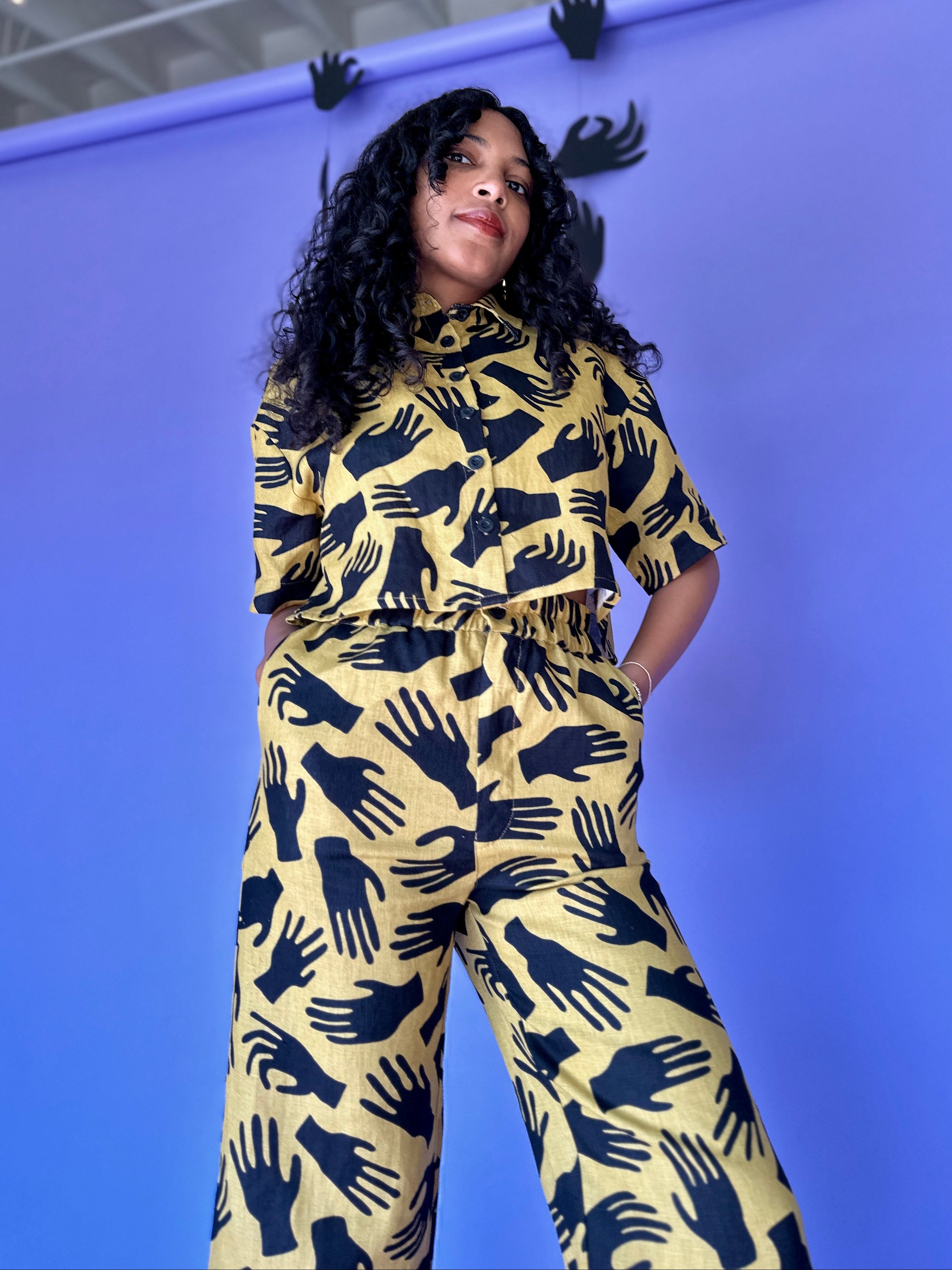 We are a woman owned, women run business. We make limited edition textiles with artists we love in cuts to make you look and feel good. All our garments are produced in California. We try to source all our materials in the USA and work with incredibly nice people.