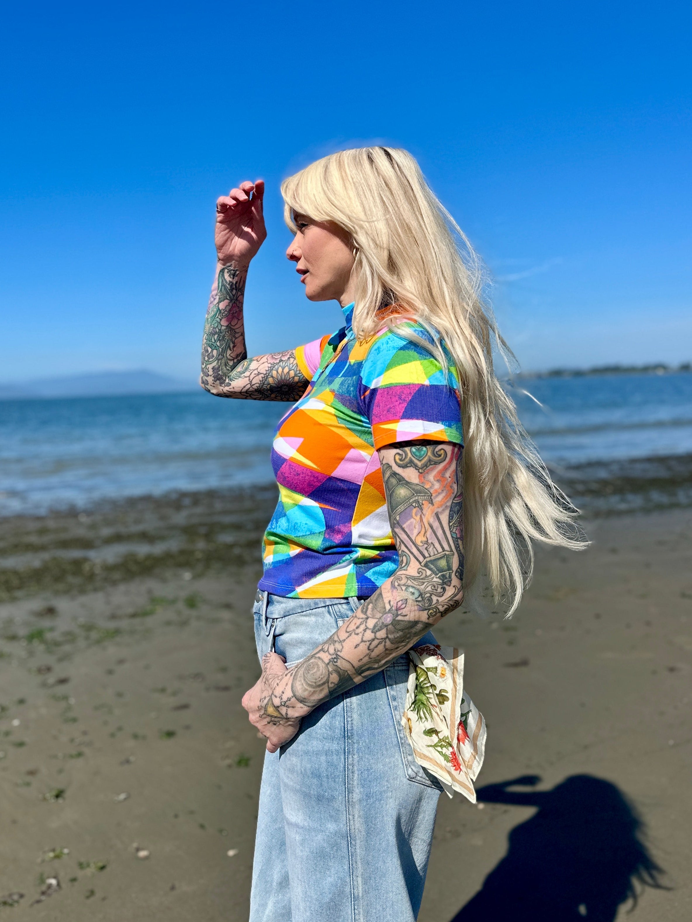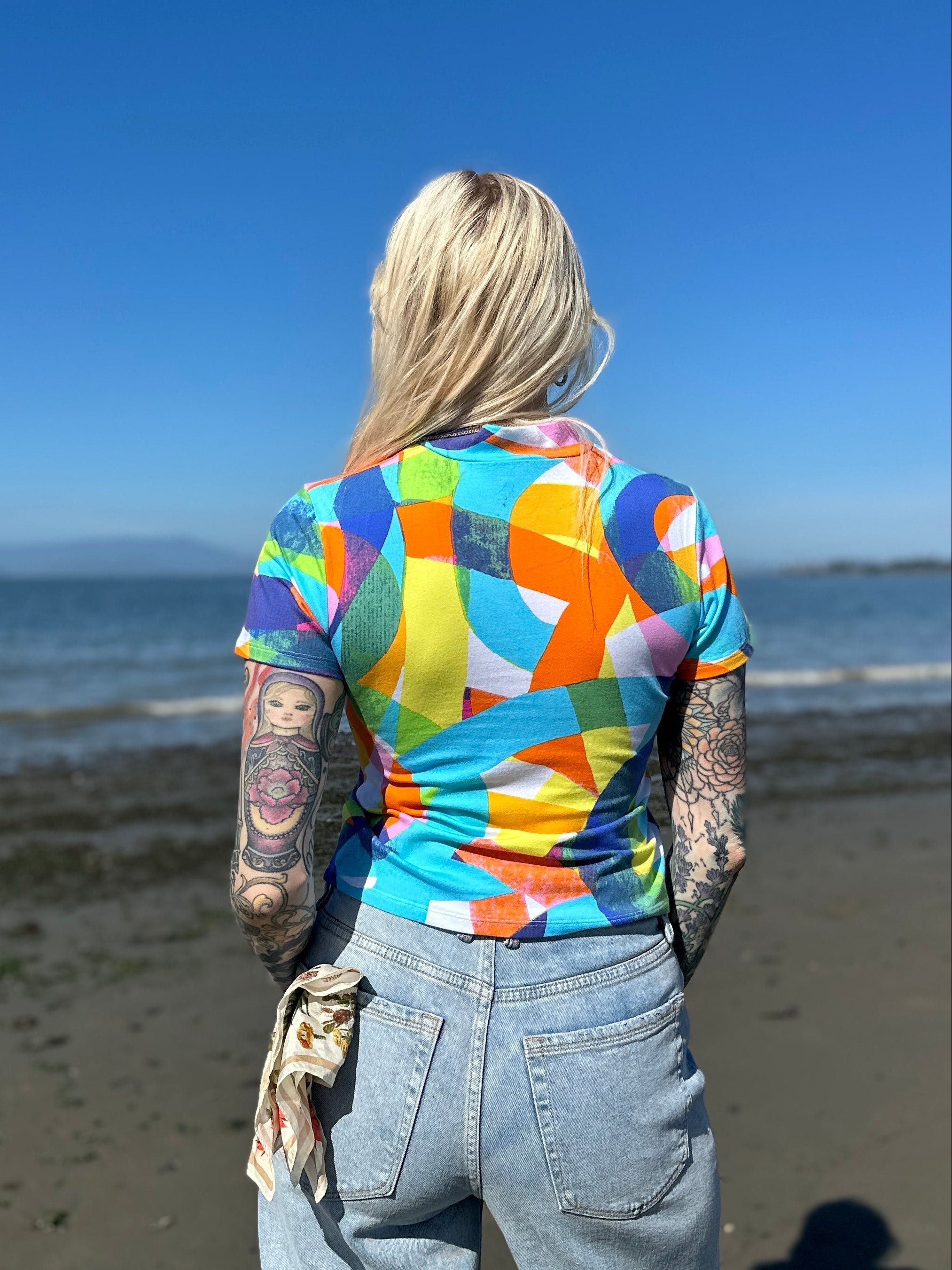 We are a woman owned, women run business. We make limited edition textiles with artists we love in cuts to make you look and feel good. All our garments are produced in California. We try to source all our materials in the USA and work with incredibly nice people.