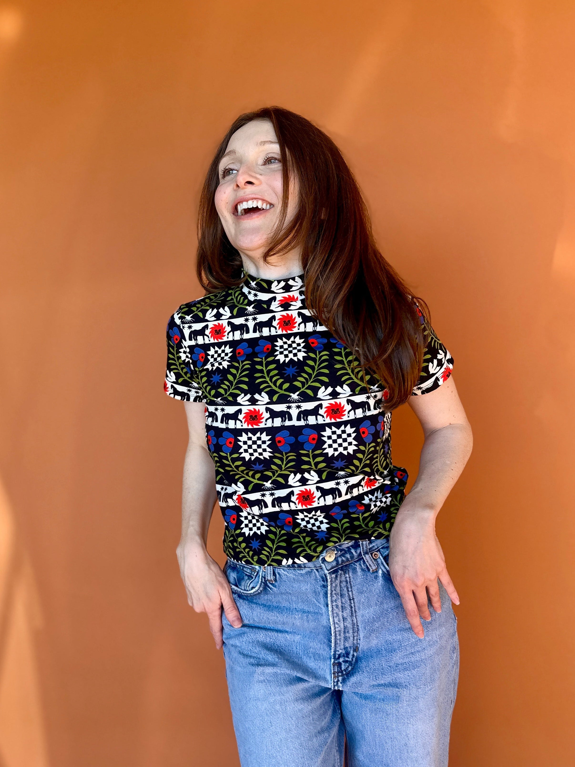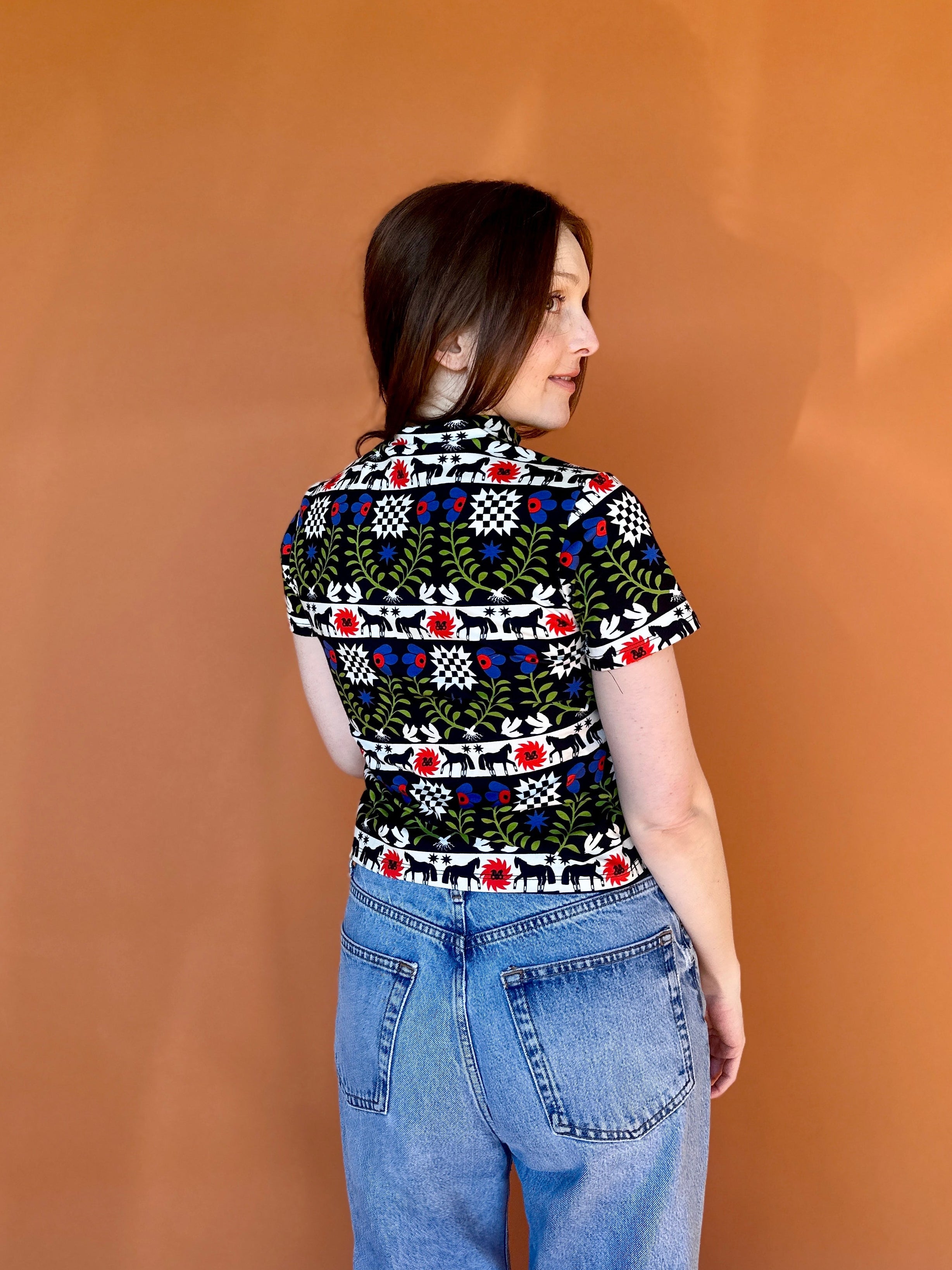 We are a woman owned, women run business. We make limited edition textiles with artists we love in cuts to make you look and feel good. All our garments are produced in California. We try to source all our materials in the USA and work with incredibly nice people.