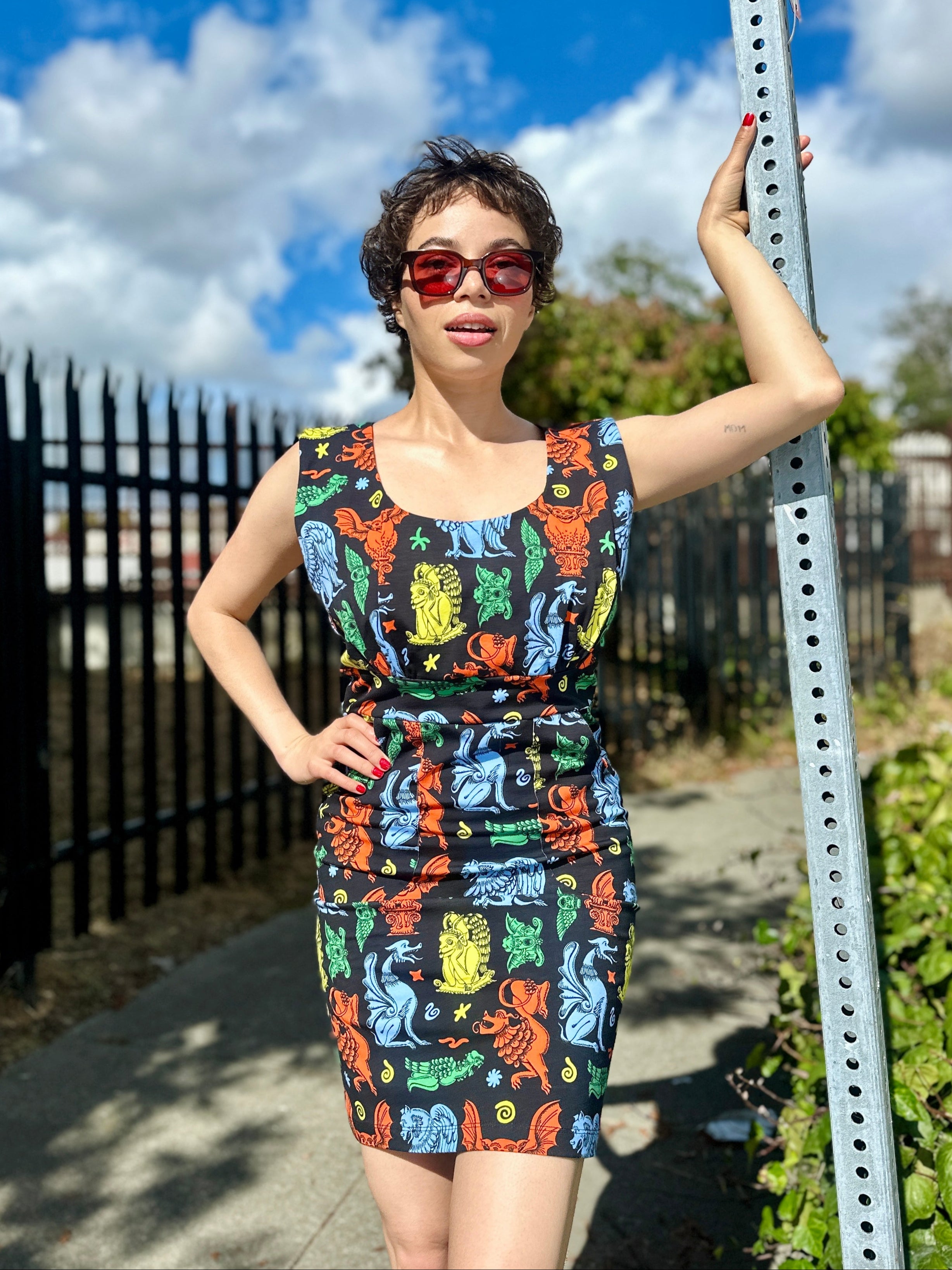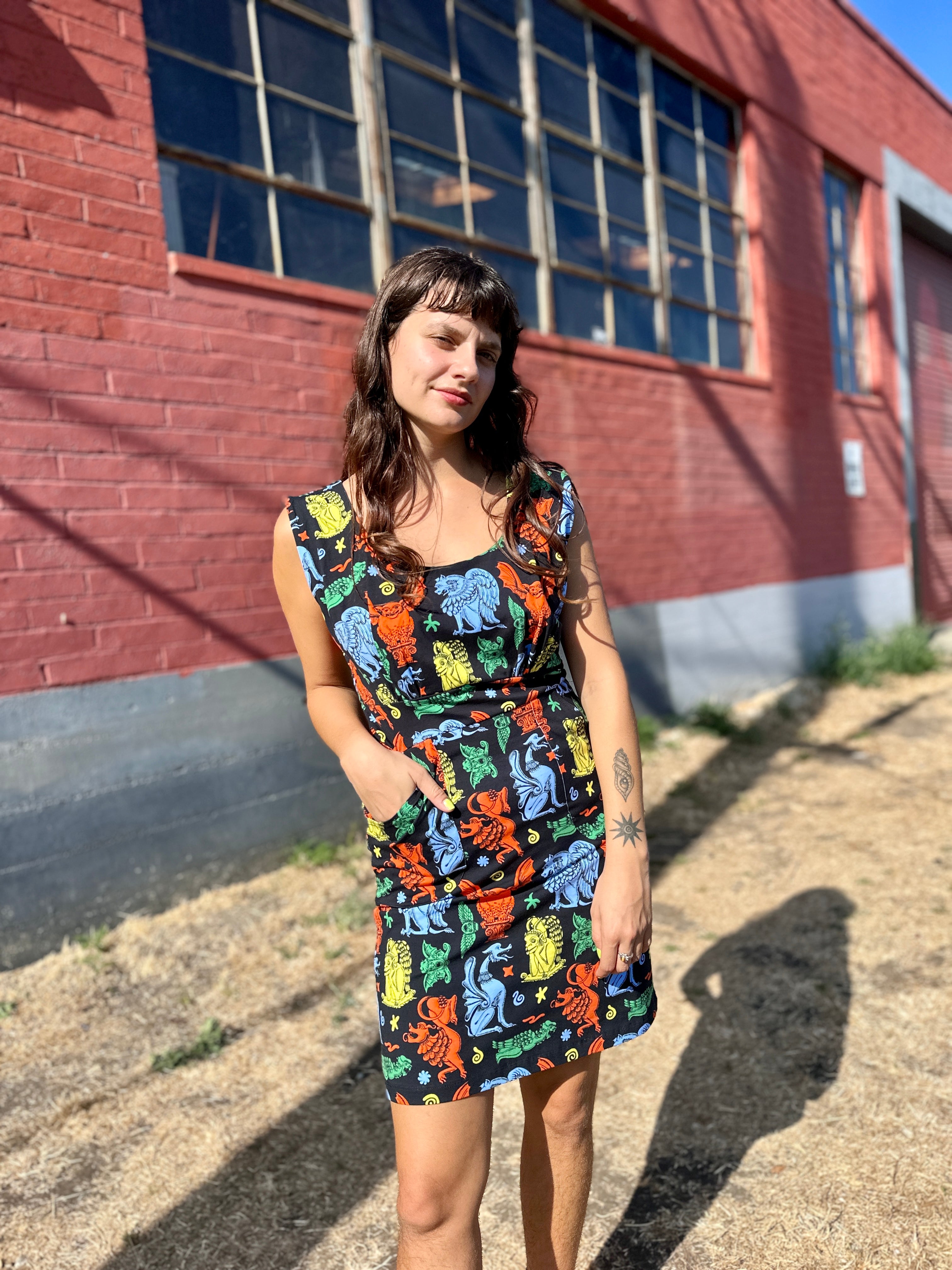 We are a woman owned, women run business. We make limited edition textiles with artists we love in cuts to make you look and feel good. All our garments are produced in California. We try to source all our materials in the USA and work with incredibly nice people.