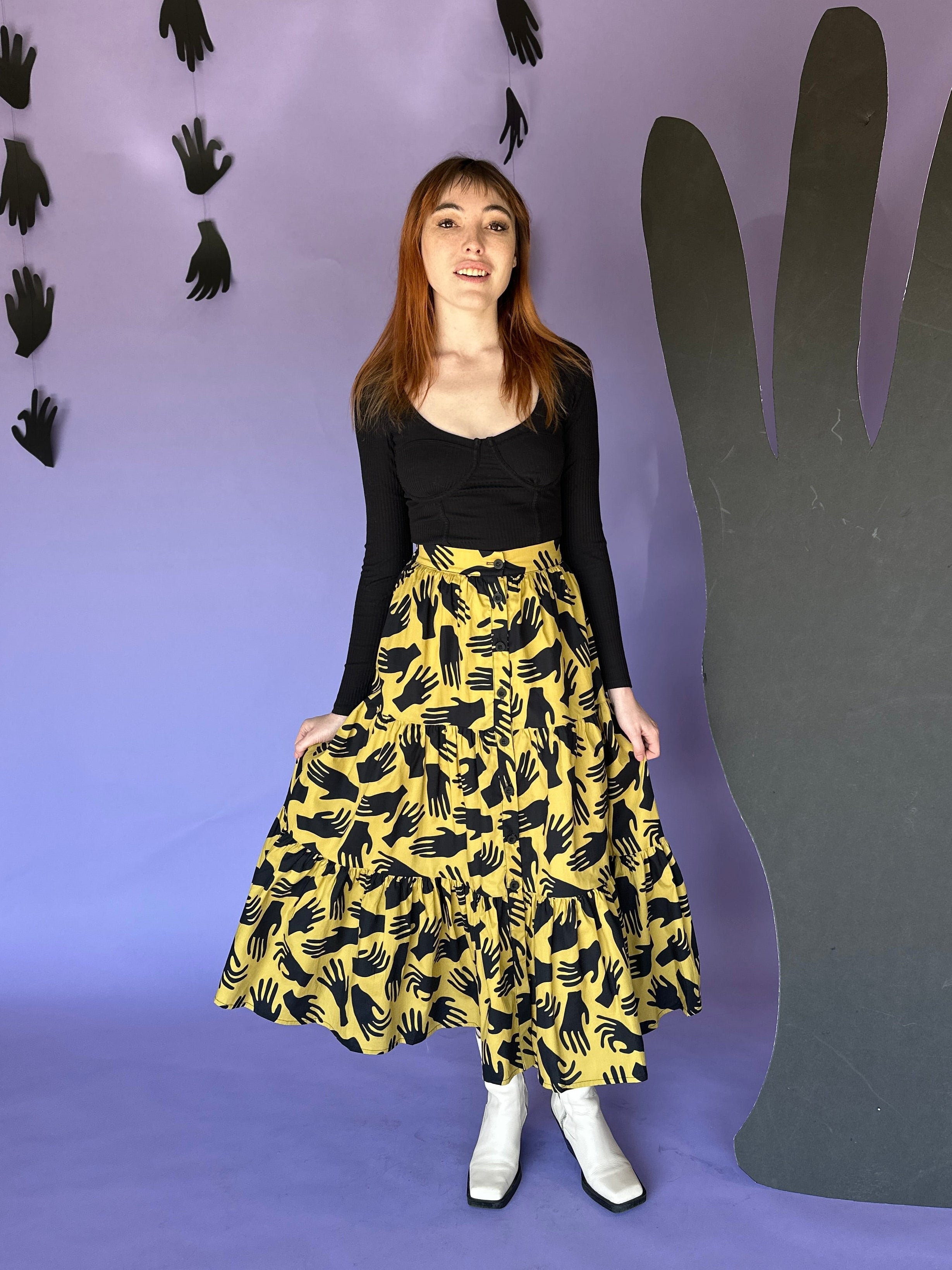 We are a woman owned, women run business. We make limited edition textiles with artists we love in cuts to make you look and feel good. All our garments are produced in California. We try to source all our materials in the USA and work with incredibly nice people.