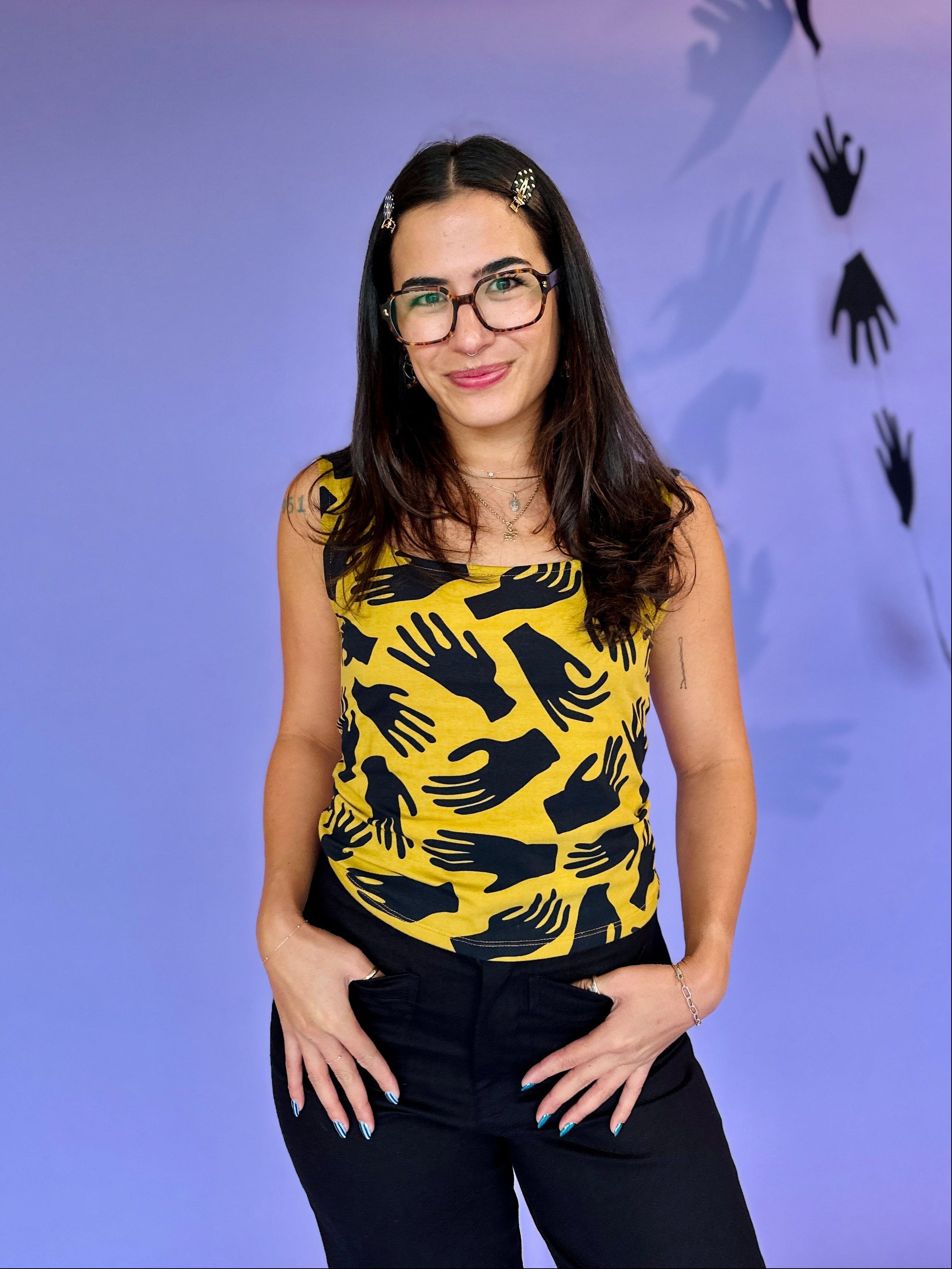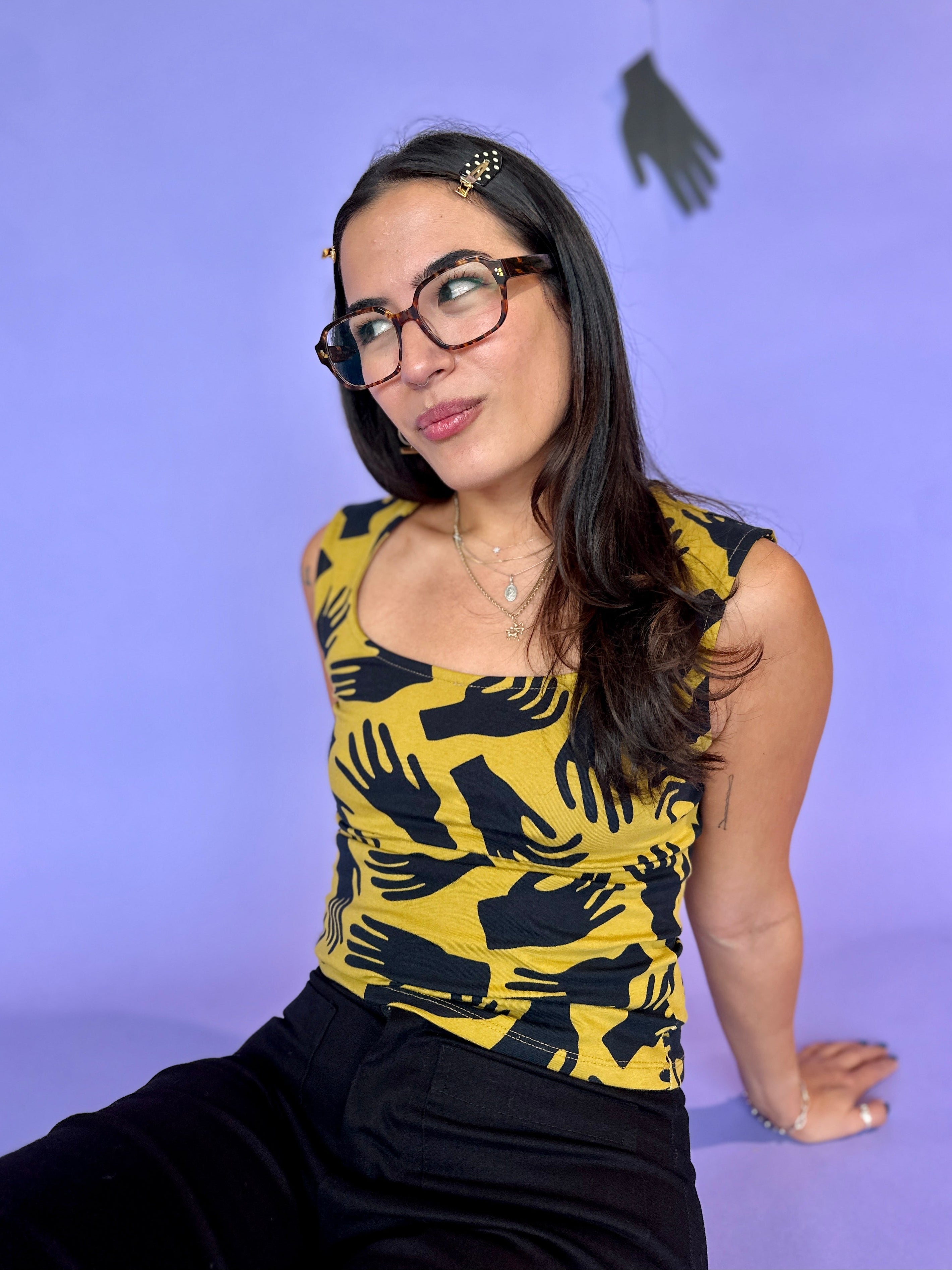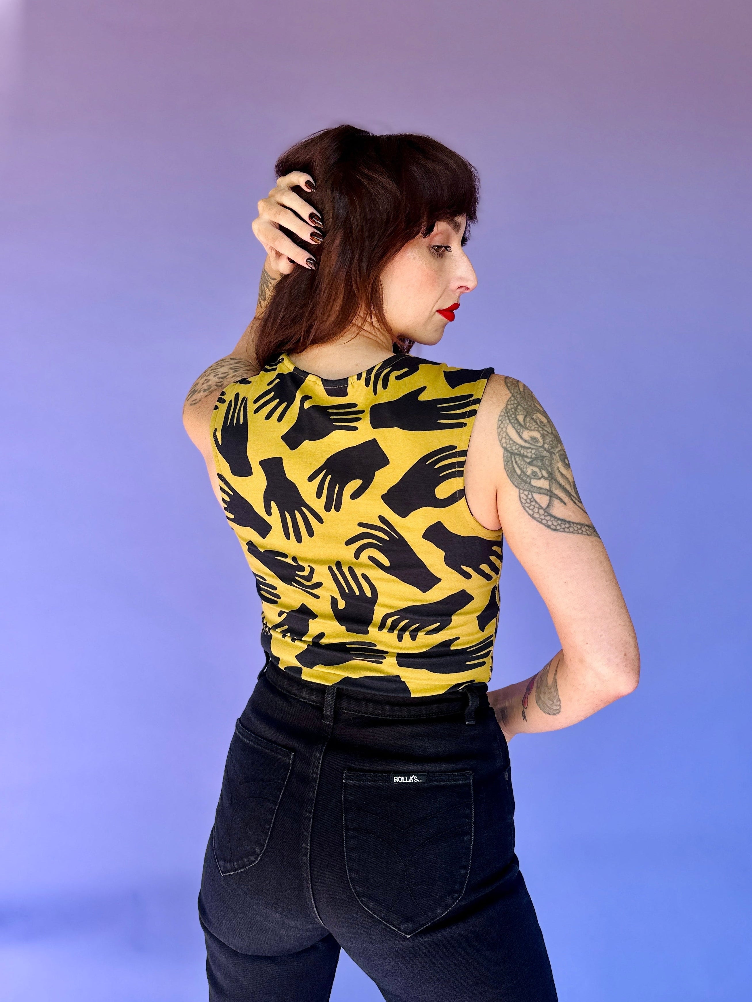 We are a woman owned, women run business. We make limited edition textiles with artists we love in cuts to make you look and feel good. All our garments are produced in California. We try to source all our materials in the USA and work with incredibly nice people.