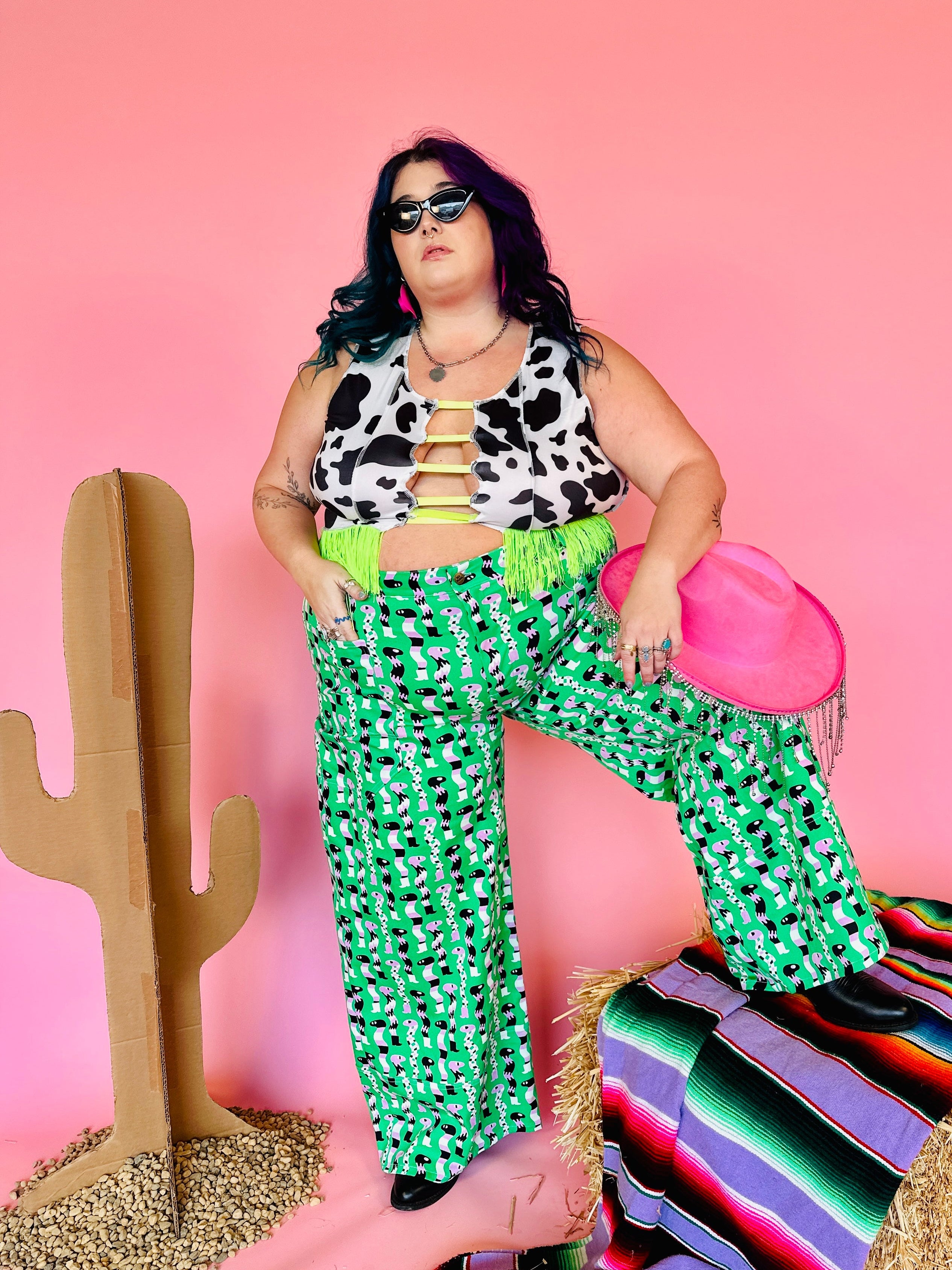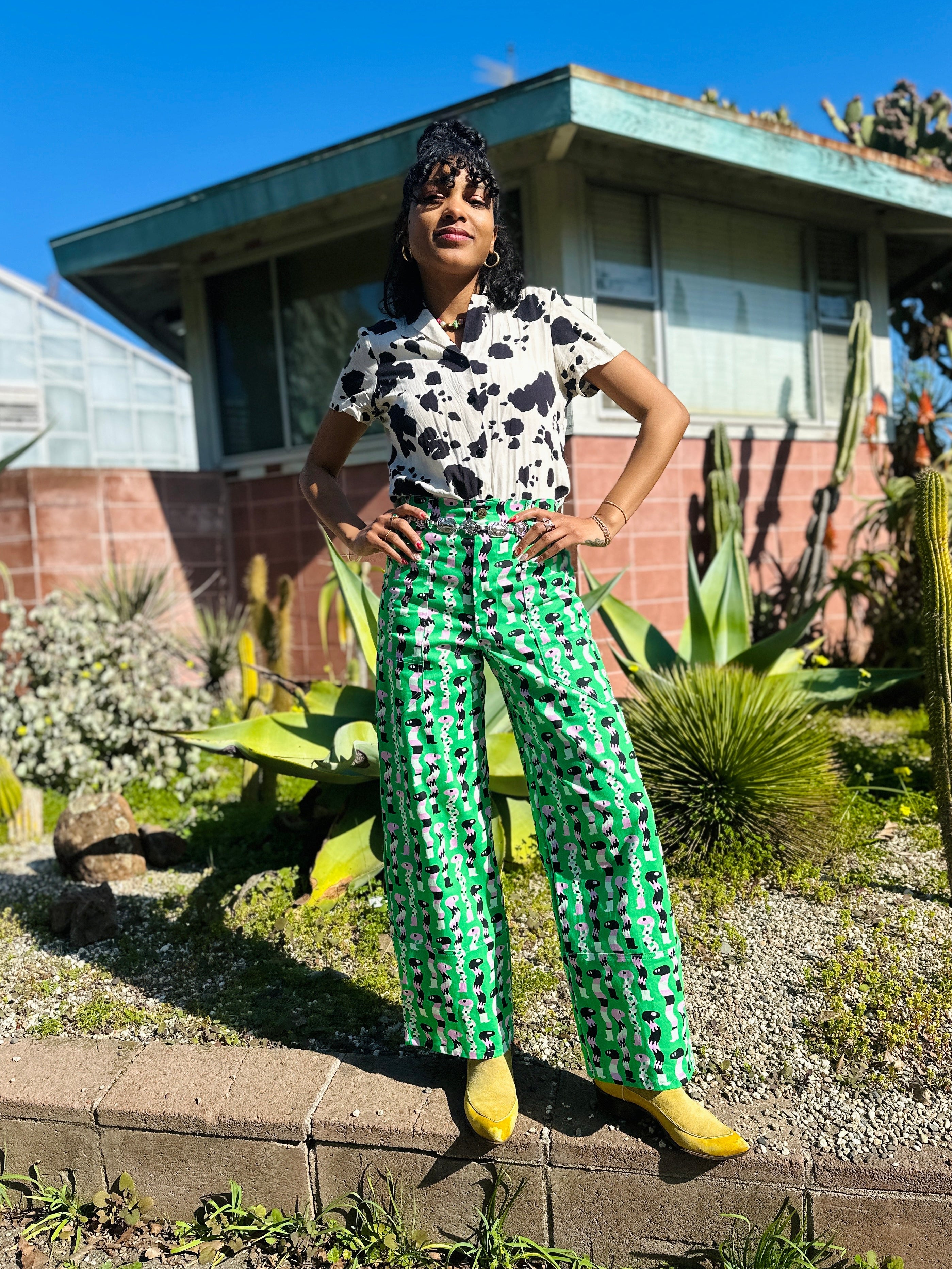 We are a woman owned, women run business. We make limited edition textiles with artists we love in cuts to make you look and feel good. All our garments are produced in California. We try to source all our materials in the USA and work with incredibly nice people.