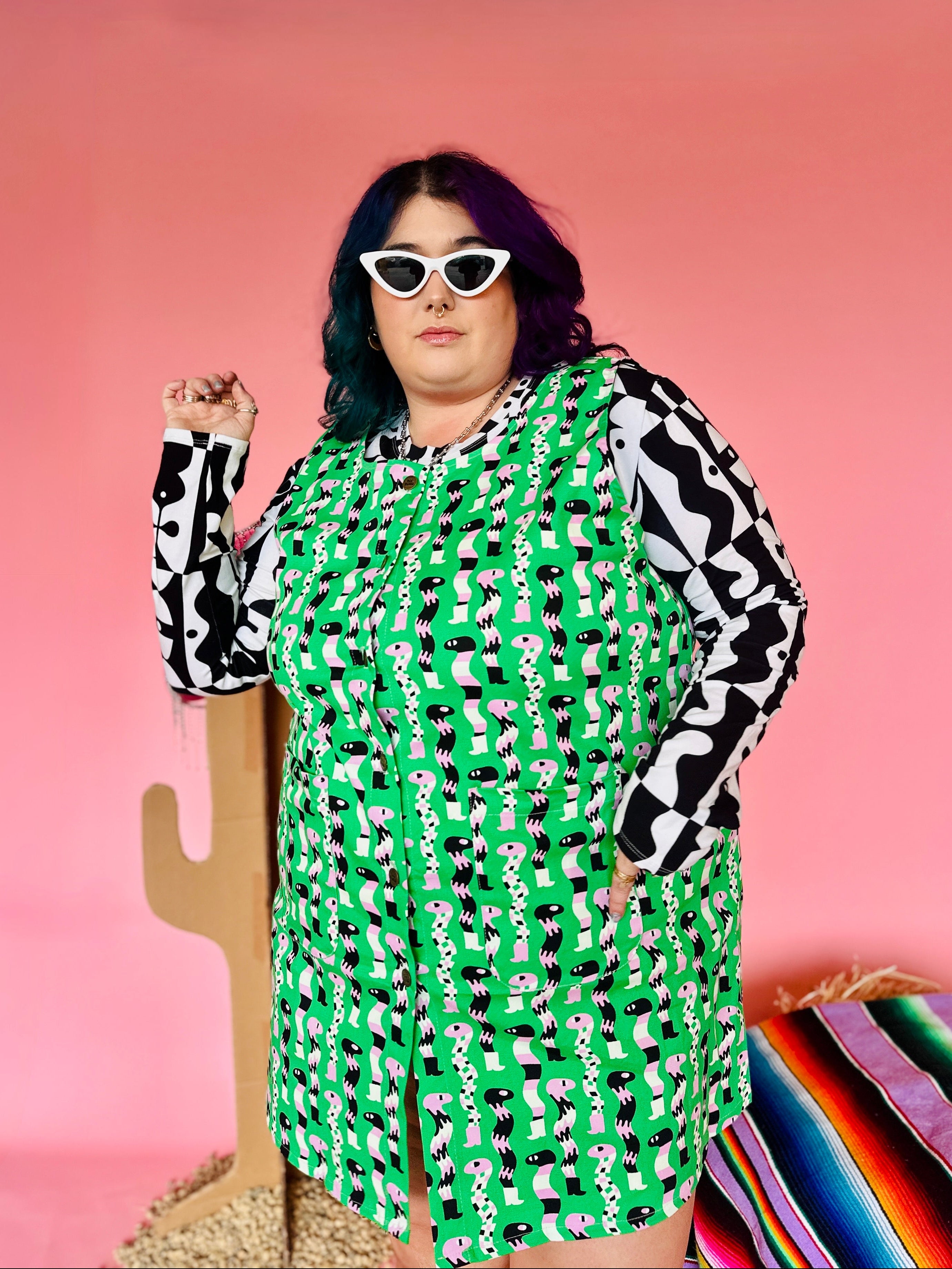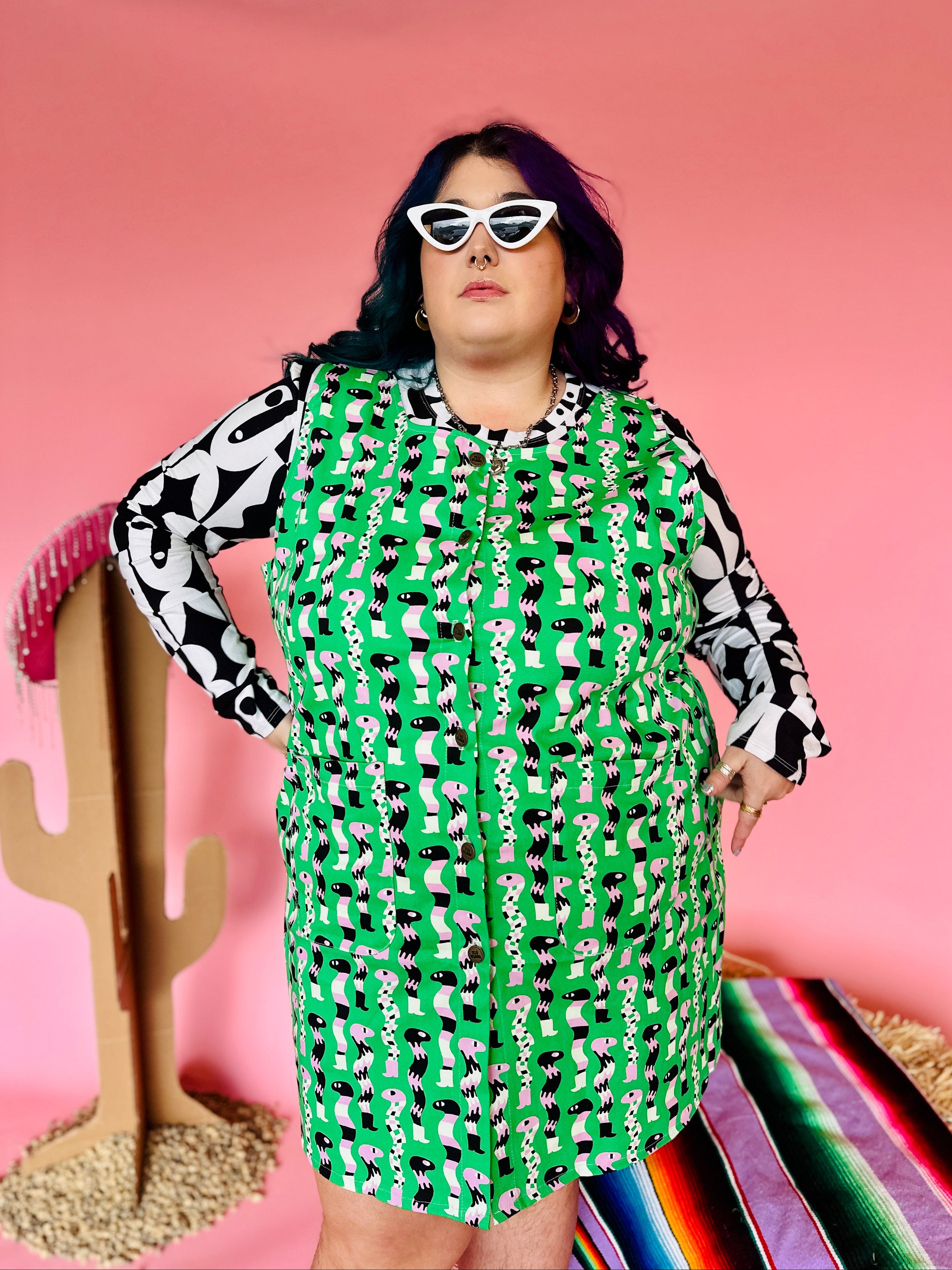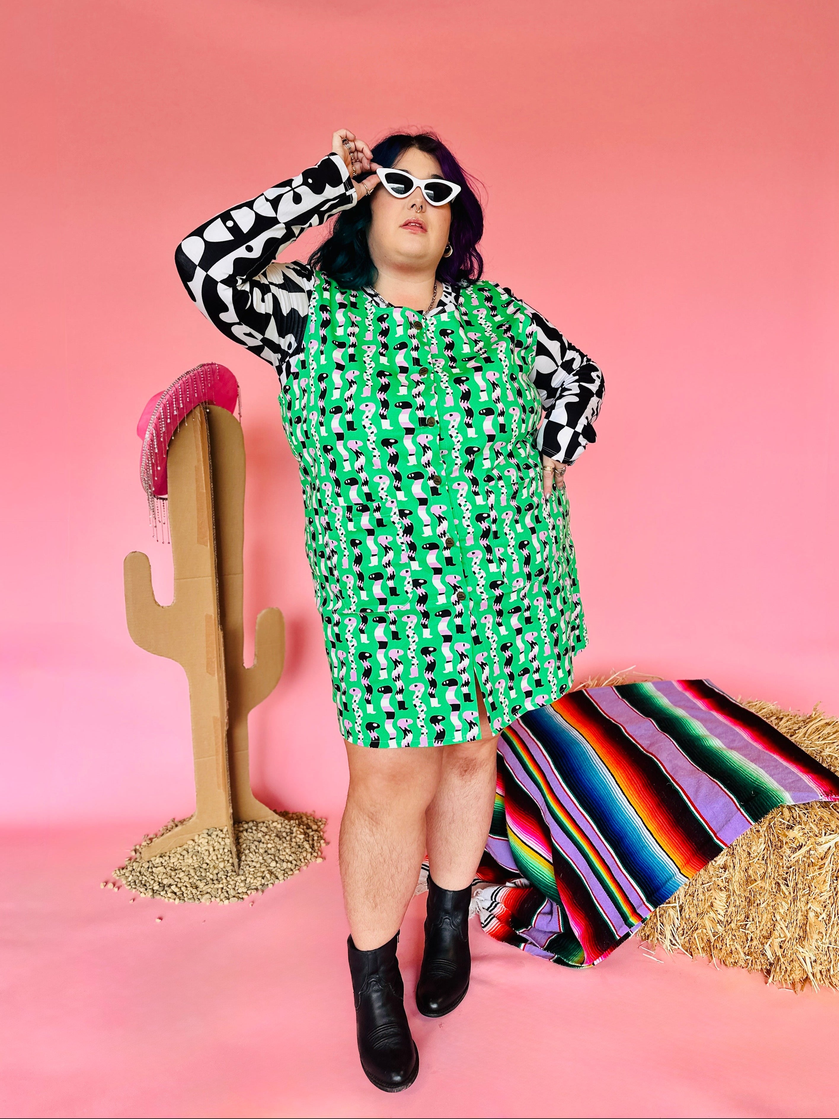 We are a woman owned, women run business. We make limited edition textiles with artists we love in cuts to make you look and feel good. All our garments are produced in California. We try to source all our materials in the USA and work with incredibly nice people.