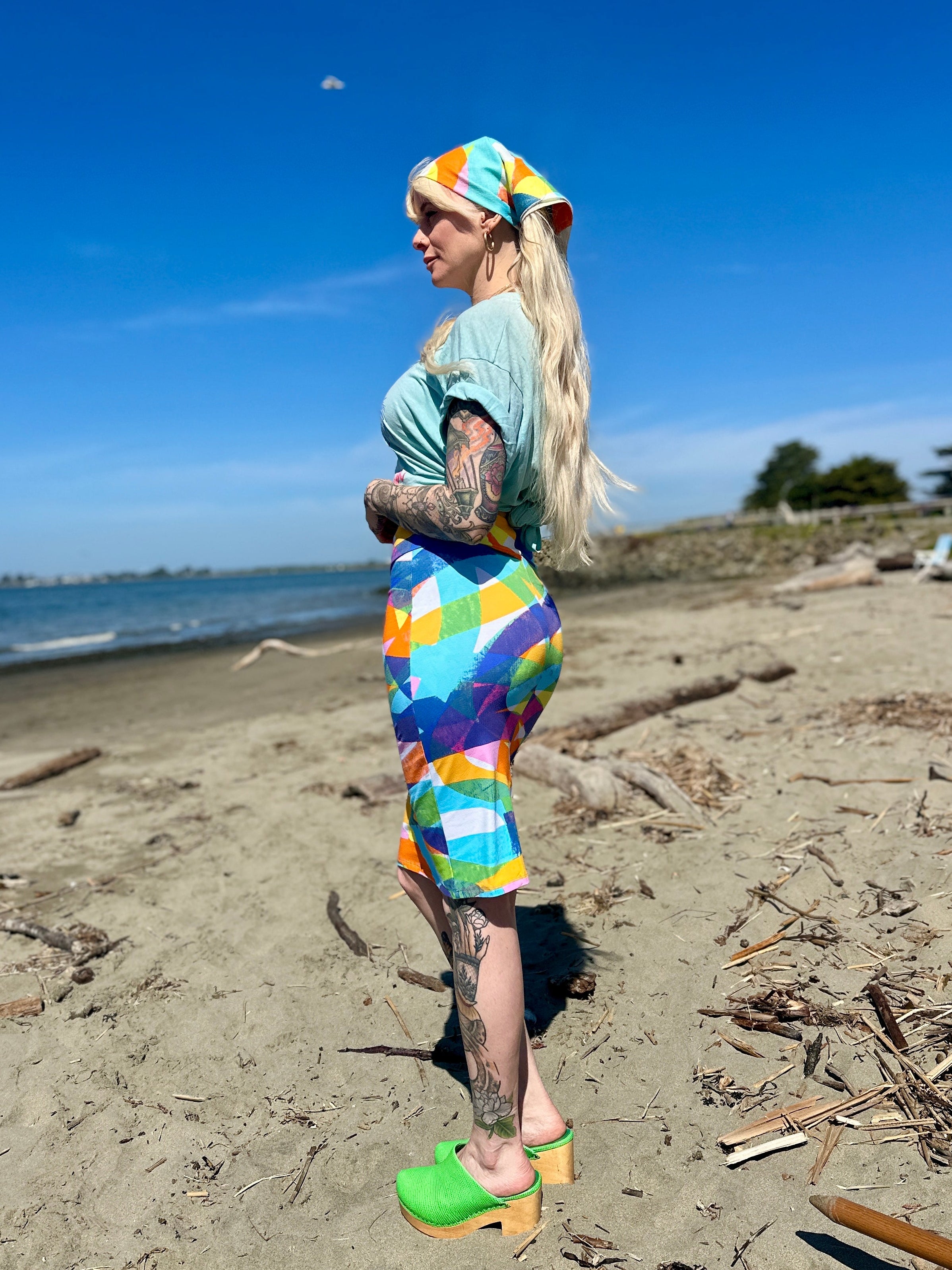 We are a woman owned, women run business. We make limited edition textiles with artists we love in cuts to make you look and feel good. All our garments are produced in California. We try to source all our materials in the USA and work with incredibly nice people.